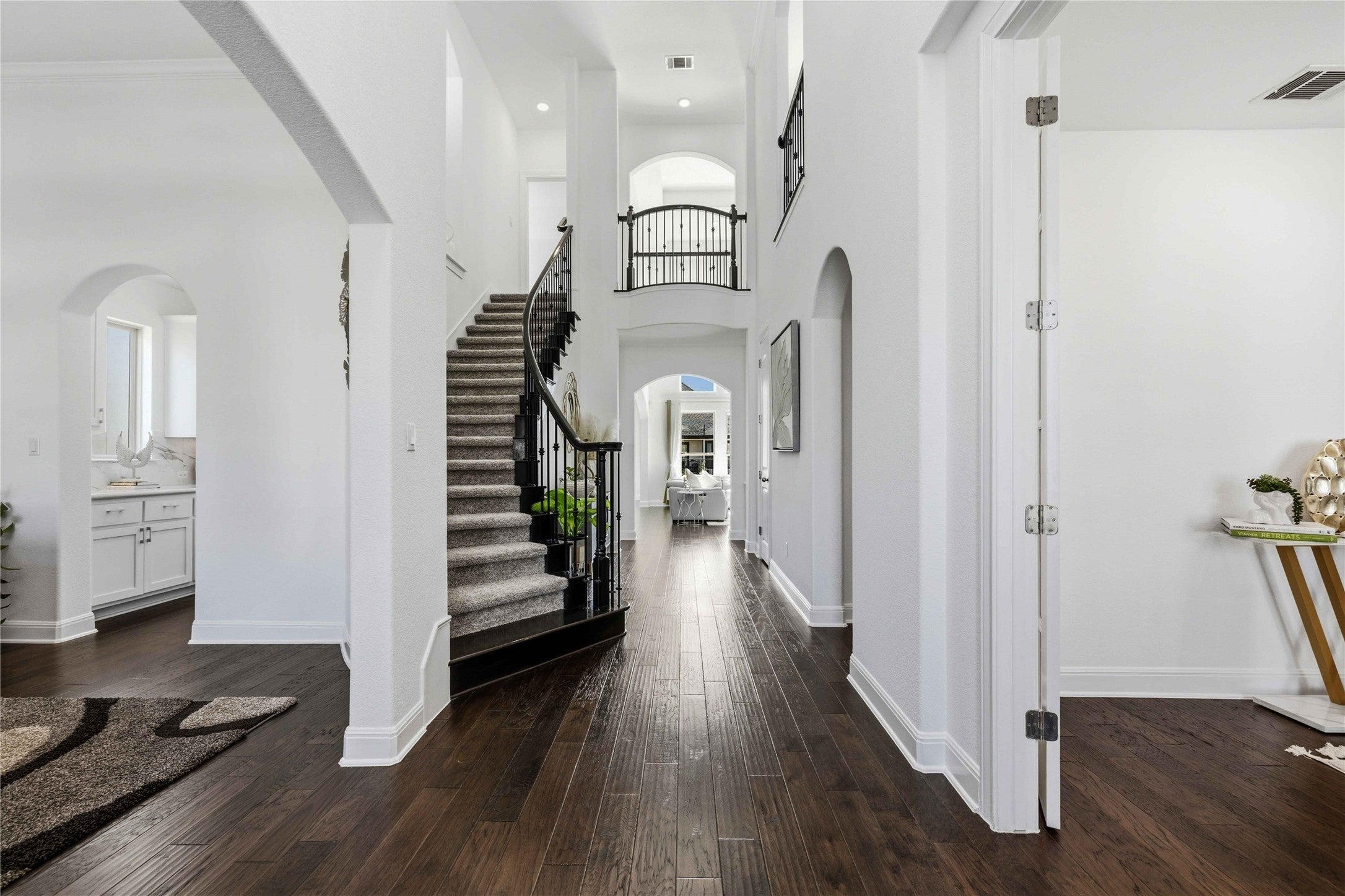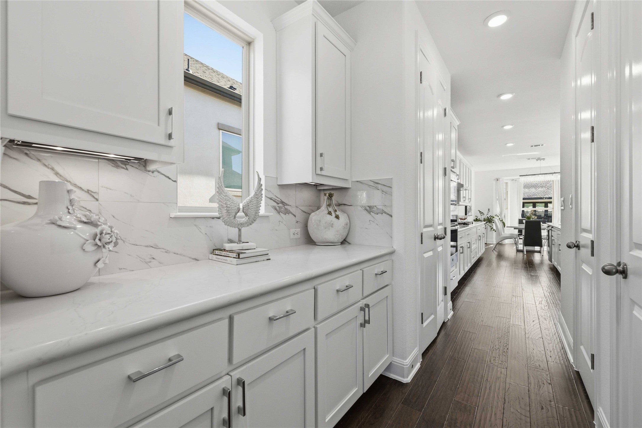 *OPEN HOUSE SAT & SUN 1-4PM* Experience the beauty of Hill Country living in this stunning Northeast-facing Taylor Morrison Bevington floor plan home, located in Travisso, with nearly 4,000 square feet of luxury offering 5 spacious bedrooms & 4.5 bathrooms. A striking curb appeal welcomes you to an elegant foyer with high ceilings complemented by a private office, a formal dining room, and a convenient guest powder bath. Elegant crystal chandeliers illuminates the home adding a refined touch across the interior. The living room features an open-concept floor plan featuring rich dark wood floors throughout the main level, high ceilings, an architectural tray ceiling, fireplace, and expansive windows, creating a bright & welcoming ambiance. The chef’s kitchen is highlighted with porcelain tile backsplash, freshly painted cabinets, and an oversized center island. Exceptional storage with generous cabinetry, ample counter space, a chef’s pantry, walk-in pantry, & butler’s pantry. Additional conveniences include a water softener and built-in soap dispenser. The main level primary suite features a custom accent wall and a private bath with dual vanities, a soaking tub, a walk-in shower & a large walk-in closet. The main level also includes a private in-law suite with its own bath. Upstairs features 3 additional bedrooms, two connected by a Jack & Jill bath and a third with its own bath. This level also highlights a spacious game room and a fully equipped media room ideal for movie nights. Outdoor living includes an extended covered patio and a massive fenced backyard with room for a pool, enhanced by lush landscaping along the fence line. Exterior lighting lights the home beautifully in the evening. Residents enjoy resort-style amenities including clubhouses, pools, fitness center, sports courts, playgrounds, parks & beautiful Hill Country views, with a playground park conveniently located right at the corner for easy access.