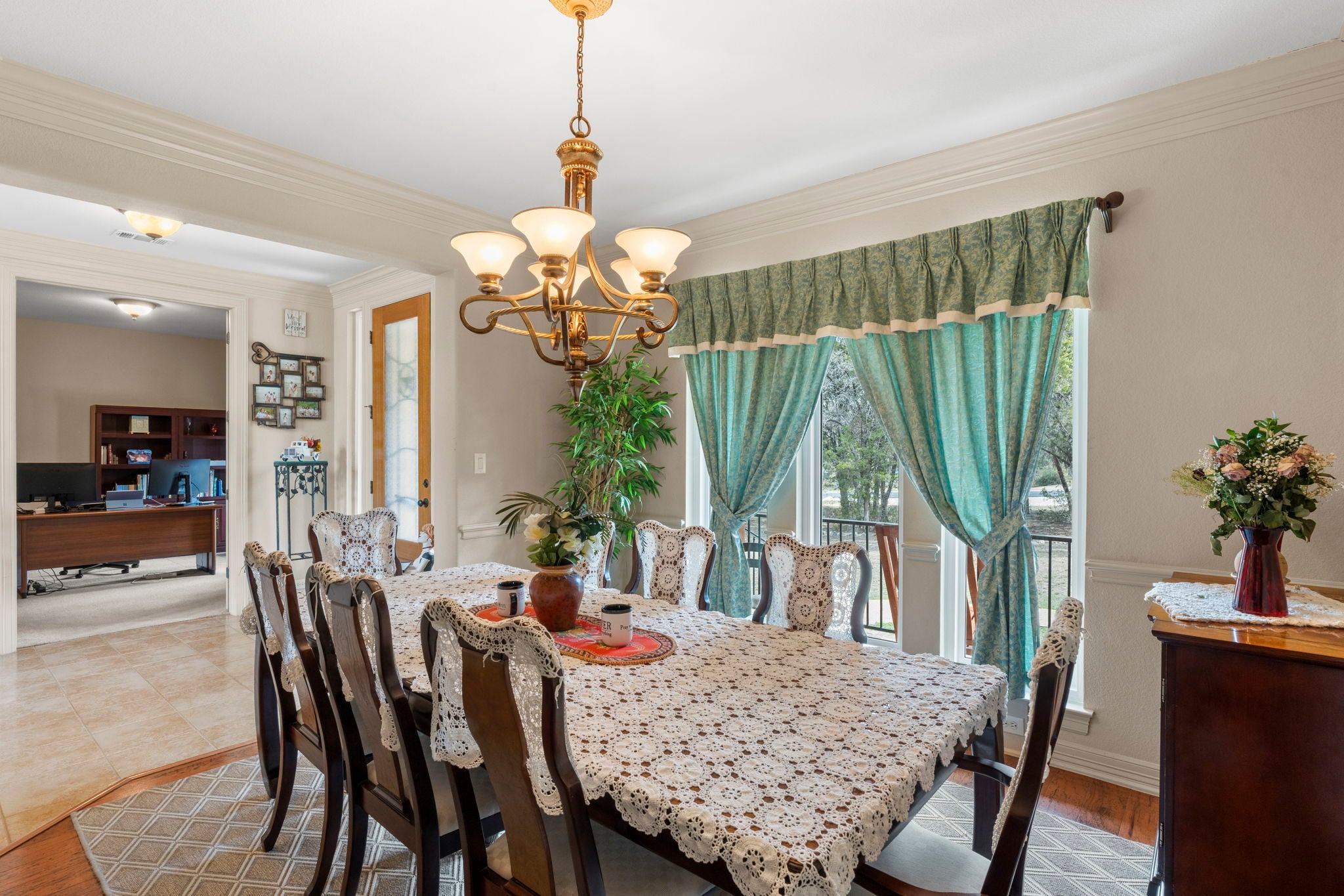 Beautiful custom home on 2 acres featuring nearly 3700 square feet, 4 bedrooms three and half baths, a dedicated office, formal dining room, bonus room, and media room, offering plenty of space for living, working, and entertaining. The open-concept layout showcases soaring ceilings and dramatic floor-to-ceiling windows that fill the living area with natural light and peaceful views of the surrounding trees. The spacious kitchen includes rich wood cabinetry, granite countertops, stainless steel appliances, a large island, and breakfast bar, flowing seamlessly into the living and dining areas. Upstairs, the open bonus area overlooks the main living space, enhancing the home’s bright and airy feel. Spacious laundry room on main. Windows replaced in 2023! With flexible spaces for work, relaxation, and entertainment, this home combines comfort, functionality, and scenic privacy in a beautiful setting.