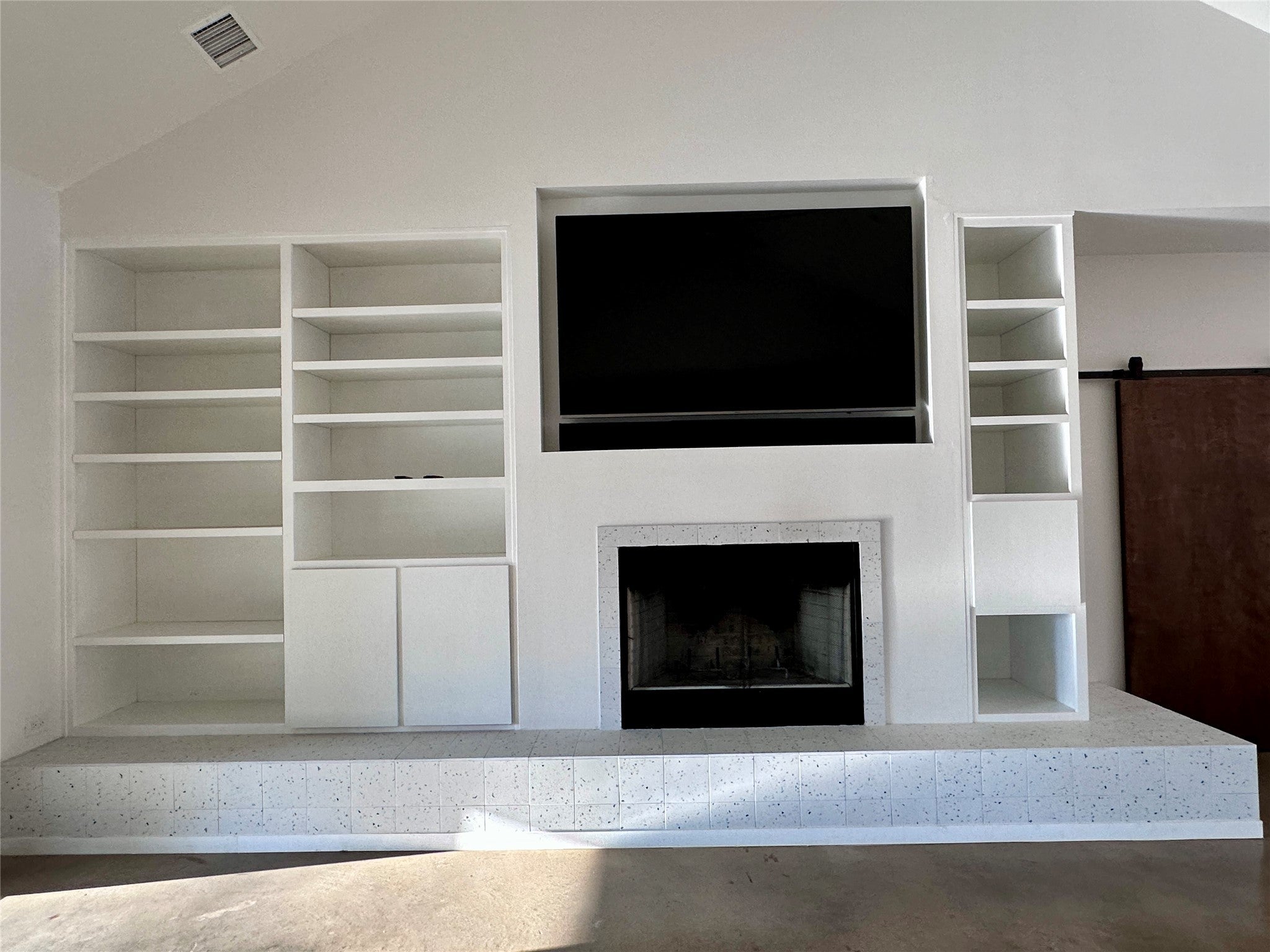 - Great Room, Living Room, Raised Hearth, Wood Burning
