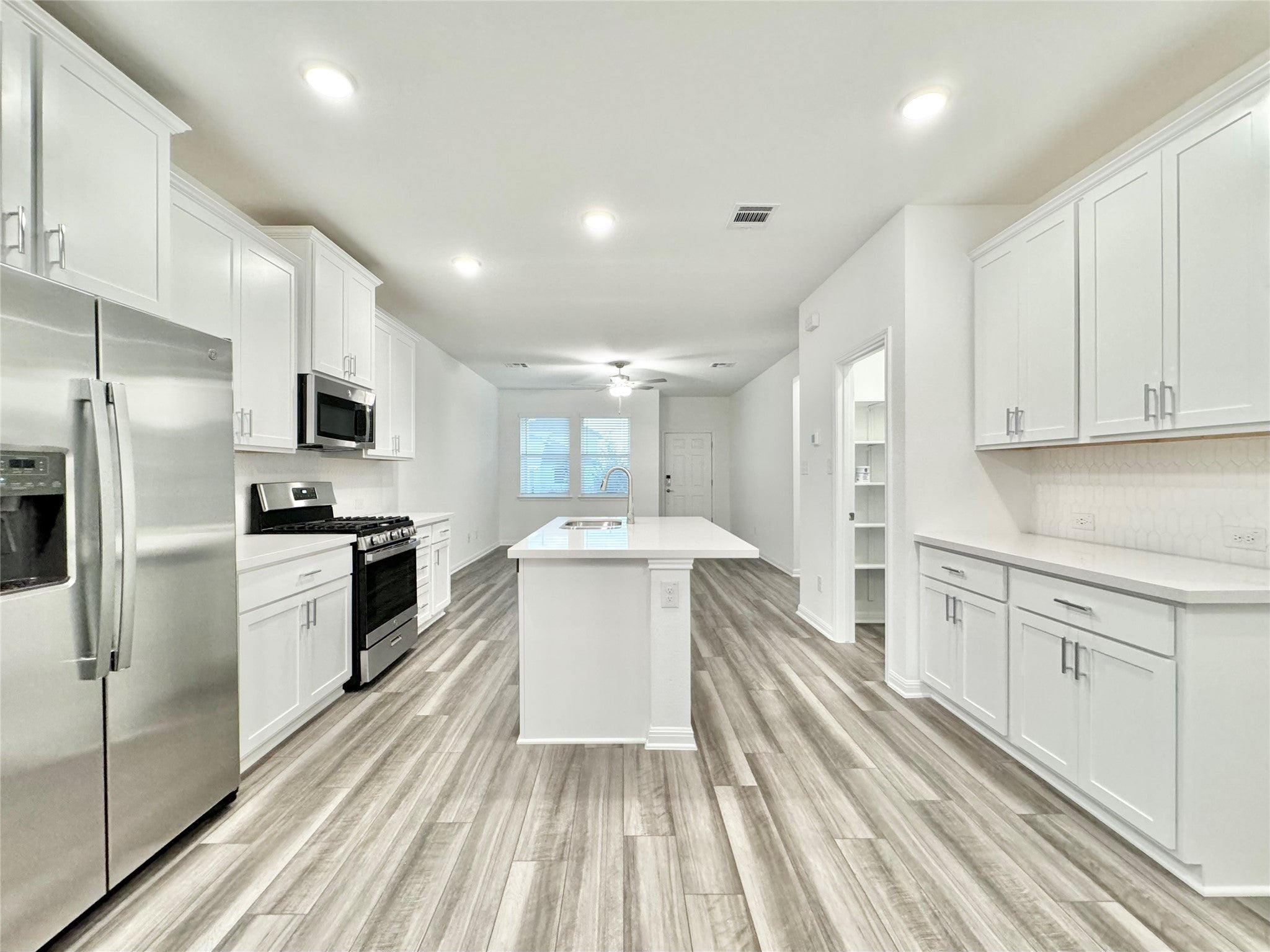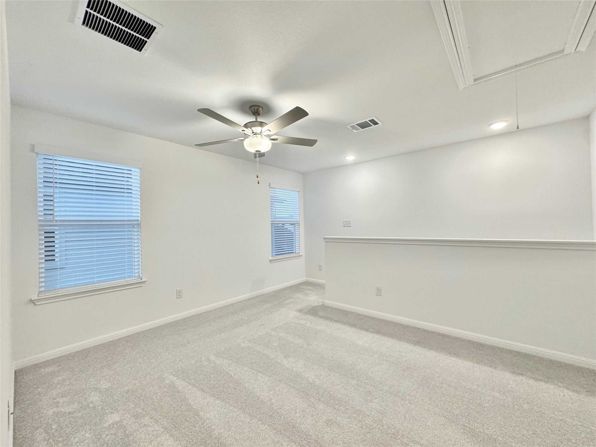 Brand new home offers a bright, airy entertaining floor plan that welcomes you every time. Features charming amenity center front of neighborhood with pool, clubhouse suite, play scapes, covered picnic tables and soccer fields. Additional curbside parking in front with rear entry two-car garage, private fenced backyard with inviting covered patio space. Spacious living filled with abundant natural light, alongside a primary suite complete with a bathroom and walk-in closet situated on the first floor. Modern kitchen design seamlessly connects to the dining area, kitchen island with bar-top seating. Powder bathroom and laundry room with an extra storage space next to garage entry. Bonus game room upstairs between two large secondary rooms with a shared full bath. Come see why everyone is moving to Emory Crossing today!