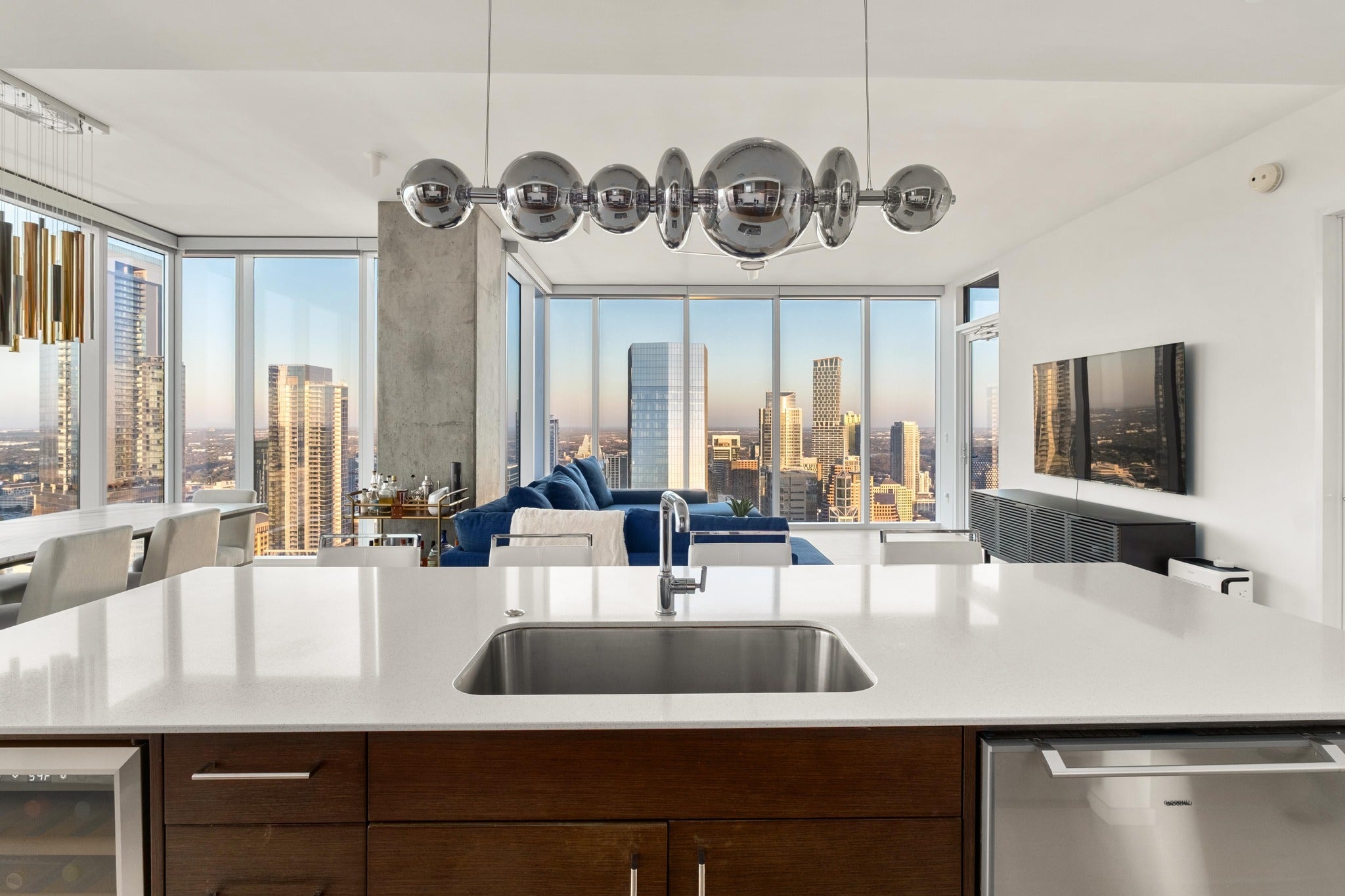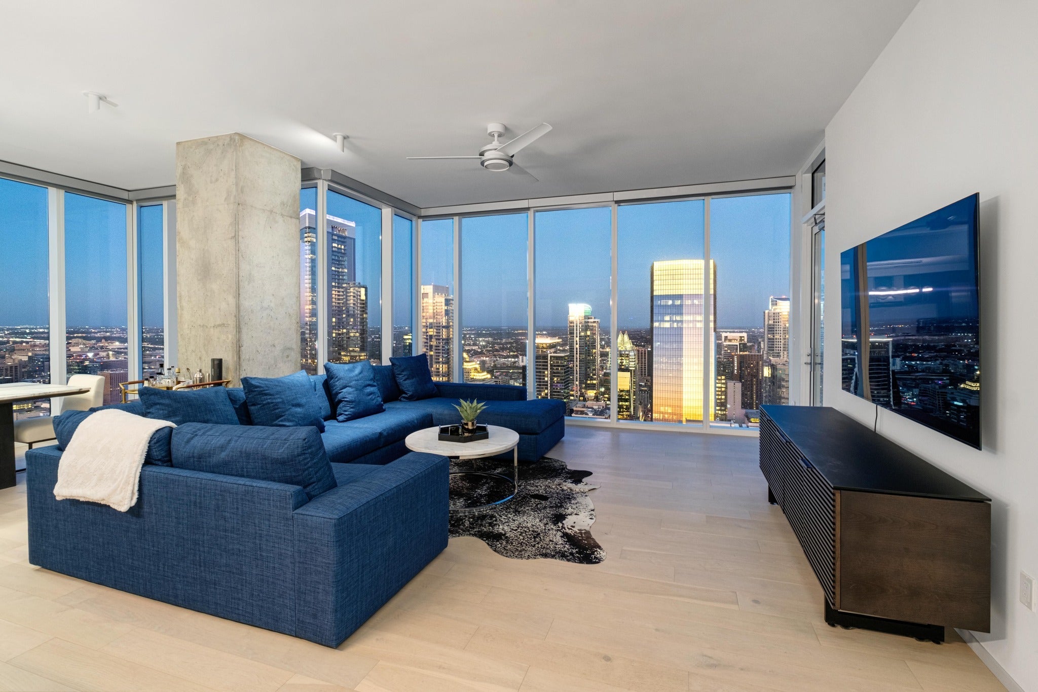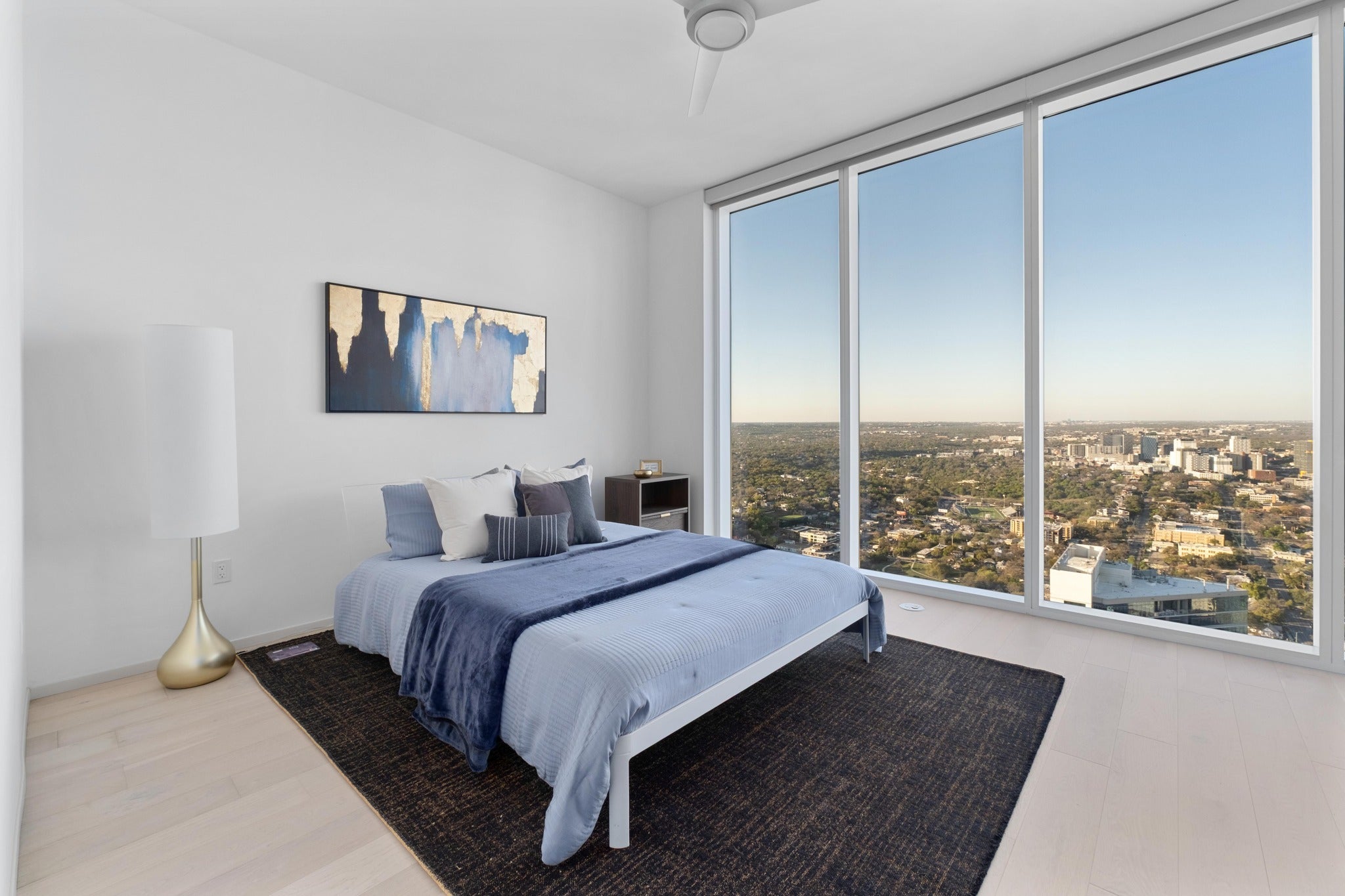 Soaring fifty-three stories above Downtown Austin this 1,838 square foot, 3-bedroom, 3-bathroom residence captures the spirit of Austin. It boasts million-dollar views, a life of convenience and a close proximity to all the best that living life in Austin's downtown has to offer. The condo has panoramic floor-to-ceiling windows and an open floor plan designed to leave no wasted space. Gaggenau appliances adorn the modern kitchen which flows seamlessly into the living and dining rooms. The condo stays comfortable year-round, receiving abundant natural light from the east and north-facing windows while keeping energy costs down (and window shades up!) by not receiving the direct, intense summer sun. The owners of this unit will enjoy the views year-round. This unit also includes three reserved parking spaces so guests have a place to park, and a private storage unit so extra personal items have a space to remain out of sight but within reach. The list of amenities offered to The Independent residents is long: a heated pool with modern, comfortable furniture on a large terrace which includes common areas for social gatherings & cooking on high-end grilling stations, a modernized fitness center, private conference and business facilities, a theater room, dedicated dog area with wash stations, and four reservable suites for visiting guests. Combining the location and high-end amenities of The Independent, including 24-7 concierge service, AND the beautiful condominium itself make this a rare opportunity to purchase a TIER IV, one-of-a-kind condo at The Independent. It's the downtown Austin home from which dreams are made.