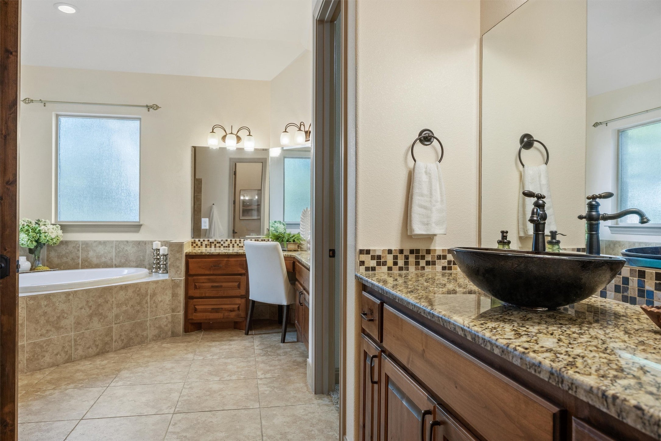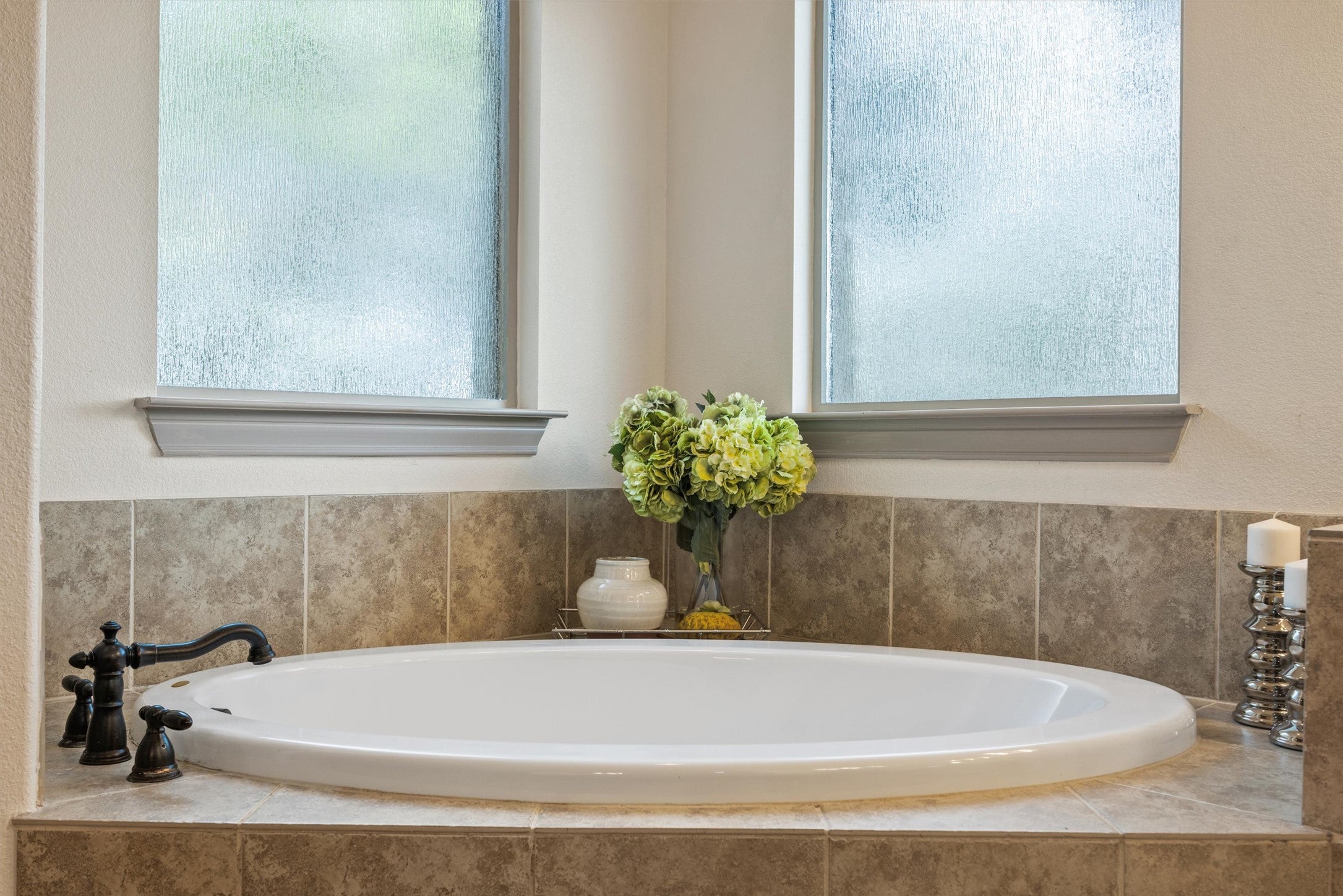 Two story, 4-bedroom, 4.5-bath, 2 living, 2 dining & an office in The Preserve, tucked just off Escalera Parkway in Georgetown. *NEW ROOF summer 2025, 3 HVAC NEW in 2025, Water Softener NEW 2025, 2 NEW Water Heaters in 2025*. Situated on over 1.5 acres on a quiet, tree-lined cul-de-sac, *(with room for a casita)this home blends privacy, space, within the highly regarded Leander ISD & low 1.68 tax rate. Architectural details throughout the home. The open chef’s kitchen is designed for both everyday living & entertaining, showcasing dual granite-topped islands, abundant cabinetry, two sinks, stainless appliances including a Jenn Air cooktop with grill, and a Bosch double oven. A striking stone arch and backsplash add warmth and character, beautifully echoed in the breakfast bar. The inviting family room features soaring coffered ceilings, expansive windows overlooking the serene backyard, and a dramatic floor-to-ceiling stone fireplace. The private primary suite is thoughtfully separated from the secondary bedrooms and offers wood-look tile flooring, a coffered ceiling, and direct patio access. The spa-inspired ensuite bath includes a garden tub, extended vanities with seating, and an oversized walk-in shower with multiple showerheads, bench seating, and elegant tile finishes. Flexible living spaces add tremendous versatility, including a downstairs room ideal for an office or game room, plus an upstairs loft with adjacent bedroom and full bath — perfect for guests or multigenerational living. Outdoor living is equally impressive, featuring a covered patio with wood plank ceiling that flows down to a beautiful pool and spa, all overlooking a spacious yard and wooded backdrop — a true private retreat. Conveniently located with easy access to 183A and Ronald Reagan Boulevard, the home is just 16 minutes from downtown Georgetown and minutes from the 525-acre Garey Park, offering trails, fishing ponds, playgrounds, splash pad, equestrian facilities, and more.