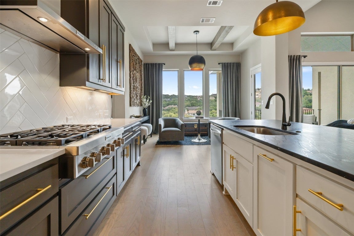 Truly One-of-a-Kind in Travisso! Perched on a premium cul-de-sac lot with sweeping canyon views, this exceptional home offers a rare combination of privacy, space, and versatility. Step into the top level where the main suite and in-law suite enjoy breathtaking vistas and serene surroundings. Downstairs, discover a full second living space—complete with its own kitchen, private patio, pool access, and Texas basement—perfect for multigenerational living or hosting long-term guests. With 5 bedrooms (including 2 en-suites), 2 full kitchens, and 4,812 square feet of thoughtfully designed space, this layout is ideal for a growing or extended family. Nestled on over half an acre at the end of the cul-de-sac, this lot is surrounded by nature with no neighbors behind, no neighbors to the right, and a vacant lot to the left—ensuring unmatched peace and privacy. Beautifully maintained and move-in ready, this is more than a home—it’s a retreat. Don’t miss your chance to experience it for yourself.