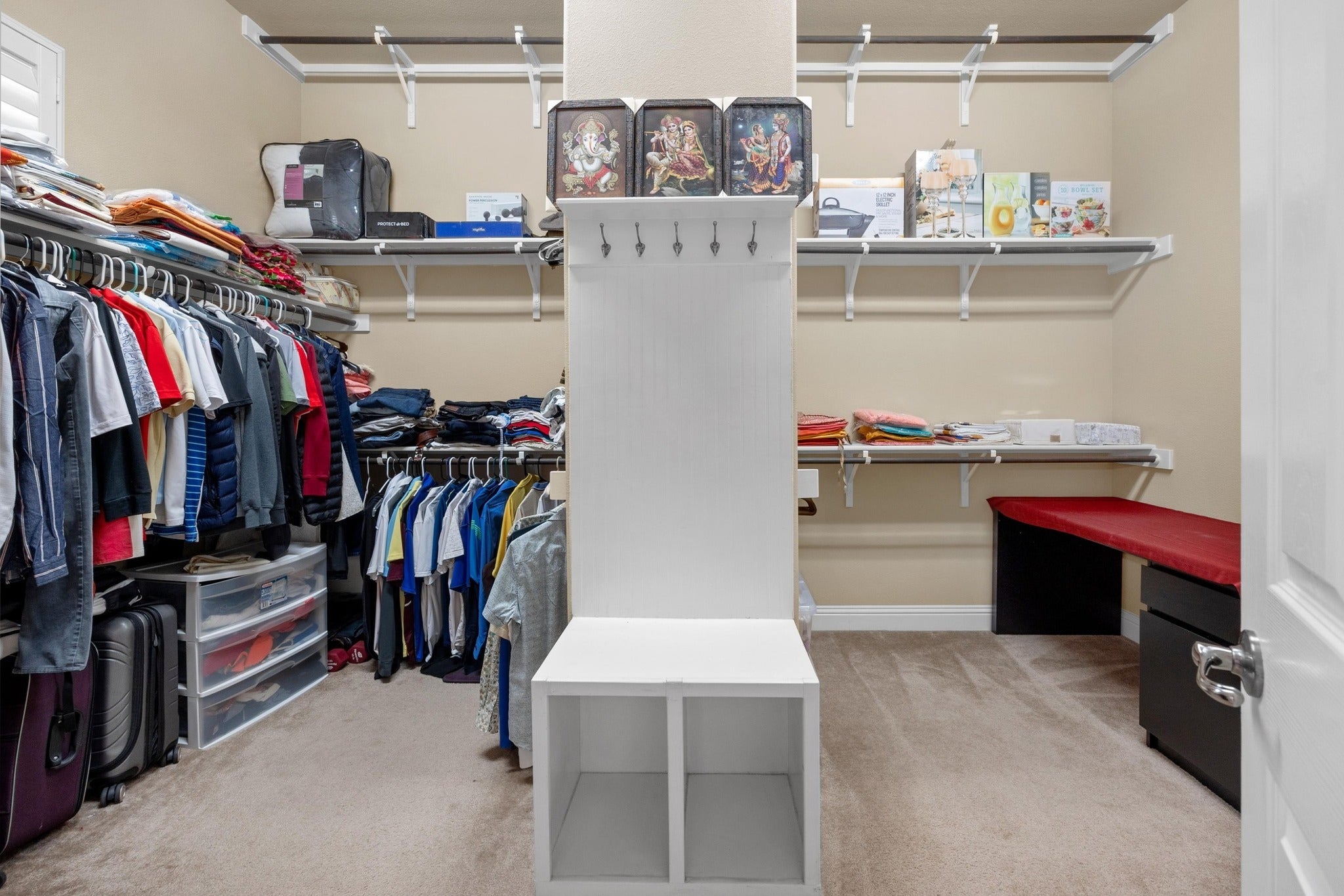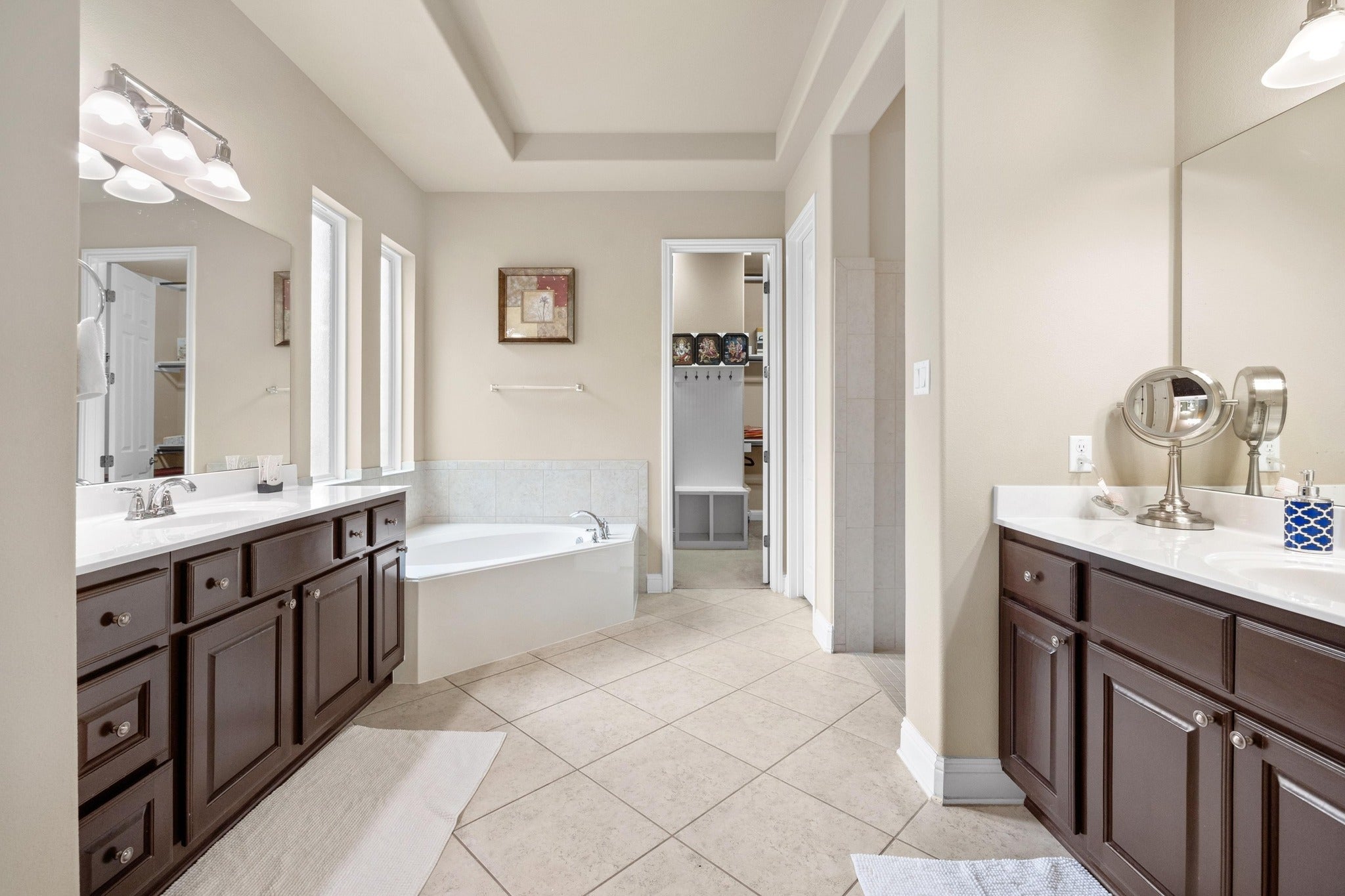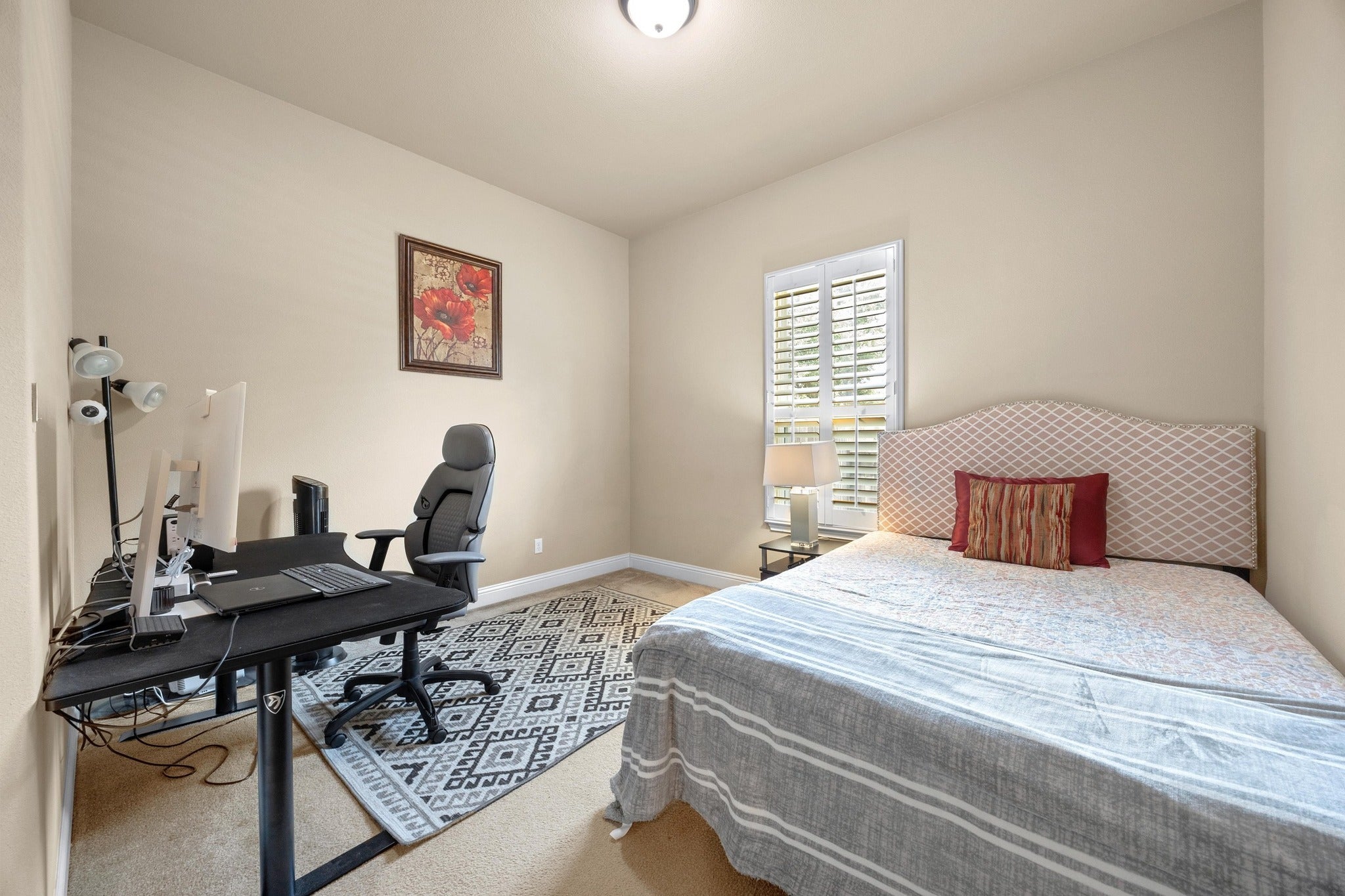 Beautiful 1.5-story home in highly sought-after Northwoods at Avery Ranch featuring 4 bedrooms, 4.5 bathrooms, plus a dedicated study/office. The open floor plan offers a spacious living area with hardwood flooring, flowing seamlessly into the dining and breakfast areas. The home is filled with abundant natural light and plantation shutters throughout. The large primary suite features elegant bay windows, a spa-like bathroom with a huge walk-in shower, and an oversized walk-in closet. Upstairs includes a spacious game/media room with a full bath, perfect for entertainment or guests. The home is also pre-wired for a sound system. Enjoy the large backyard with mature trees and an extended covered patio with natural gas connection, ideal for an outdoor kitchen and entertaining. Conveniently located near CapMetro and major employers including Apple, NVIDIA, and PayPal, with easy access to shopping and dining. Students attend top-rated Round Rock Independent School District schools.