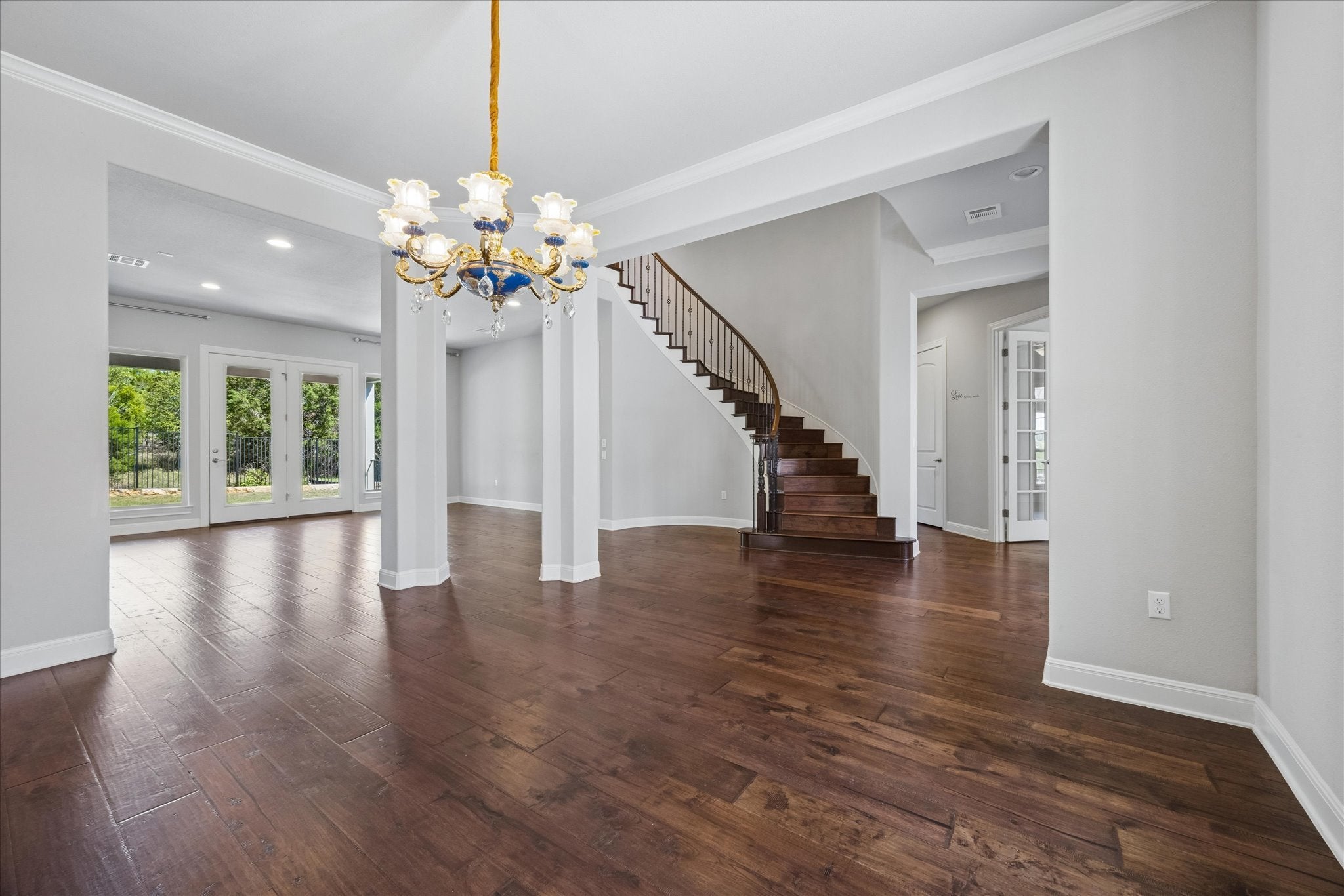 Luxury Living in The Grove at Steiner Ranch – A Masterpiece of Elegance & Comfort Discover modern luxury in this exquisite residence, nestled within the prestigious gated enclave of The Grove in Steiner Ranch. From the moment you step through the grand entryway, you're welcomed into a serene courtyard, where a cozy fireplace sets the tone for refined relaxation. Inside, soaring ceilings, opulent chandeliers, and rich hardwood floors create an ambiance of warmth and grandeur. The formal dining room, enhanced by dual statement mirrors and a dazzling chandelier, offers the perfect setting for intimate gatherings. Adjacent to the courtyard, a sunlit study provides an inspiring workspace that is ideal for remote professionals. At the heart of the home, the chef’s kitchen impresses with premium stainless steel appliances, custom cabinetry, and sleek quartz countertops—designed for both beauty and function. The luxurious Owner’s Suite is a true retreat, featuring towering ceilings, a tranquil sitting area with backyard views, and a spa-inspired bath complete with dual vanities, a deep soaking tub, and a spacious walk-in closet. Upstairs, three generously sized bedrooms each boast private ensuites and walk-in closets, while a dedicated computer niche, a game room with a covered balcony overlooking the greenbelt, and a state-of-the-art media room with surround sound provide ample space for work and play. Adding to the home’s versatility, a detached casita with its own garage offers endless possibilities—whether as a guest suite, second office, or private retreat. Step outside into the entertainer’s dream backyard, where a sprawling covered patio and built-in outdoor kitchen—featuring a cooktop, refrigerator, and sink—invite you to host unforgettable gatherings. With impeccable designer details, relaxing views, and an unbeatable location in one of Austin’s most sought-after communities, this stunning home is a rare find. Schedule your private tour today!