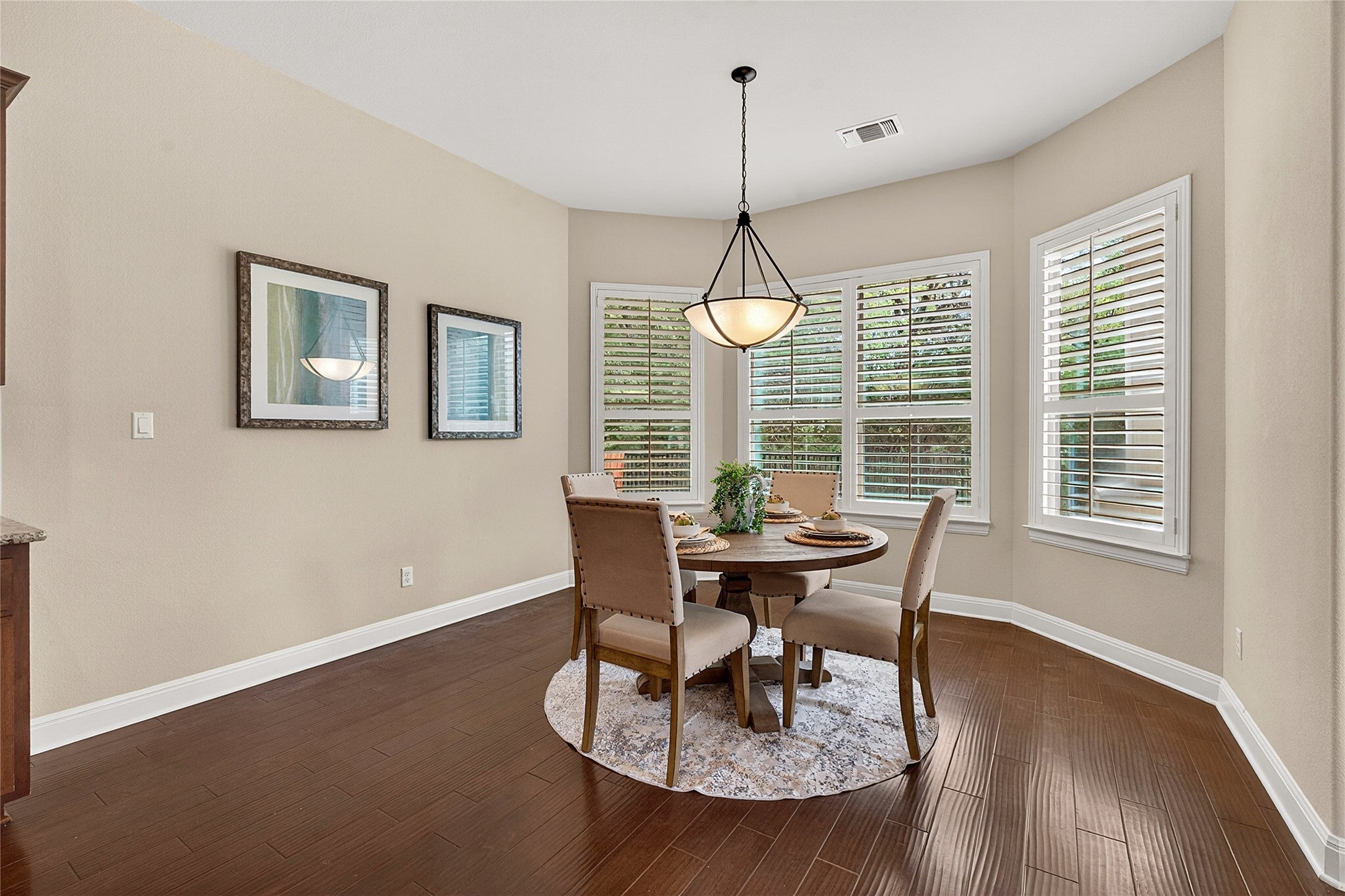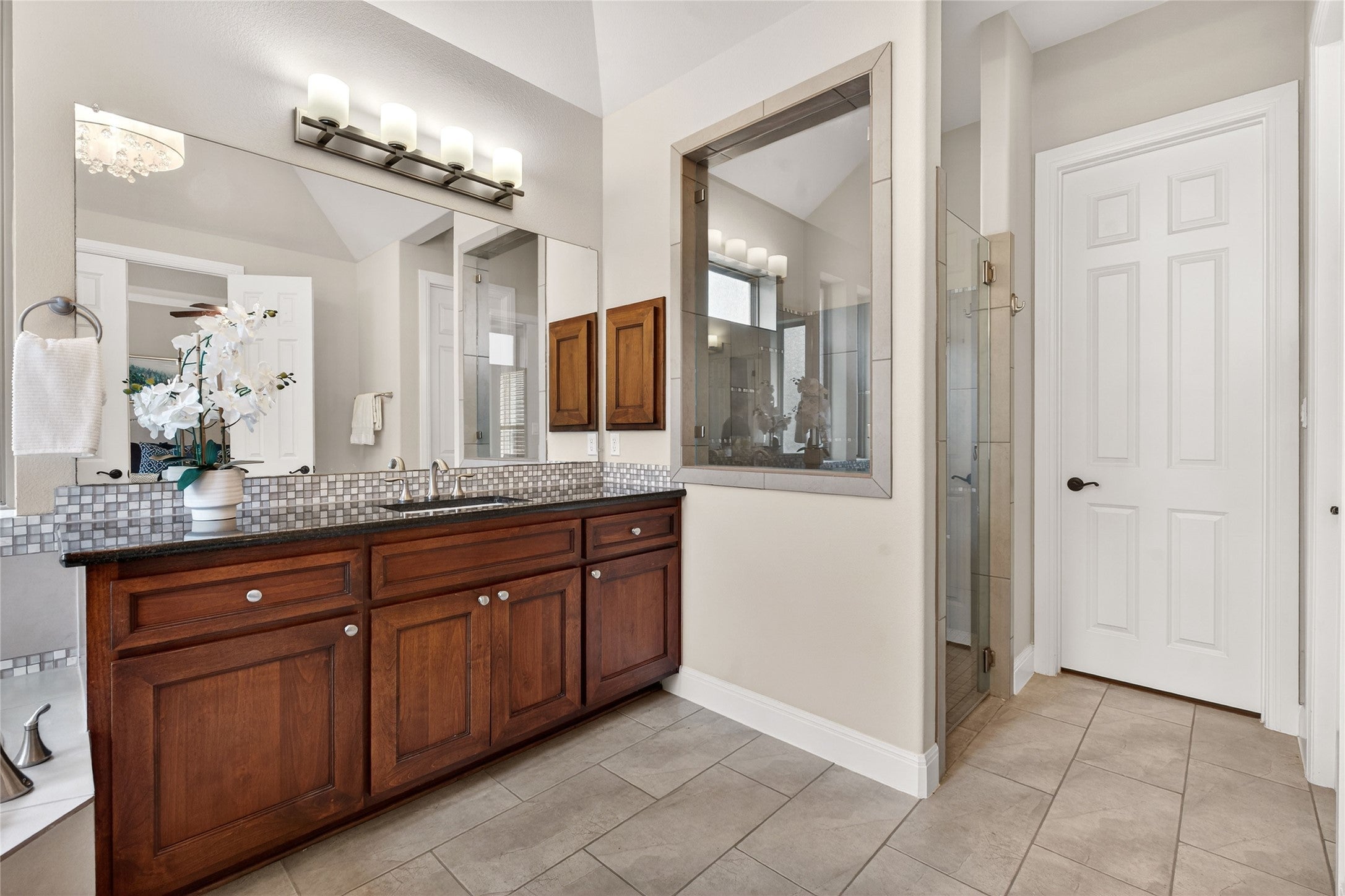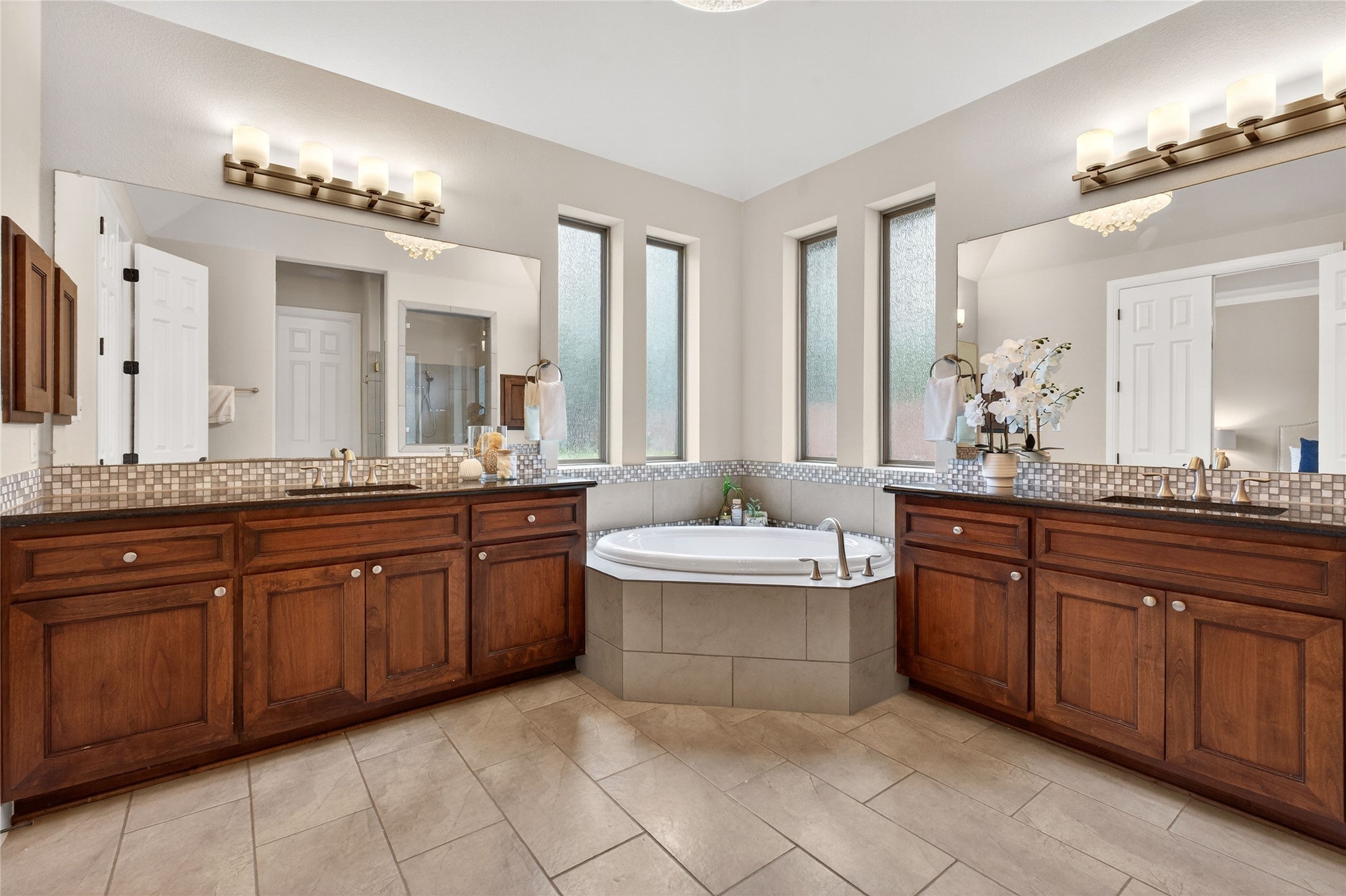 Lovingly maintained by its original owner, this north-facing 4,305 sq ft residence in the highly sought-after Northwoods at Avery Ranch offers a rare 2 bed / 2.5 bath layout on the main level, a 3-car garage, and an oversized greenbelt lot framed by mature oak trees. Ideally located just minutes from Pearson Ranch Middle School, the CapMetroRail, Brushy Creek Trail, and Avery Ranch Golf Course, this home offers an exceptional blend of convenience and natural beauty. A stone and stucco facade, manicured yard, and no direct front neighbors create a warm and welcoming first impression. Built by Drees Custom Homes, the home showcases high ceilings and wood flooring throughout the main living areas, with tile in the bathrooms. Updates include plantation shutters and replaced roof, HVAC, and water heater. The expansive living room features a cozy fireplace and a wall of windows with tranquil greenbelt views and abundant natural light. The gourmet kitchen is designed for everyday living and entertaining, featuring granite countertops, tile backsplash, ample cabinetry, a large pantry, and stainless steel appliances including a double oven, range hood, and 5-burner gas cooktop. The open-concept layout connects the kitchen, oversized island, and living area—ideal for gatherings. A standout feature is the main-level layout with two spacious bedrooms. The oversized primary suite offers backyard views, tray ceilings, and an ensuite bath with a frameless walk-in shower, garden tub, and a generous walk-in closet. A secondary bedroom includes its own private full bath, ideal for guests or multigenerational living. Upstairs, elegant stairs with wood balusters lead to a large game room, dedicated theater room, & two additional spacious bedrooms, each served by full baths. The theater room provides the perfect setting for movie nights and entertainment. Step outside to the oversized covered patio, ideal for outdoor dining and entertaining while enjoying the peaceful greenbelt setting.