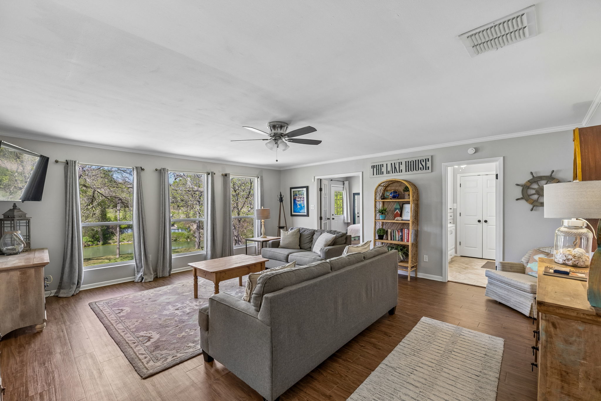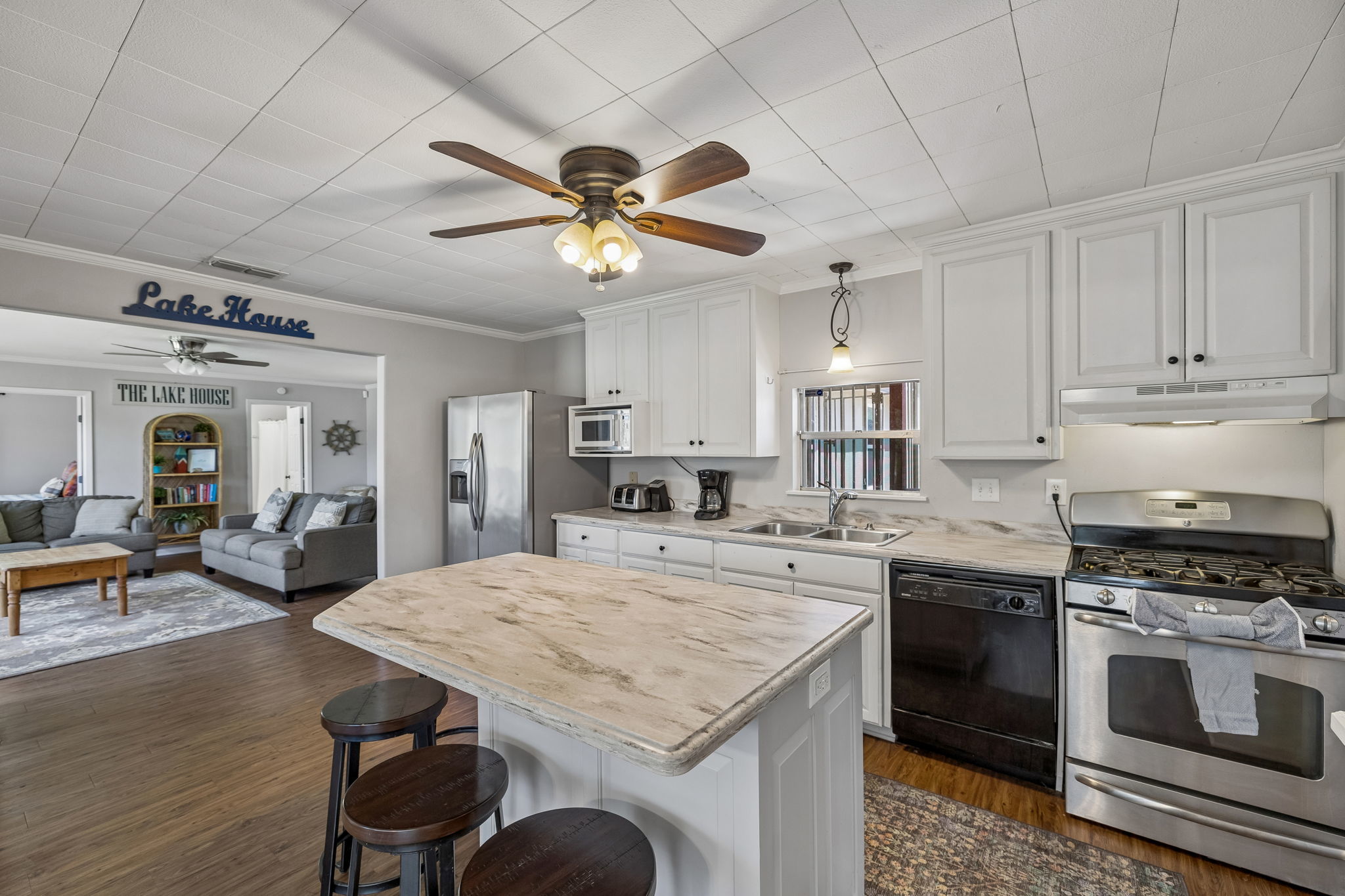 215’ of improved Meadow Lake shoreline. Spacious yard. Waterfront opportunity with momentum. This property delivers the kind of usable waterfront buyers are searching for—featuring a beach-entry shoreline and dock area ideal for boating, fishing, swimming, and everyday lake enjoyment. With continued progress on the Meadow Lake dam project, interest in lakefront property is steadily increasing, making locations like this especially appealing. The outdoor setting is wide, functional, and built for gatherings. A gently sloping lawn leads directly to the water, shaded by mature trees and offering plenty of room for recreation or entertaining. A brick walkway connects the home to the shoreline, while features like a sprinkler system, outdoor lighting, RV hookup, and multiple storage buildings add convenience and flexibility. Inside, the elevated home design takes advantage of scenic Meadow Lake views and provides a bright, open layout connecting the living, dining, and kitchen areas. Large windows bring in natural light and showcase the backyard and water. The kitchen includes a center island with seating, gas cooktop, custom cabinetry, and walk-in pantry, supporting both daily living and hosting. Located on a quiet cul-de-sac with ample outdoor space, this property combines shoreline access, functional land, and long-term potential—delivering the kind of Meadow Lake lifestyle buyers continue to pursue.