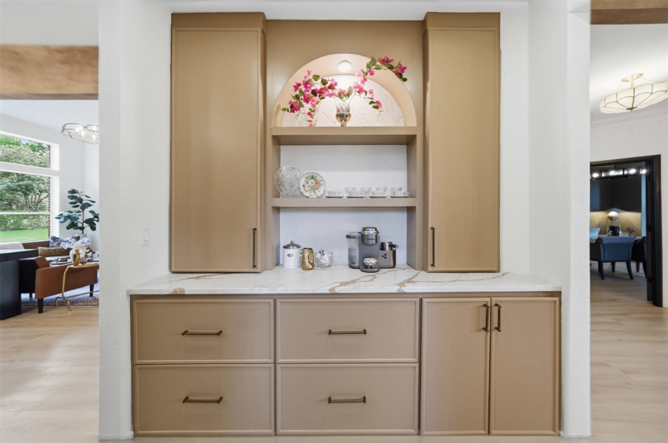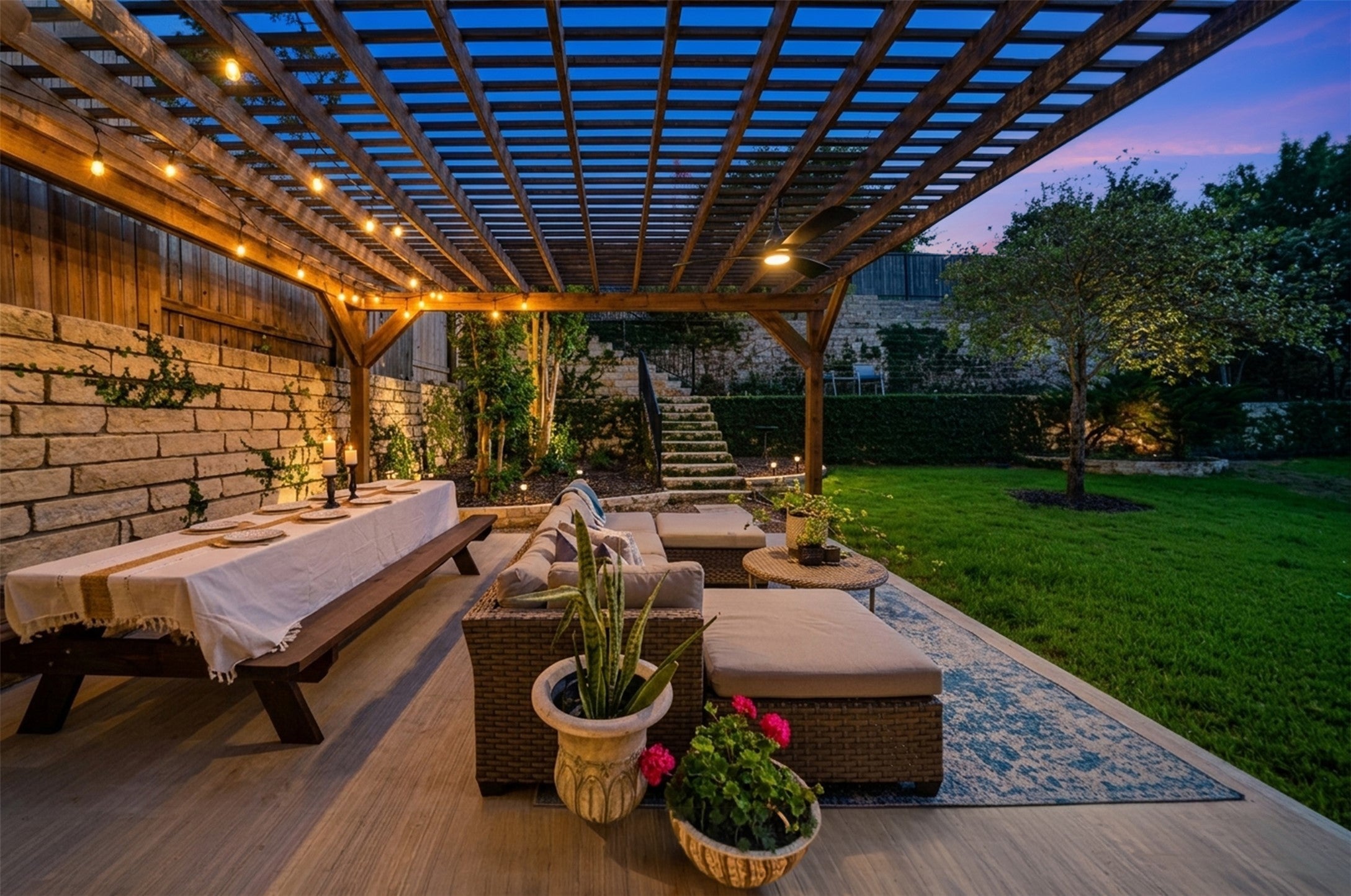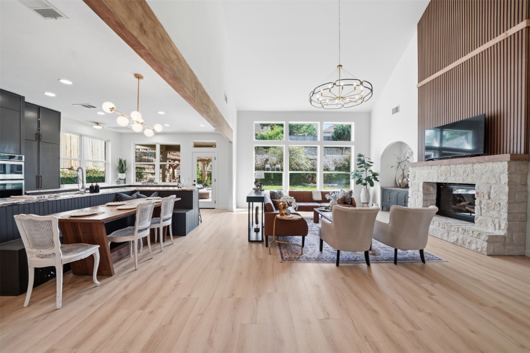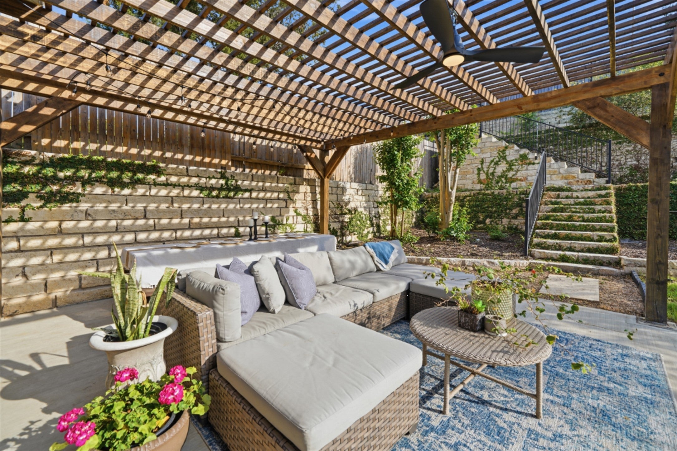 Major updates already done — with design details you won’t find in this area. Thoughtfully redesigned with a focus on functionality and style, this home offers a layout that feels both functional and inviting, with an easy indoor-outdoor flow for everyday living and entertaining. At the center of the home is a standout kitchen featuring a dramatic Patagonia stone island, updated cabinetry, designer lighting, and custom details that give the space a unique, high-impact look. Recent updates include roof replaced (2025), plumbing updated throughout (2026), garage doors replaced (2025), irrigation system updated (2026), flooring replaced (2026), updated paint and finishes, renovated kitchen, fireplace redesign, and a fully remodeled primary bathroom. Storage and functionality have been thoughtfully integrated throughout, including a custom pantry cabinet system with built-in drawers and shelving, a dedicated prep or coffee bar area with outlets for everyday use, appliance-ready cabinetry to keep countertops clean, and a utility closet in the laundry room with built-in power for charging vacuums and storing cleaning essentials, along with added storage space off the primary closet, overhead garage storage, and three floored attic spaces offering convenient, usable storage. A hidden speakeasy-style space and a secret room add personality and flexibility, creating a one-of-a-kind feature not commonly found in the area. Enjoy a gorgeous backyard with alfresco dining and outdoor living space, featuring terraced stone walls and desirable park-side privacy. Located in the highly sought after community of Highpointe and zoned to Dripping Springs ISD. If you’ve been looking for a home that’s design forward, one of a kind and the major work is already done — this is one to see in person.