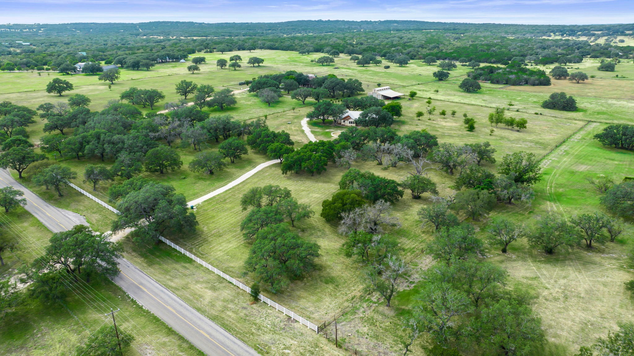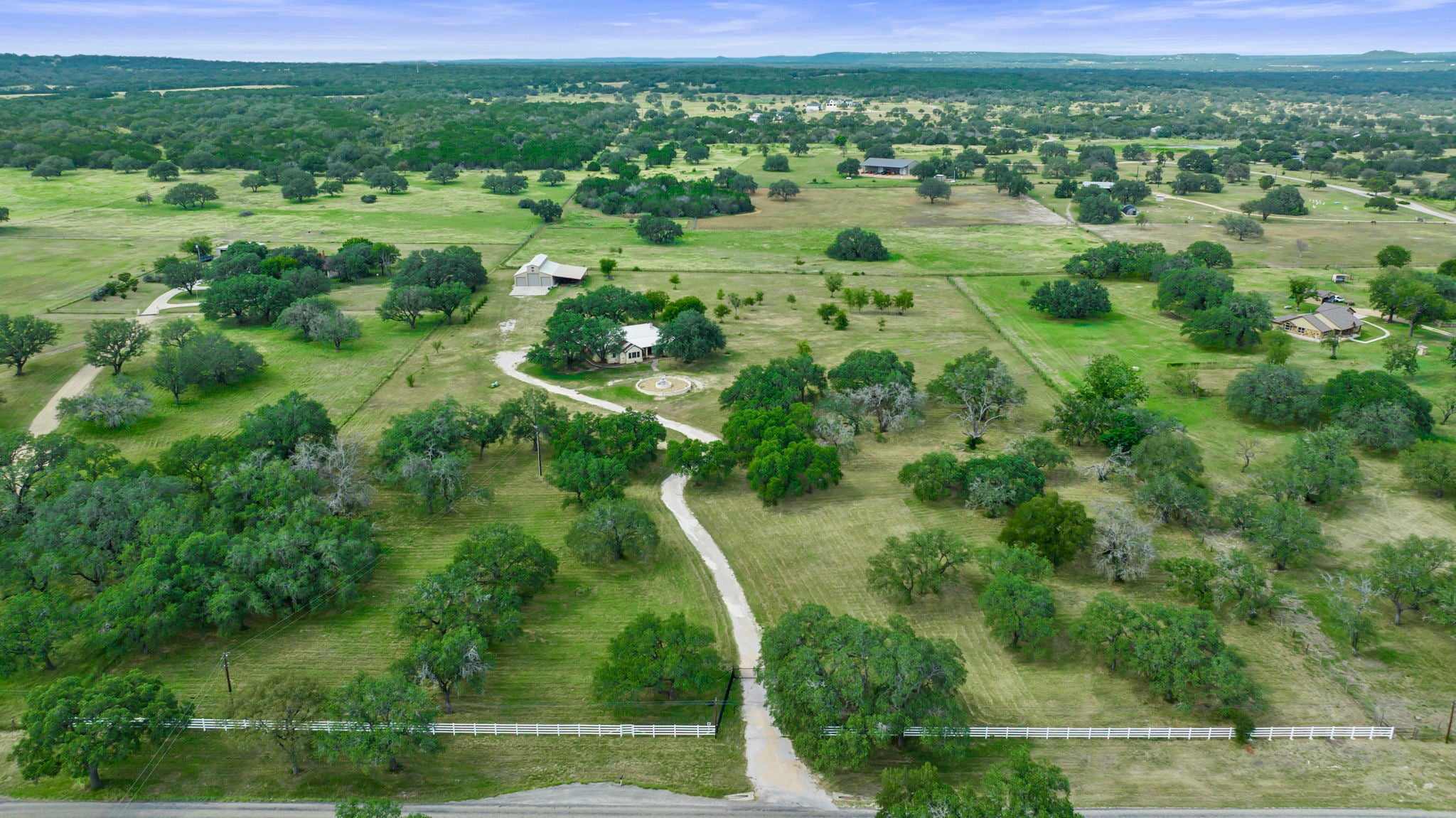 Wow! 10 beautiful acres cleared of cedars and full of oaks! Country setting with gated and fully fenced acreage, one story home offering flowing floorplan and great backyard space, PLUS huge metal barn with utilities. Ready for pets, people, plants and hobbies, this property offers easy access to Marble Falls and Burnet and a great North/South orientation. Room for toys, rvs, boats, etc. to be stored safely and out of the elements. Add to your hobbies, while enjoying the country life! Low tax rate and carrying costs.