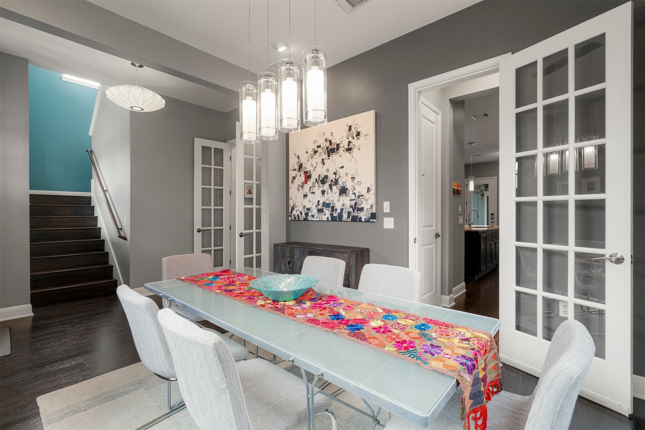 This Mueller single-family home offers 3 bedrooms and 2.5 bathrooms, located just a short walk from the central activity at Mueller Lake Park and the local dining and entertainment options along Aldrich Street. This two-story residence begins with a flex area at the front of the house, providing the perfect space for an office, formal dining room, or sitting room. Moving into the center of the home, the large living room features hardwood floors and a wall of windows that look out toward the private yard. The kitchen is positioned as the primary gathering spot on the first floor, featuring a 9 ft granite center island, stainless steel appliances, and a walk-in pantry. This open layout allows the kitchen to flow directly into the dining and living spaces. The second floor houses all of the bedrooms, including two guest bedrooms and a jack and jill guest bathroom located off the main upstairs hallway. The primary suite is also on this level, featuring a double vanity, soaking tub, and a walk-in shower. A second-floor balcony extends the living space outdoors, offering an elevated view of the Mueller streetscape and mature trees. The plumbing and electrical fixtures have been upgraded throughout. The rear of the property features professionally maintained landscaping, a rear patio with misting fans that can be used year round, and a pergola that shades a custom grill. The home is also equipped with solar panels and an EV charger in the garage. The location in the Mueller neighborhood places you within a 5 minute walk of the Sunday farmer’s market, the Thinkery, and the Alamo Drafthouse. Being this close to Mueller Lake means easy access to the 30-acre park and the extensive hike and bike trail system. For those commuting, this Mueller home is less than 5 miles from Downtown Austin and about 8 miles from the airport. This residence combines beautiful finishes with a location that puts Austin’s best parks, grocery options, and local eateries right outside your door.