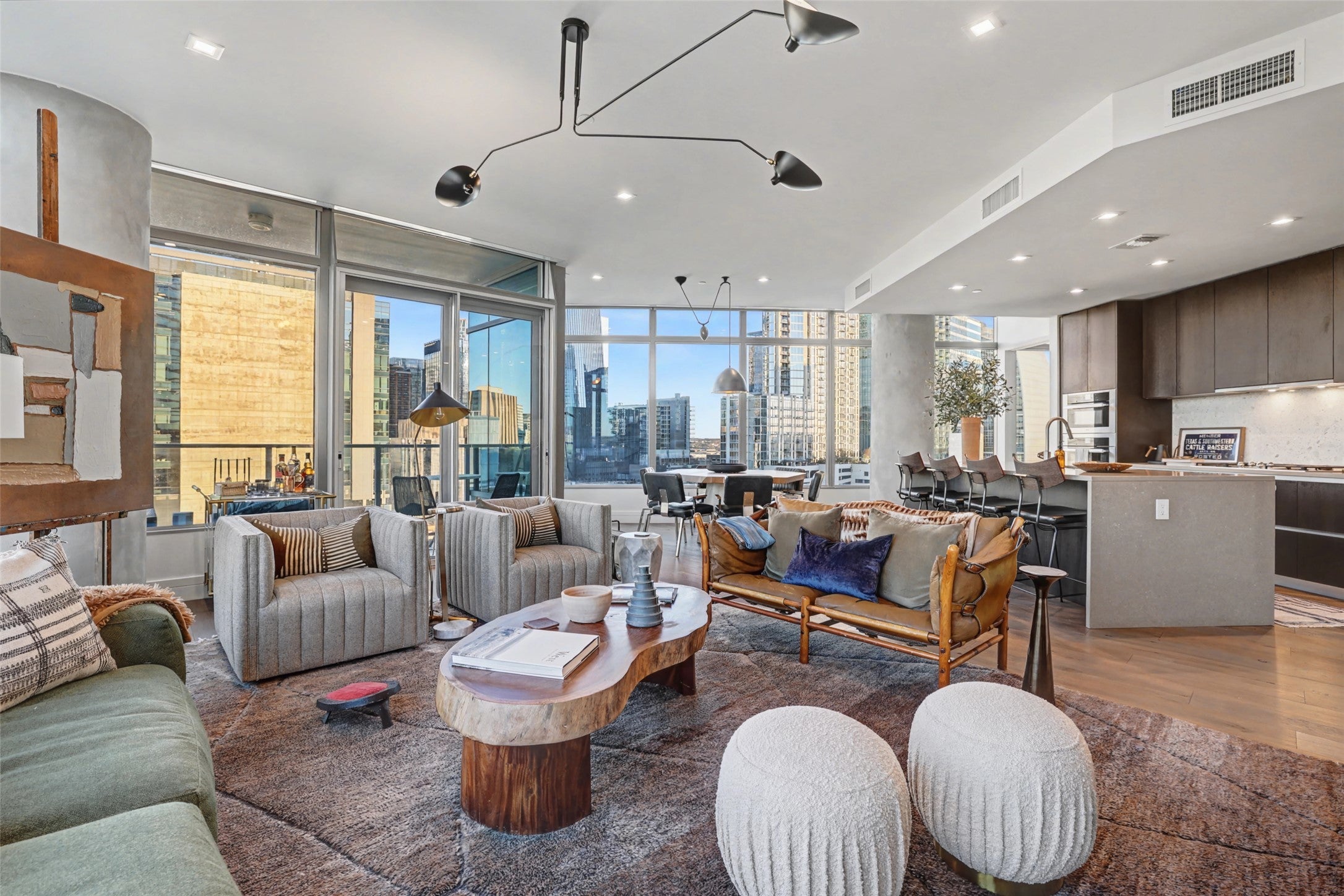 Welcome to Fifth & West, one of downtown Austin’s most prestigious high-rises, designed by GDA Architects with interiors by Michael Hsu Office of Architecture. This refined residence pairs elevated design with smart-home convenience. Wide-plank hardwood floors and expansive sound proof windows showcase striking city views. The chef’s kitchen features a waterfall-edge quartz island, custom cabinetry, and a full suite of Miele appliances. Savant automation, automated shades, keyless entry, recessed lighting, USB outlets, and a smart thermostat enhance everyday living. The primary suite offers a spa-inspired bath with marble detailing, dual vanities, a frameless glass shower, and a custom walk-in closet. Resort-level amenities include a rooftop pool and sky deck, fitness center with yoga and spin studios, owner’s lounge, chef’s kitchen and private dining, conference rooms, media lounges, and two guest suites. Dog park and pet spa, secure bike storage, EV-capable parking, private storage, and two reserved garage spaces add convenience. HOA covers water, sewer, gas, and trash. 24-hour concierge service. Just steps from Lady Bird Lake, the Hike & Bike Trail, Whole Foods Market, Seaholm, 2nd Street, and West Sixth. Walk Score of 95 for a truly lock-and-leave, car-optional lifestyle. Furniture negotiable.