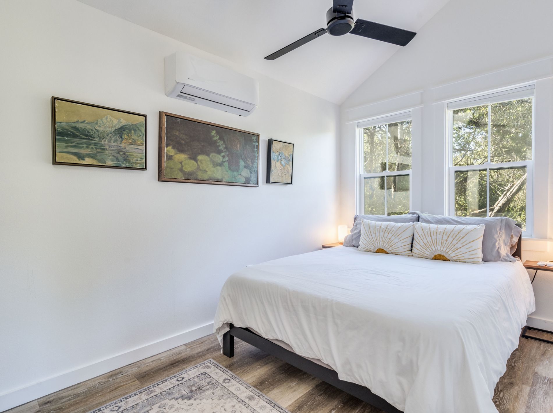 Rise and shine in peaceful seclusion. In the distance listen to roosters crow, donkey brays, and highland cows and horses call to each other in the morning sunlight. Look out your window to see hummingbirds, cardinals, and painted buntings. An oasis from city life within minutes of downtown, this property includes 1.5 acres on a cul-de-sac, set off from the main road and undisturbed from nearby properties by trees and vegetation, backing up to 20 acres of undeveloped property. Stunning and efficient 3-bedroom / 2-bath main home (1750 sf) updated with modern amenities, solar, whole-home generator backup, and lots of windows and natural lighting! Plus, a newly built separate duplex containing two private one-bedroom units (325 sf each). Perfect for multi-gen living, rental income, or an owner-occupied property with long-term tenants. History of rental and Airbnb income verifiable in securing a mortgage. Breathtaking covered front porch, made for entertaining and relaxing. The deck off the back porch boasts a hot tub, space for cookouts, and steps to a firepit. The entire property is fenced in and pet-ready. If desired, enjoy the convenience of purchasing both home and duplex units fully furnished.