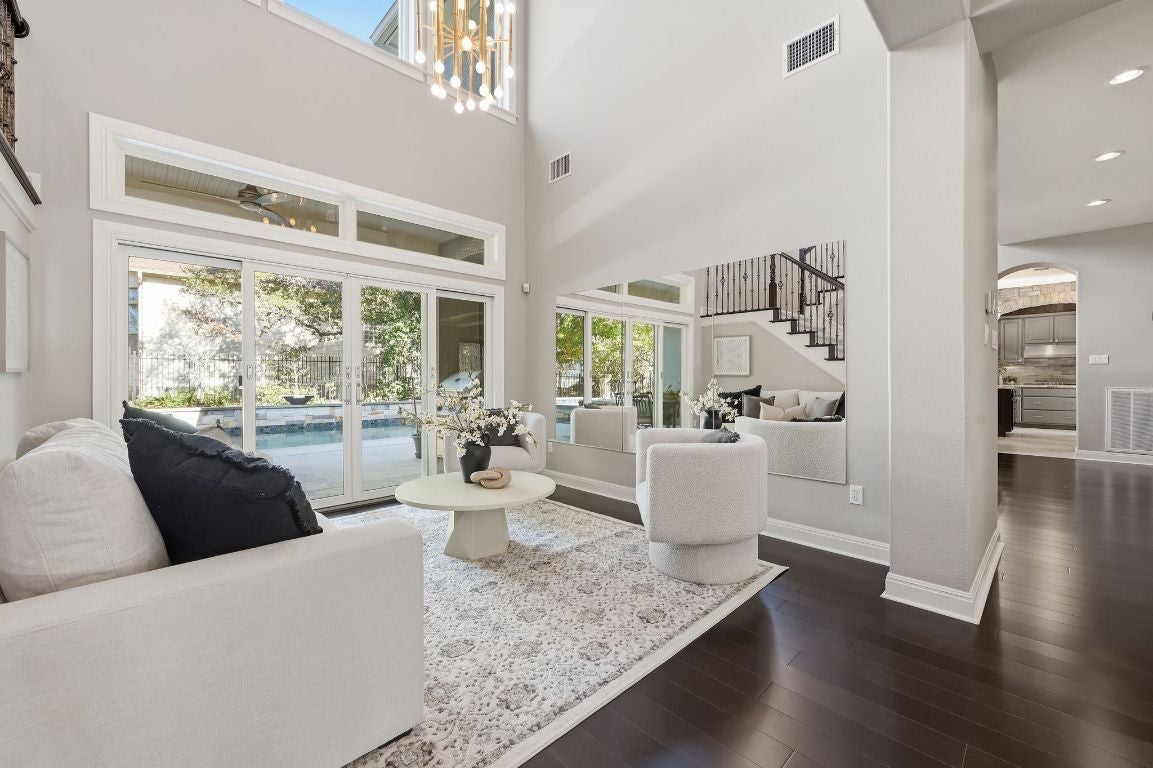 Welcome to your dream home, an immaculate residence nestled in the heart of Austin's sought-after Spicewood at Bull Creek community. Boasting four spacious bedrooms and 4.5 luxurious bathrooms, this home is designed for both comfort and sophistication. Every inch is adorned with elegant finishes that radiate a sense of opulence throughout. The heart of the home is the chef's kitchen, updated with the finest stainless steel appliances, perfect for creating culinary delights. Entertain guests under the ambient glow of crystal chandeliers, whether in the designated study, the formal dining room, or the expansive media room. Step outside to a serene covered patio, a pristine pool, and a heated spa – your own private oasis for relaxation or hosting memorable gatherings. Each private balcony offers a unique view, contributing to the tranquil atmosphere. Eco-conscious features include solar panels and a Tesla charger, pairing luxury with sustainability. Enjoy the proximity to highly rated schools: Spicewood Elementary, Canyon Vista MS, and Westwood HS. This home isn't just a residence; it's a lifestyle upgrade waiting for you.