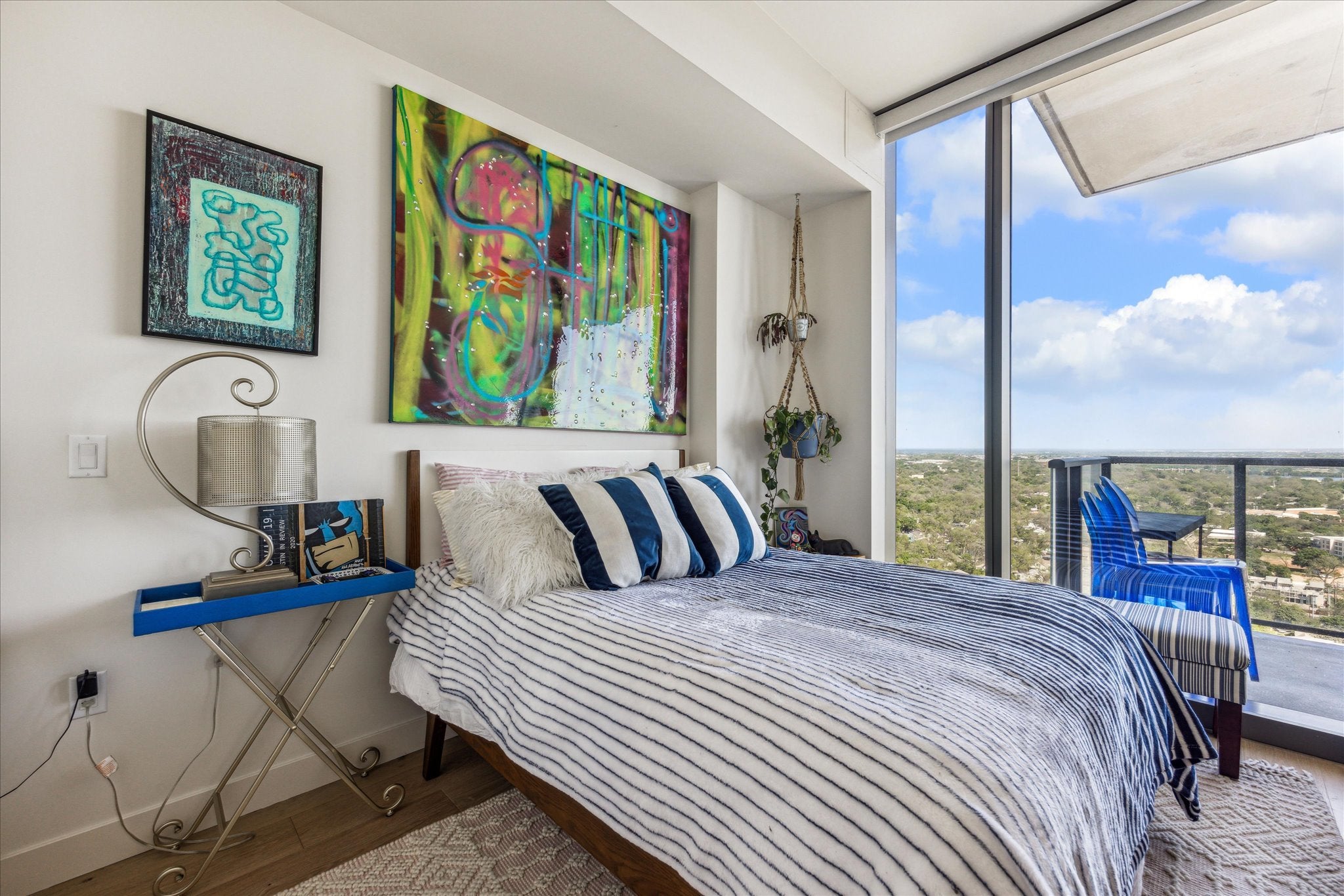 PRIME parking spot comes with the condo. Luxury lakeside living situated in the quiet residential part of sizzling Rainey ST District neighborhood. Enjoy your morning coffee to electrifying sunrises and walk to Austin's best restaurants and live music. 2/2 condo with panoramic southeastern Lady Bird Lake view from every room with the classic smooth white finish! Features floor-to-ceiling windows, upgraded hardwoods and tile flooring, Italian cabinetry, quartz countertops, giant covered balcony, gas stove with custom closets, solar and black out motorized shades and designer light fixtures. Highly functional design with no wasted space that works great for a 2/2 or a 1+study/2. This one includes an awesome low floor parking spot on P3. 44 East Ave is a wonderful community with a vibrant social calendar to easily make friends with all of your awesome neighbors! 13,000 SF of amazing amenities designed by Michael Hsu including gorgeous lobby with coffee and 24 HR concierge, a cenote pool, outdoor lounge with gas grills, dog park/lounge/spa, fitness center, yoga studio, conference rooms, great room with TVs and caterer’s kitchen, family room with shuffle board and foosball and 2 guest suites. Steps to hike/bike trail, entertainment, live music, parks, coffee, Emmer and Rye, Royal Blue Grocery, Whole Foods and Target. This building is amazing for dog owners - the dog lounge is awesome and Trailhead Park is right outside the building! Excellent access to I35, 71, 183, 130, UT, Med Center, HEBs, Oracle, and Austin Bergstrom. Must see it! Furnishings are negotiable. Owner/Agent