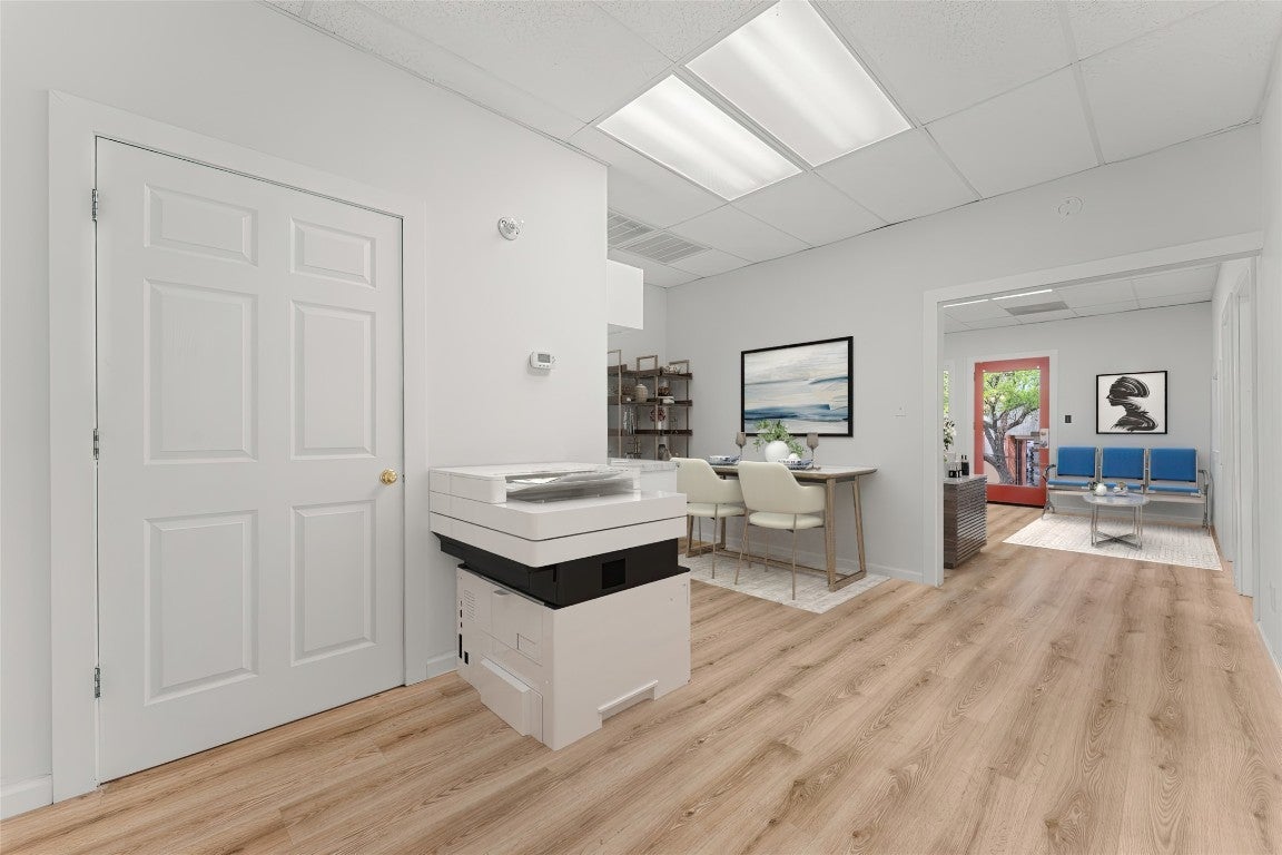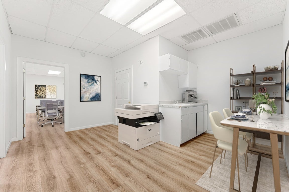 Welcome to your ideal office space nestled within a thriving strip mall community at 13092 Pond Springs Rd. This 1645 sq ft unit offers a prime location in a fully leased strip mall, surrounded by diverse neighbors including two churches, a med spa, massage school, dance studio, eye lash studio, and an IT firm. With ample parking and easy access to Research Boulevard from Anderson Mill and McNeil Rd, convenience is at your fingertips. Step inside to discover a meticulously designed layout featuring two spacious offices, a large conference room, a welcoming lobby/front desk area, and a convenient break room. The possibilities are endless with this versatile space, perfect for a variety of professional services such as accounting, law, therapy, consultancy, insurance, real estate, talent/recruiting, photography, videography studios, and management offices. Property boasts a private bathroom, large storage room, and well-maintained laminate wood floors throughout. The break room offers additional flexibility, with space for a copy center, while the open-concept conference room provides ample room for a large table and workstations. Ease of access is further enhanced by a back door leading to a wide alley, ideal for truck deliveries, and extra parking at the rear of the property. Despite the bustling surroundings, maneuvering in and out of the parking lot is a breeze, making your daily commute hassle-free. Convenience extends beyond the property itself, with a nearby gas station and several food options just moments away. Additionally, enjoy the serenity of a green area on the property complete with a picnic table and shaded by plenty of trees, perfect for a rejuvenating lunch break or afternoon socializing. With a minimum lease term of 24 months and negotiable length options, seize the opportunity to make this versatile space your own. Plus, with an on-premise manager available, you can rest assured that your needs will be met promptly and efficiently.