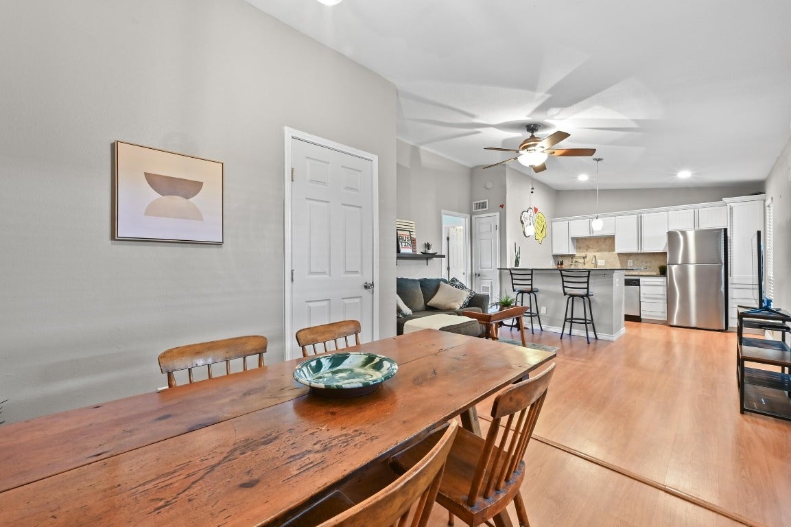 Short-term rentals allowed!! Sizzling opportunity to lock down a Zilker hideaway in the heart of Austin, Texas! A truly rare condo at Zilker Condominiums in one of the city’s most in-demand neighborhoods. Walking distance to Barton Springs and South Lamar’s greatest hits, including Loro, Snooze, Black Sheep, Bird Bird Biscuit, Alamo Drafthouse, Odd Duck, Ramen Tatsuya, and more. This updated second-floor unit delivers with high ceilings, refreshed fixtures, easy-care wood-look floors, crown molding, and clean neutral paint. The open layout keeps things effortless, with the kitchen flowing into the living space and dining area, plus bar seating along the peninsula for entertaining. Modern cabinetry, granite counters, and stainless appliances keep the kitchen current and functional. Local-flavored Austin murals in the kitchen and bedroom add personality that sets this unit apart, especially for STR appeal. The bedroom nods to SoCo with Joe’s green walls and the iconic “I Love You So Much” mural. The full bath is thoughtfully updated, and the in-unit stackable washer and dryer make everyday living easy. The complex itself has seen steady improvements over time, centered around a tree-shaded courtyard with wrought-iron railings and an updated community deck featuring covered seating, open-air gathering space, and grill stations. There’s also a private green space with walking paths, a firepit, and room for dogs to roam. Across the street: Little Zilker Park with lighted tennis courts, a walking trail, and the neighborhood elementary school. The legendary 78704 lifestyle shines here - walk to a corner store or bakery, cruise downtown in minutes, hop on Lamar transit, or coast downhill by bike to the trail at the springs and straight into downtown or East Austin, traffic-free. Schedule your showing today!