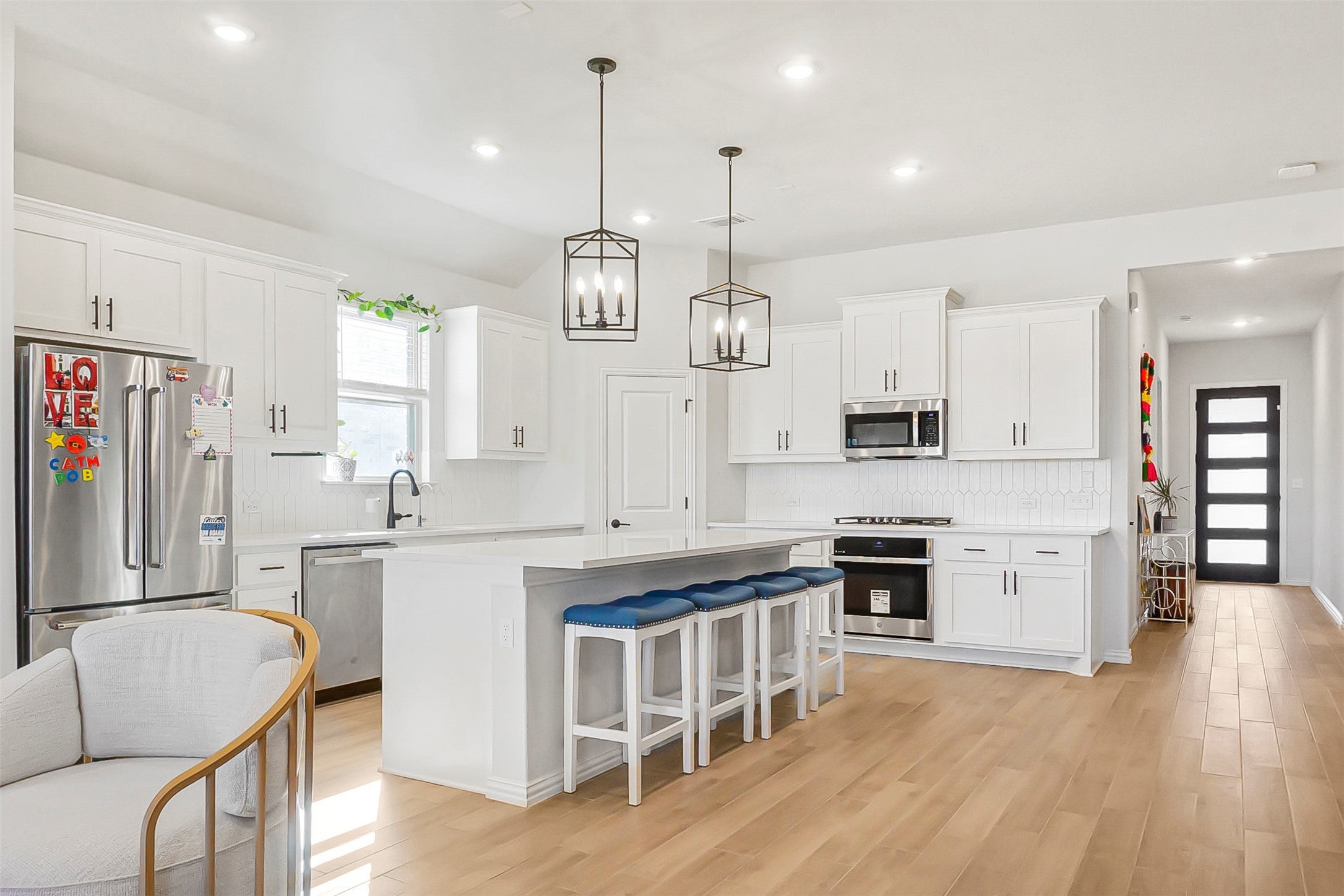 Beautiful 4-bedroom, 3.5-bath home located in the highly desirable Parkside on the River community in Georgetown. Built in 2023, this spacious home offers approximately 2,642 sq ft of living space on a large 0.26-acre cul-de-sac lot. The open-concept floor plan features a bright living area, modern kitchen with quartz countertops, stainless steel appliances, large center island, and plenty of cabinet space. The private primary suite offers a spa-like bathroom with dual vanities, walk-in shower, and a spacious walk-in closet. Additional bedrooms provide flexible space for family, guests, or a home office. An upstairs game room adds extra living and entertainment space. Enjoy outdoor living with an extended covered patio and a large backyard, perfect for relaxing or entertaining. Refrigerator, washer, dryer, water softener, and RO water system included for tenant convenience. Located in Leander ISD with easy access to parks, walking trails, shopping, dining, and major highways. A great opportunity to lease a modern home in a beautiful family-friendly neighborhood.