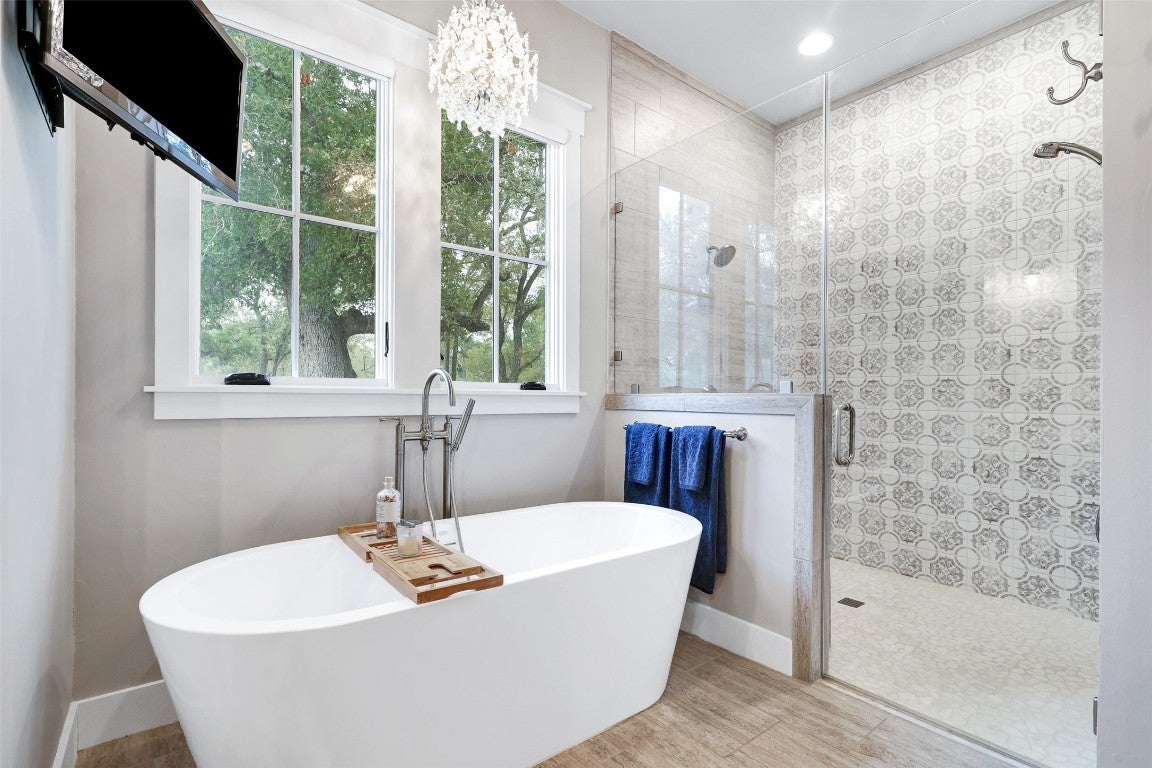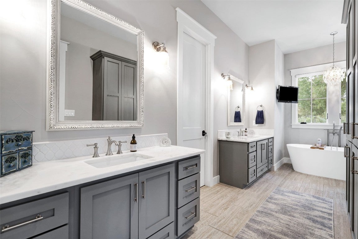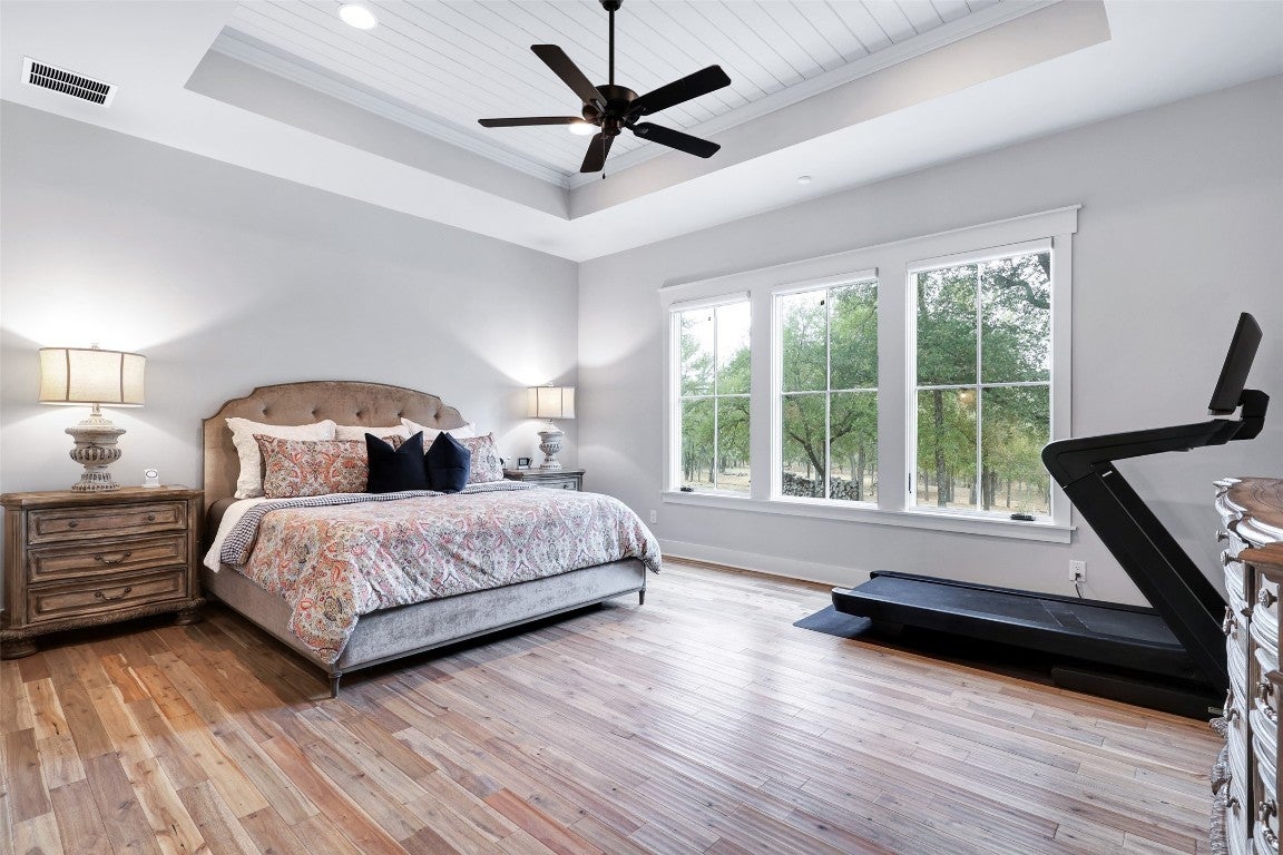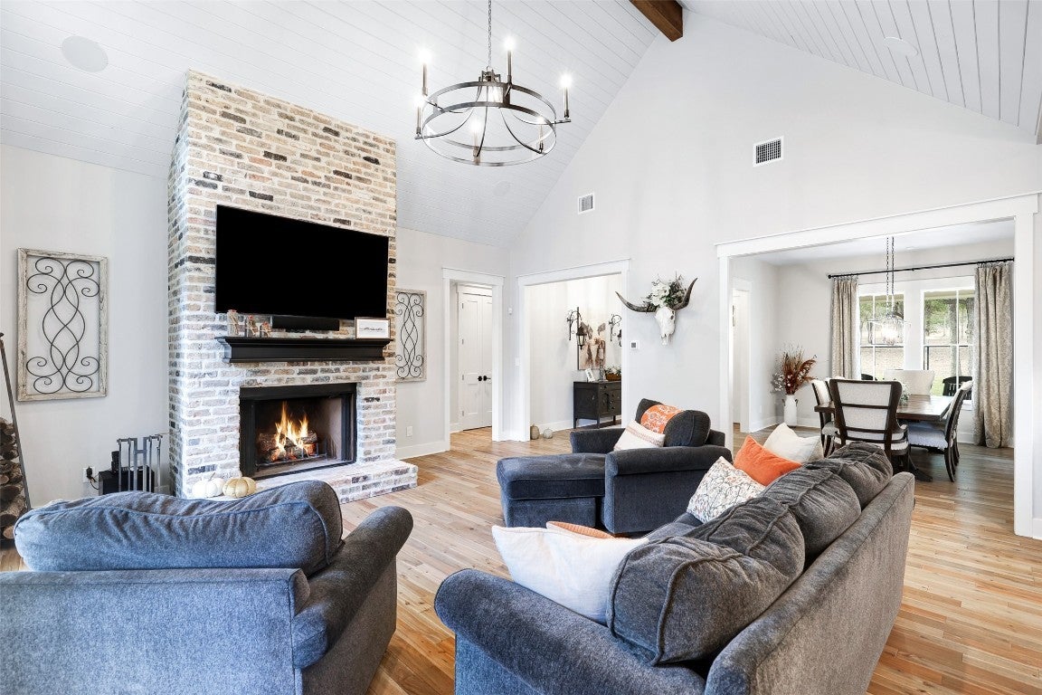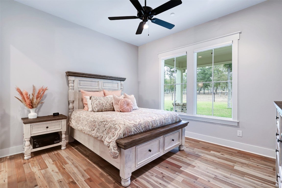 Rustic country life meets modern farmhouse. This masterfully designed, intuitive, and intentional floor plan perfectly blends exquisite design, livability, and overall elegance with plenty of space for living, working, creating, and entertaining. Bright, light-filled rooms open up & let the outside in with this beautiful custom-built estate set back on 11 green tree-lined unrestricted acres. Greeted with a formal dining room and living area, your eyes are immediately drawn to the stone fireplace and shiplap ceilings. Your living room has soaring ceilings and a wall of windows. Transom windows allow natural light to flood into this space. Your gourmet kitchen features an island, quartz counters, pendant lights, a wine fridge and all commercial grade appliances. You'll swoon over your expansive pantry and coffee bar. You have a built-in work area with thoughtful shelves and cabinets. Your primary bedroom is peaceful and serene. Barn doors lead you to your spa-like ensuite. You have his/her double vanities, a luxurious soaking tub, and a walk-in shower. Amazing spacious walk in closet, which connects to your laundry room. Your secondary bedrooms and bathrooms are spacious with many elegant touches. The expansive back patio overlooks the rolling Hill Country, with views of the luscious greenery and sunsets that span for miles. Enjoy the peaceful serenity of this property. Horse enthusiast? Bring your favorite equine to this property. You'll fall in love with the scenic scenes and wildlife. Elevate your lifestyle with this one-of-a-kind property.