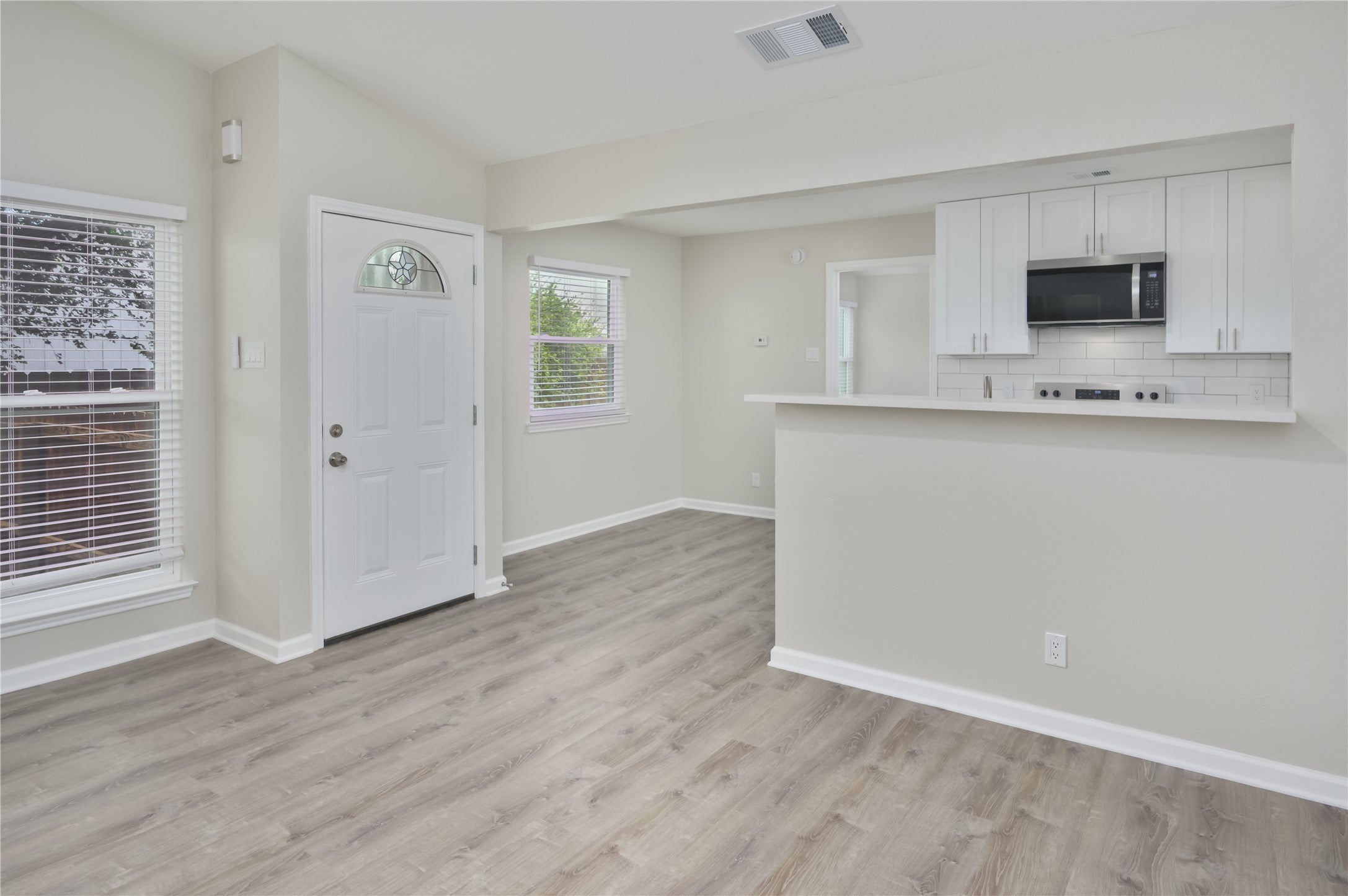 Charming single-story 3-bedroom, 2-bath home in desirable Lohmans Crossing Estates in Lakeway, featuring luxury vinyl flooring, vaulted ceilings, and a bright open layout with a cozy wood-burning fireplace. Recently renovated from floor to ceiling with all new flooring, paint, countertops, cabinetry, sinks, showers, commodes, and brand-new appliances throughout. The kitchen offers modern finishes along with a refrigerator, dishwasher, microwave, electric range, and pantry. Enjoy a private fenced backyard with a deck, plus an attached garage with laundry. No HOA. Located in highly rated Lake Travis ISD with easy access to shopping, dining, and major roads. Pets welcome with restrictions. Available for immediate move-in.