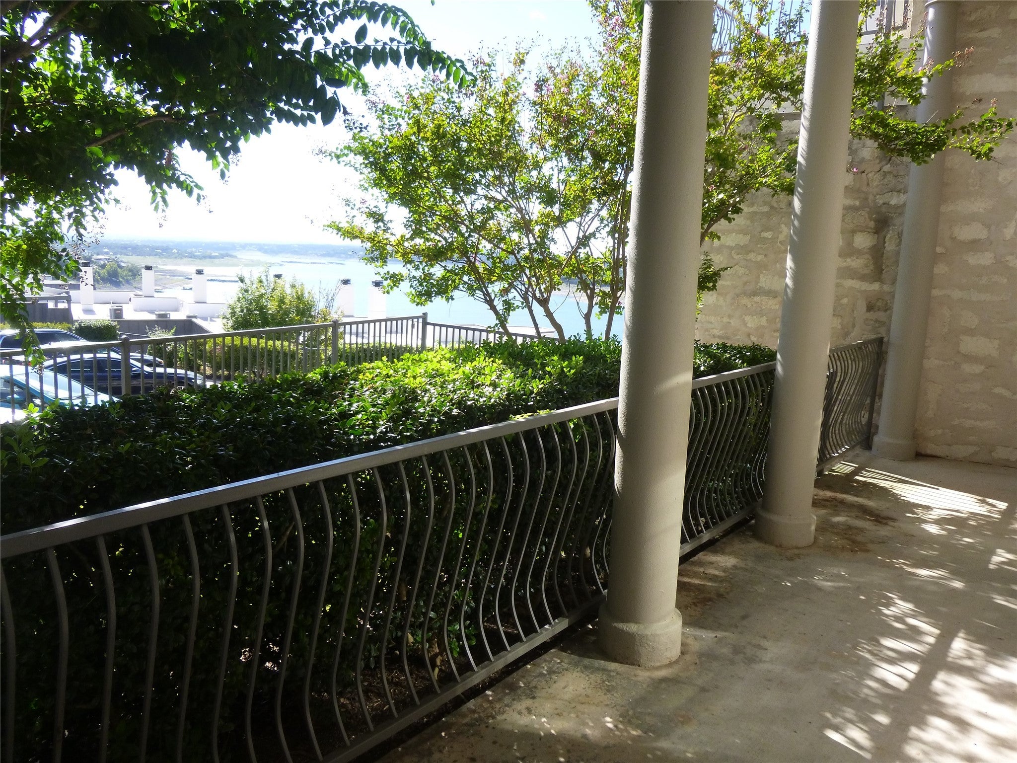 AWESOME VIEWS OF LAKE TRAVIS from this end unit on the first floor, one level - rcent paint inside, new ceiling fans, great open floorplan with 2 master suites, kitchen recently replaced stove and dishwasher, granite counters, laminate and tile floors - carpet in bedrooms, COMES WITH WASHER/DRYER & REFRIGERATOR. The Villas on Travis is a lakefront condominium complex on Lake Travis with amenities including 2 pools, 2 hot tubs, day dock on the lake, tennis courts, sport courts, and a gym. Internet, water, trash, and amenity access are all included in the monthly rental rate. Tenant responsible for electricity.