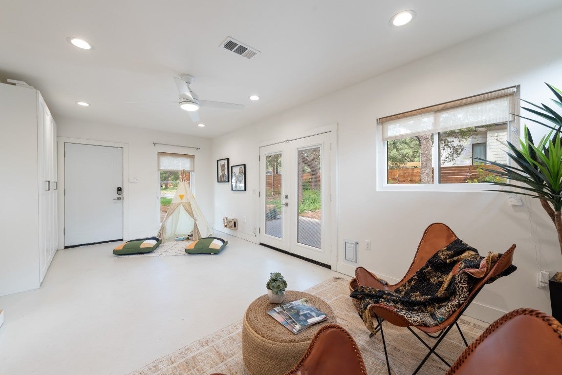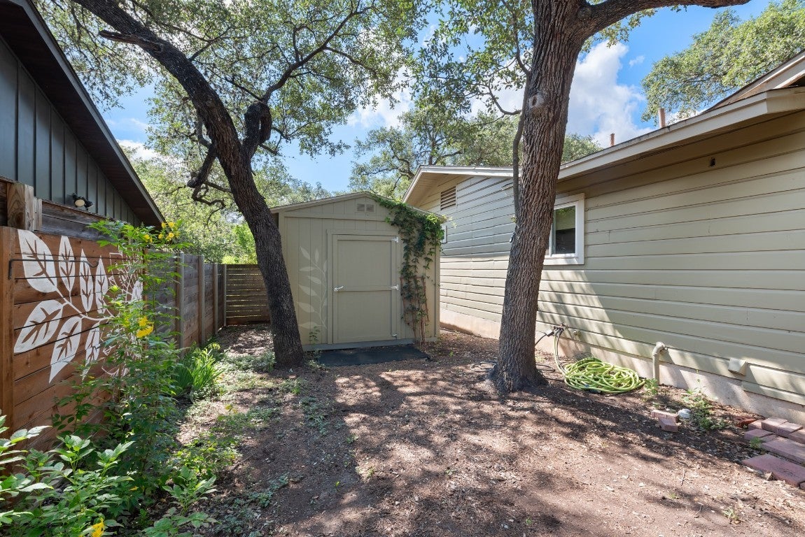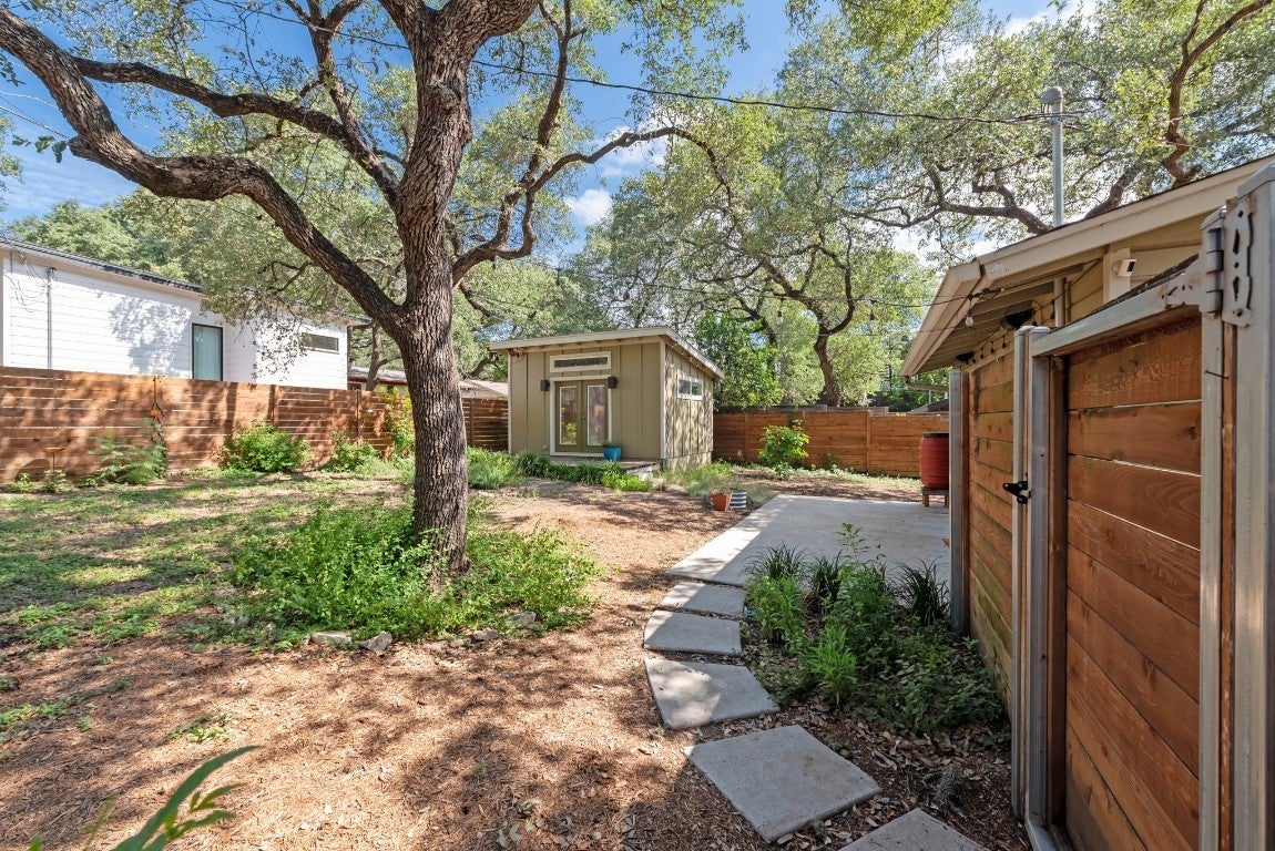 Open this Sunday 10/26, 2-4 PM! The most adorable 1-story updated and turnkey jewel box in 78704 - with awesome flexible studio in backyard tucked under shady old growth Live Oak grove. Fully remodeled inside in 2019, studio and large high quality storage shed added then. Newly staged primary suite. See attached features and lovable list for new owners. Two living rooms (three counting studio) create endless flexibility for lifestyle, hobbies, WFHome, HVAC space for multiple Yogis, etc. Even though there is an EV charger, ditch the car and stroll down the sidewalk past little-known Tom Lasseter pocket park on your way to endless South Lamar staples & hotspots. Much of the best CenTex food & drink is steps from the front door, Central Market south is 1.9 miles away, all feeding to Zilker Elementary & Austin HS. Thoughtful 2019+ renovation features new windows, timeless light oak hardwood floors, quality choices made in wood products, Eco/no VOC paint inside the whole interior, Quartz countertops & wood cabinets, stainless appliances (refrigerator with ice/water in door conveys). Just a few exterior highlights include: All central texas native plants, 200 sq ft art studio with great light, New storage shed, oversized corner lot, so peaceful and quiet. Tons of shade in the hot summers. So much wildlife--so many birds--wrens, chickadees, bluejays, mockingbirds, tufted titmice, sparrows, woodpeckers. We even had a roadrunner who spent the summer of 2023 in our backyard! This was in addition to foxes, raccoons, opposums, squirrels, lizards and many hummingbirds. Peace, quiet & tranquility, a perfect place to make art or listen to music, in the middle of a very busy city. : )
