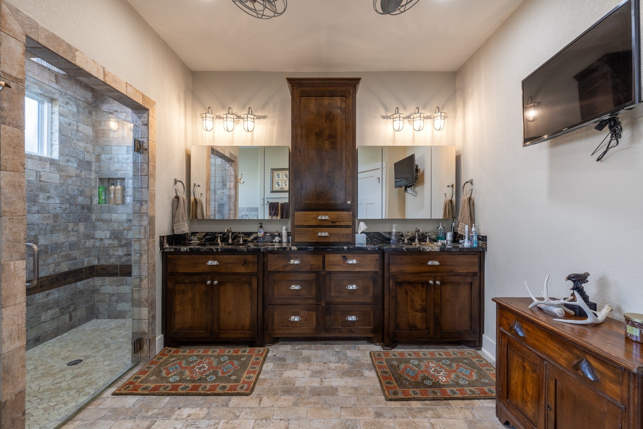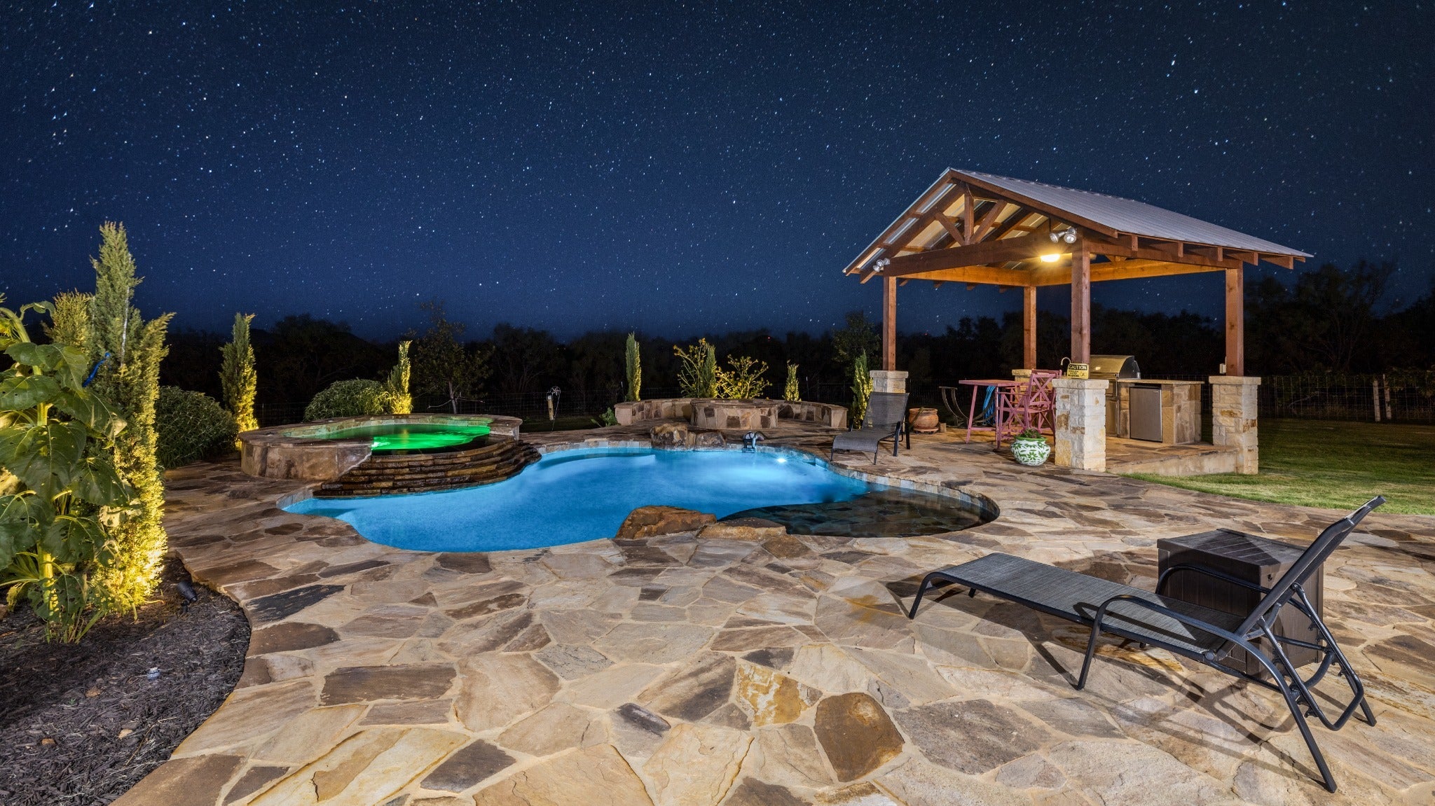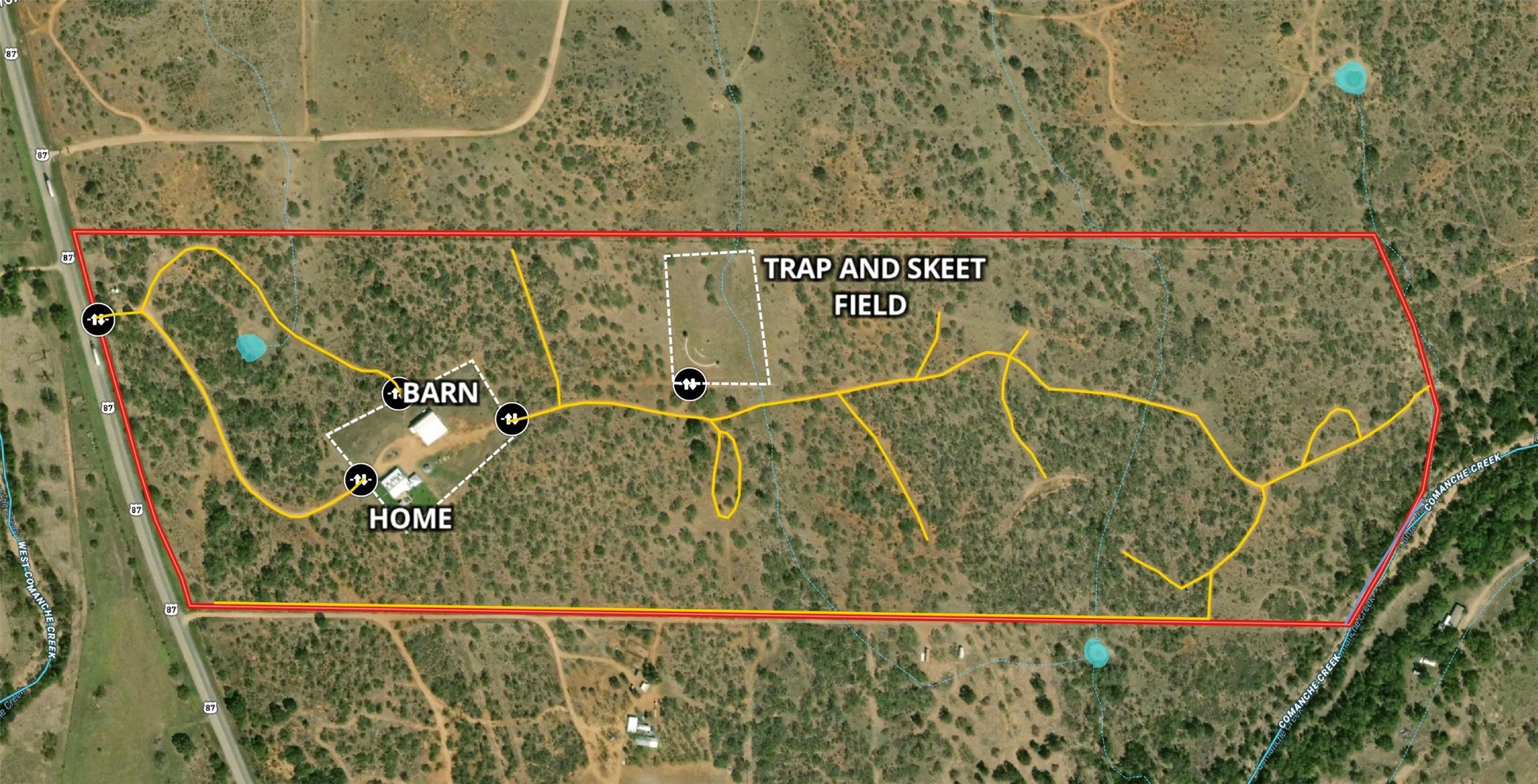 Red Fox Ridge Ranch is a rare 120 acre Hill Country offering just 0.4 miles from Mason, Texas, combining luxury improvements, recreational appeal, and exceptional convenience. One of the larger tracts this close to town, the ranch is only about 1.5 miles from the historic Mason Square, giving owners quick access to dining, shopping, and small-town charm while still enjoying the privacy and freedom of ranch living. At the center of the property is a beautifully maintained 3,000± sq. ft. 3-bedroom, 2-bath limestone home designed with timeless Hill Country style and comfort in mind. Interior features include an open-concept layout, expansive kitchen with granite countertops and stainless appliances, grand stone fireplace, custom cabinetry, repurposed timber accents, mudroom, upgraded laundry room, full-home LED lighting, and a vertical wine cooler. Outside, a Keith Zars custom pool and spa with waterfall, outdoor cooking station, and flagstone decking create an ideal setting for entertaining and relaxation. Tiff-Tuff Hybrid Bermuda grass adds a clean, low-water landscape around the home. A major highlight is the dedicated fiber optic line through Mason’s fiber service, a rare amenity outside the city limits, with up to 1000 Mbps internet available. The ranch also features a 4,000± sq. ft. insulated barn with four RV-size overhead doors, loft storage, large overhang, LED lighting, and a 1-bed, 1-bath guest suite with full kitchen, living area, utilities, and fiber internet. Additional improvements include fruit trees, grapevines, a regulation-quality skeet and trap field with Lincoln commercial machines, three ponds, and a portion of Comanche Creek along the back of the ranch. Water resources include a reported 10.5+ GPM well and a rainwater collection system with filtration and 37,600 gallons of storage. Ag exempt. Red Fox Ridge Ranch is a turnkey Mason County property with comfort, recreation, and investment appeal.