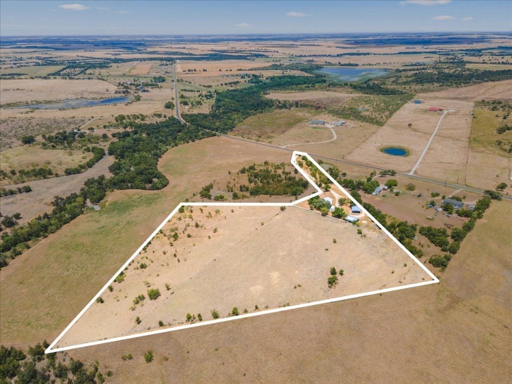 Cozy cabin on the hilltop with 2 bed 2 bath, wrap around porch with great panoramic views of the surrounding countryside, and room for livestock, or crops. House would make a great guest house for someone who wants to build their dream home, and owner could live there while building. Acreage is AG exempt and sellers will offer a lease to allow grazing for their cattle to maintain the exemption if needed. HVAC new in 2019. Septic new in 2017. Water and electric hooked up. Will need satellite for internet/tv. Great location to get out of the city and relax and enjoy the breeze and views from the wrap around porch. House was torn down to studs and rebuilt including a new roof in 2017.