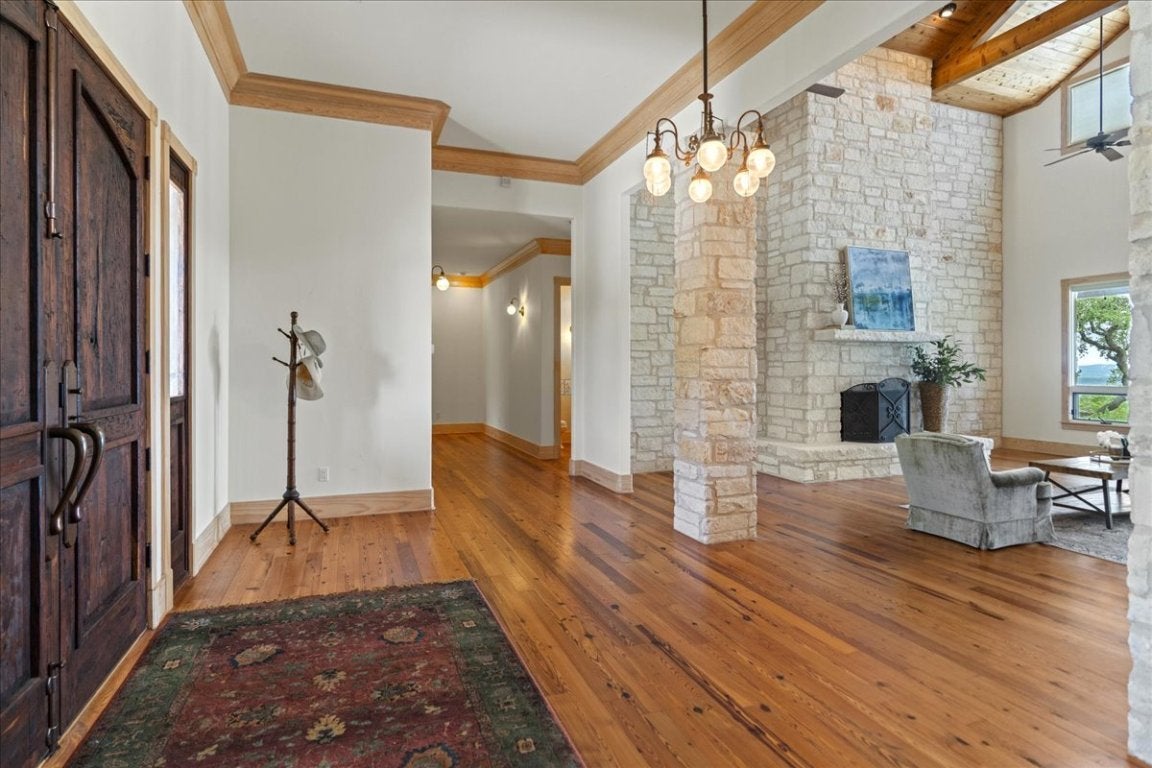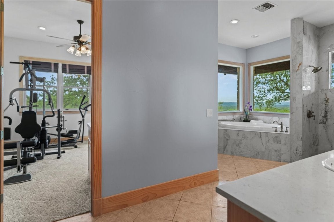 Experience expansive views of the Texas Hill Country between Wimberley and Blanco in the gated community of Wimberley Ranch Estates. This extraordinary home was strategically placed on this 14 acre tract to capture unobstructed long distance views of the Hill Country from the large back porch, pool/hot tub, Living Room/Kitchen and the Primary bedroom. When you walk in the front door you will be amazed by the beautiful Long Leaf Pine floors, tall ceilings and quality of design and construction. The Primary bedroom has access to the back porch, a massive closet, sizable bath with a walk in shower and soaking tub with outstanding views. Adjacent to the bath is an exercise room/office that has great views as well. All bedrooms have en suite bathrooms and there are two half baths. Outside there is a fire pit and fenced garden in the yard and hiking/nature trails below the house that traverse the acerage. This home was built to accomodate a crowd inside and out. With a porch that runs the length of the backside of the house, a large Great Room and plenty of parking in the circle drive you can host family and friends for special occasions they will never forget. With live music events, the Texas Wine Trail and many rivers and lakes in the area, this home is a short distance from many of the features that make the Texas Hill Country such a special place to call home. This property is located equidistance between downtown Austin and San Antonio. It is a short drive to the Square in Wimberley, Blanco, Johnson City or Fredericksburg. Whether you are looking for a weekend escape or a primary residence you will want to add 167 Wimberley Ranch Dr to your list of "must see" properties.