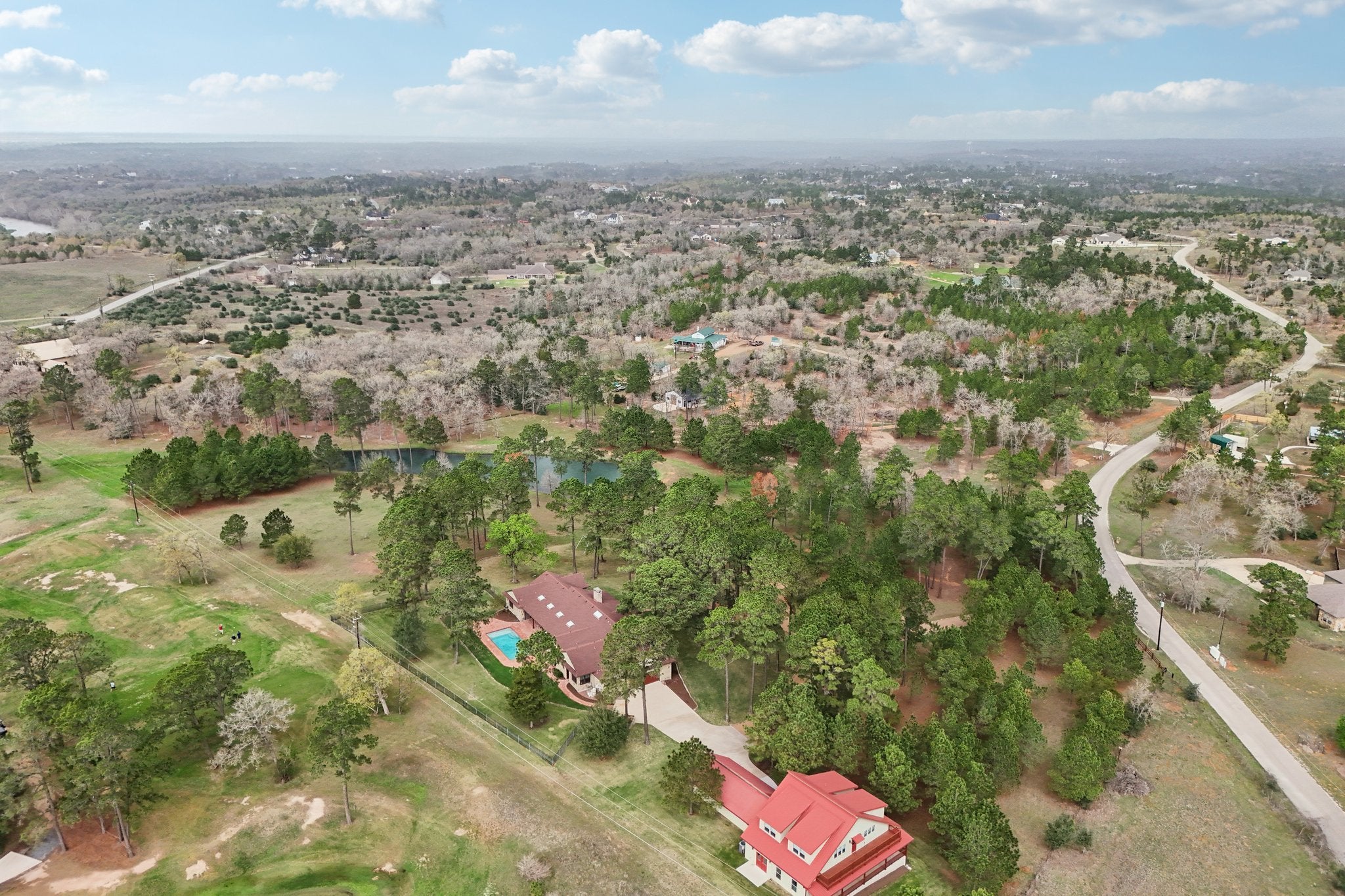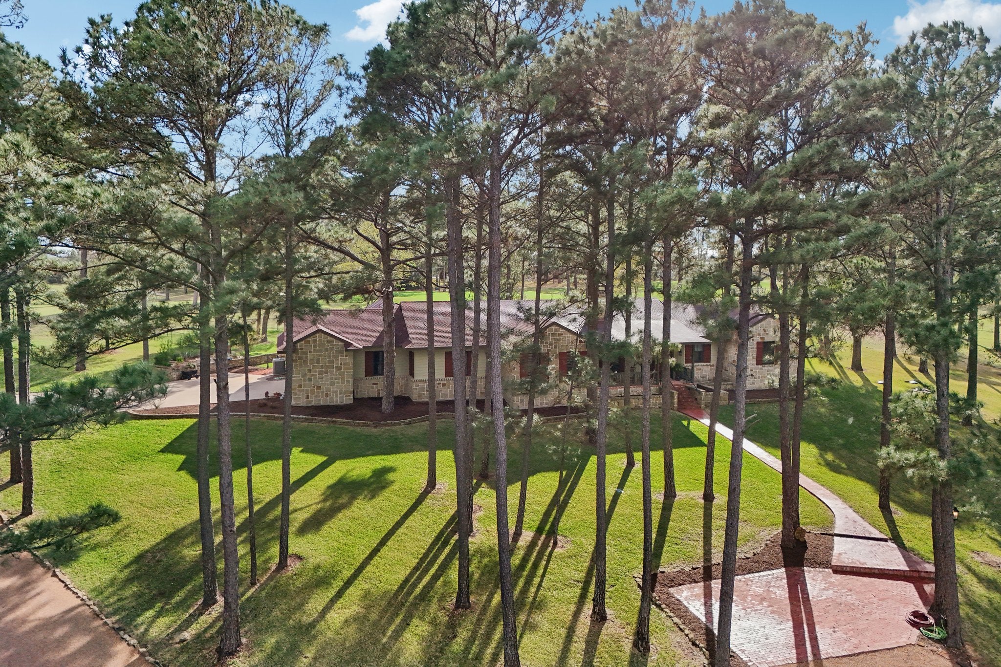 There are properties you compare, and then there are properties you can’t forget. This is one of them. Nearly 11 acres of pure Texas beauty with a sparkling pool and a 3,950 sq/ft. home positioned directly along the 12th and 13th holes of Colovista Golf Course, no HOA or MUD. A private 1-acre stocked lake (12–15 ft deep) full of bass, bluegill, tilapia, and carp, plus a full irrigation system fed by a private well. A 2,600 sq/ft. fully finished, air-conditioned barndominium offers four distinct sections: equipment storage, workshop, separate studio, and a 2-bedroom, 1-bath apartment with kitchen and living space. Surrounded by mature loblolly pines and accessed by a private drive, this serene haven sits just 10 minutes from downtown Bastrop and 30 minutes from downtown Austin. The 3,950 sq/ft. main home blends timeless craftsmanship with rustic elegance, featuring reclaimed wood, longleaf pine flooring, Austin stone and detailed trim throughout. A stone fireplace with a reclaimed wood mantel anchors the living area, opening through two sets of French doors to a covered outdoor patio overlooking the pool. The kitchen, thoughtfully remodeled in 2025, features new appliances, stunning countertops, backsplash, lighting, and a large island illuminated by a skylight above. All bathrooms remodeled in 2025. The detached four-section barn balances function and design with spaces for equipment storage, a workshop, and private studio. Upstairs, the 2-bedroom, 1-bath apartment offers a full kitchen, living area, and deck access with panoramic views that stretch for miles. And if that’s not enough, enjoy your very own 1-acre stocked lake. A dedicated well pump sustains the lake levels and supports the full irrigation system, ensuring the landscape remains vibrant. A rare retreat that is unforgettable and unmatched. Opportunities like this don’t come twice. Experience the balance of acreage, privacy, and refined luxury all just minutes from Bastrop and Austin.