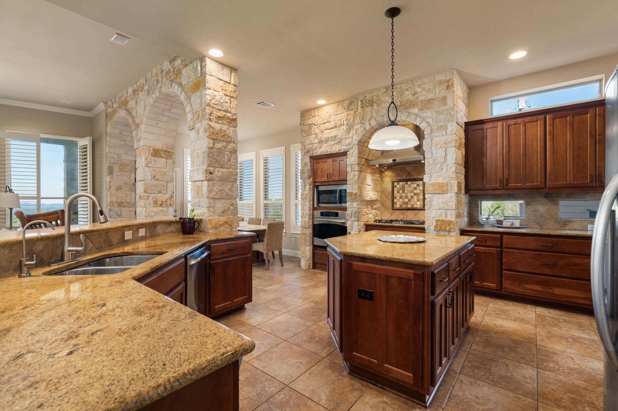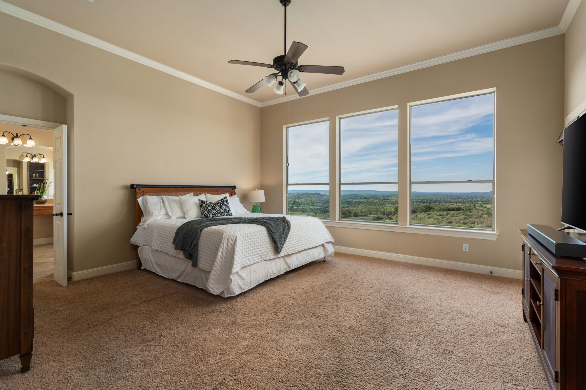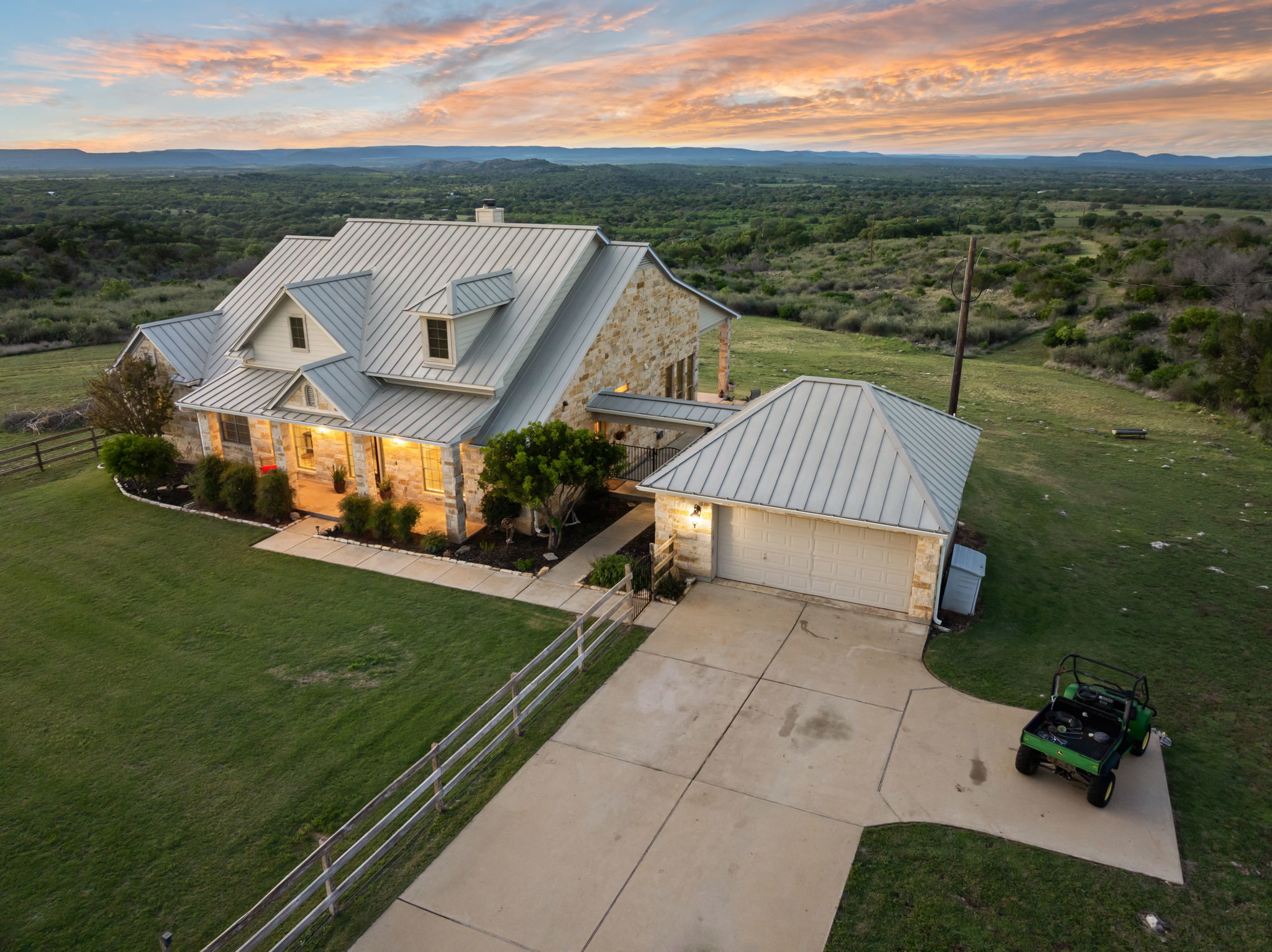 Set on 9.98 private acres in Round Mountain, this Hill Country retreat offers breathtaking panoramic views and a peaceful setting with no HOA. Built in 2008, the 2,924 sq ft home features 3 bedrooms, 2.5 baths, and a thoughtfully designed open floorplan that blends comfort and style. Inside, you’ll find rich architectural details including a stunning stone fireplace, accent stone walls, and elegant arches that add character and warmth throughout. The spacious layout flows seamlessly, with a dedicated game room offering additional space for entertaining or relaxing. Step outside and take in the wide-open skies and rolling Hill Country landscape. The front yard is fenced, providing added functionality while maintaining the expansive feel of the property. A rare opportunity to own acreage, views, and timeless design in a serene Texas setting. Buyer to verify all information.