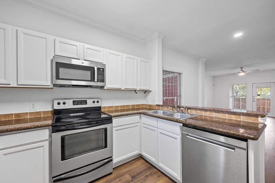 - Dryer, Dishwasher, Electric Range, Disposal, Microwave, Refrigerator, Washer
