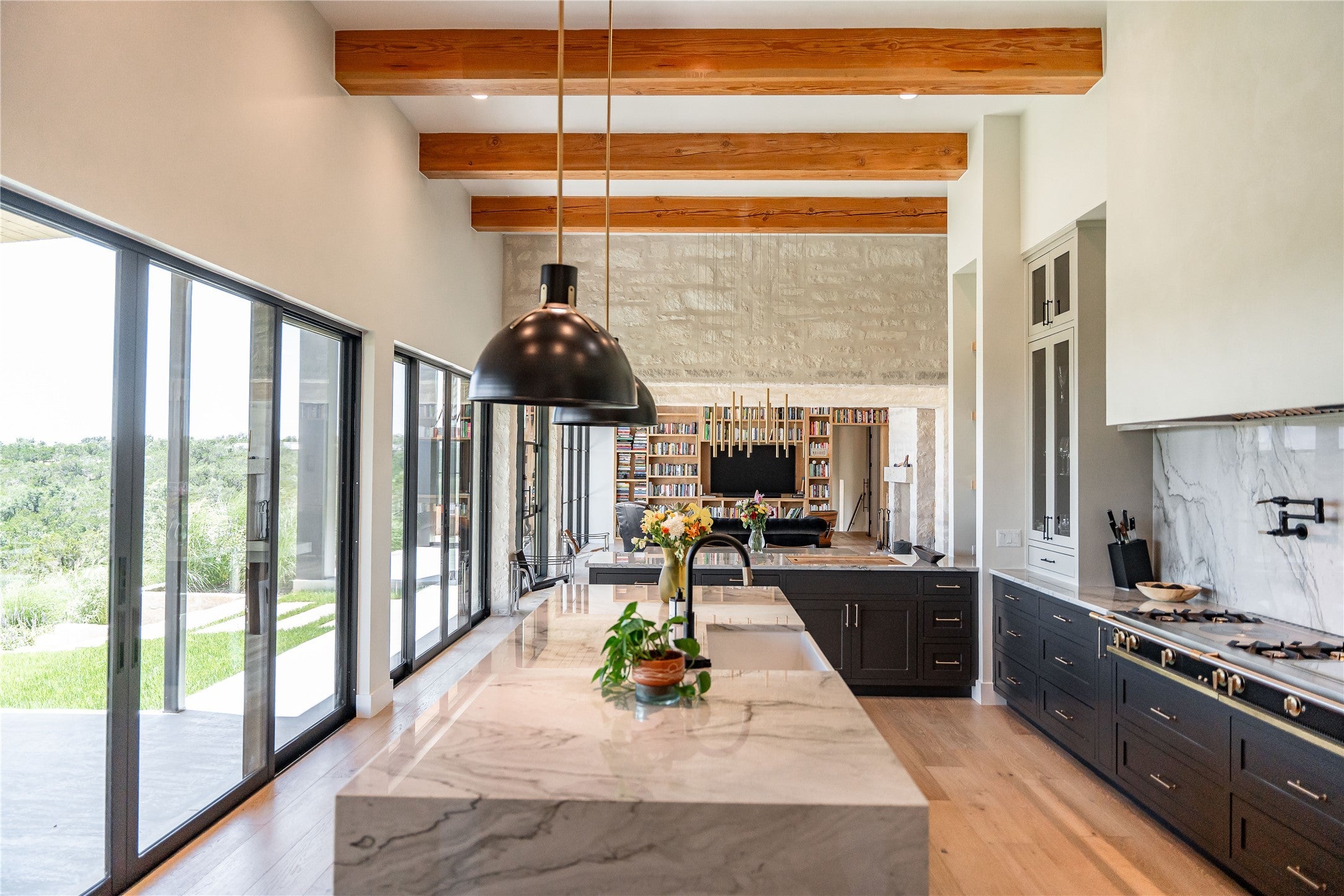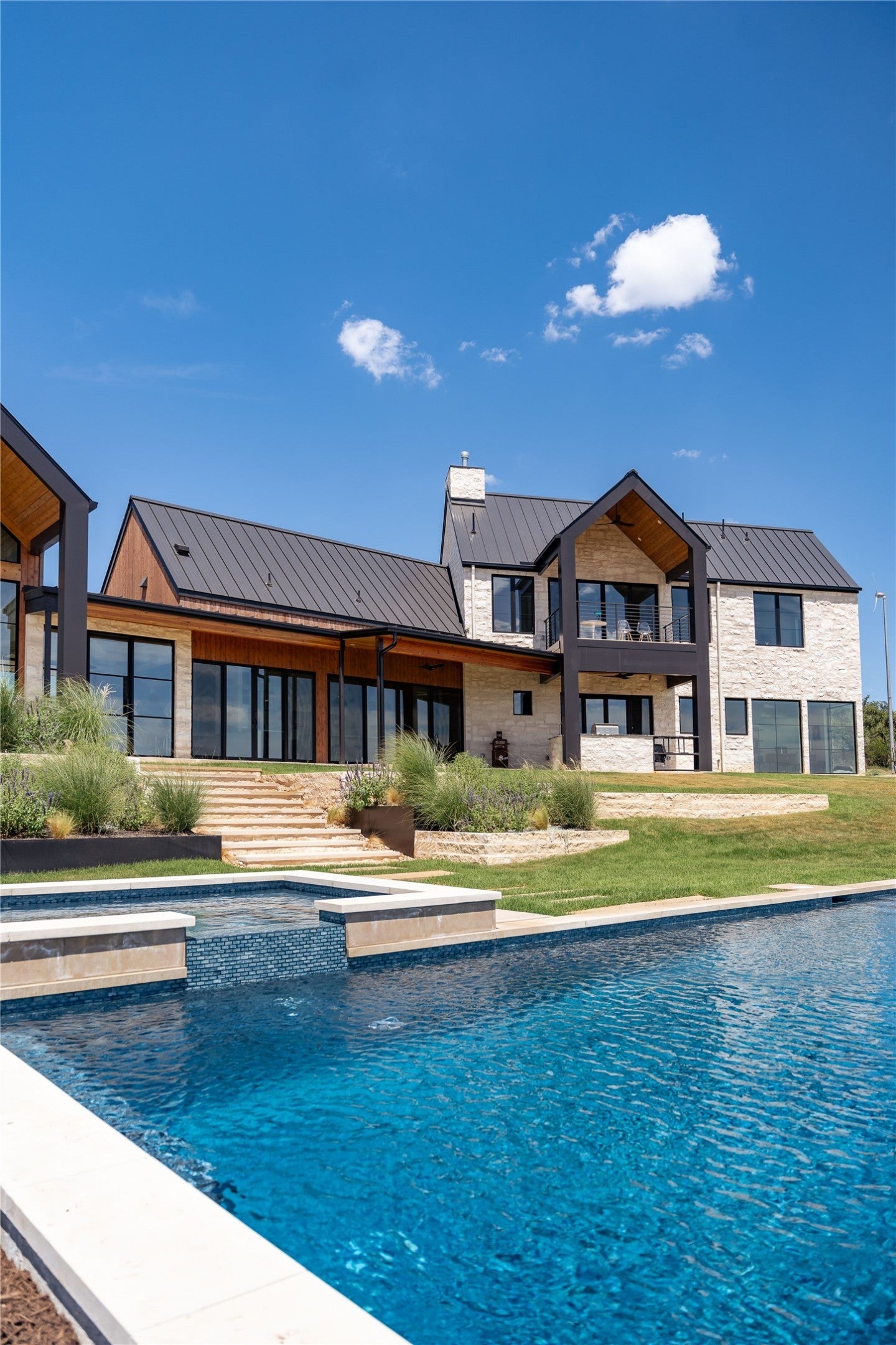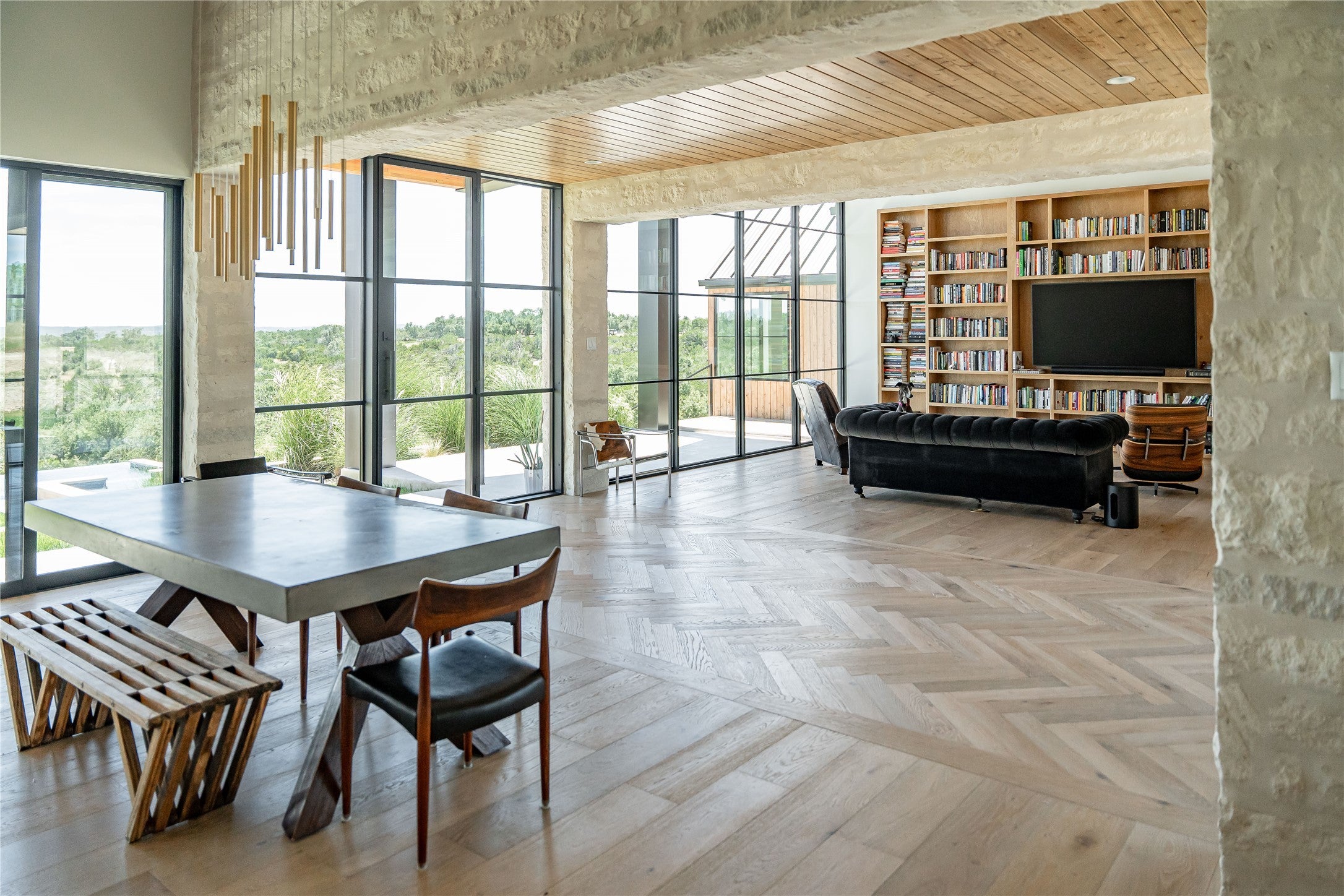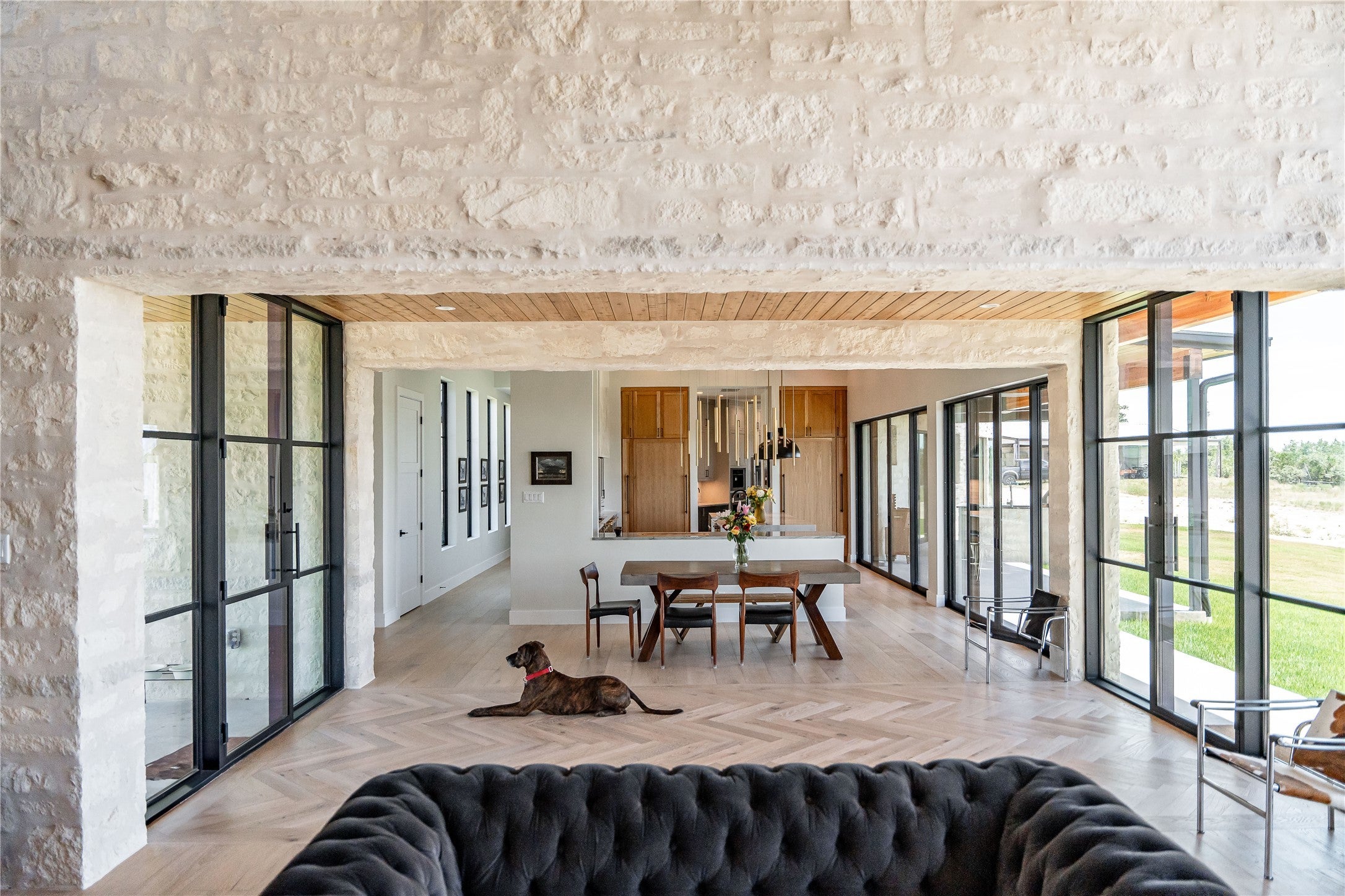 An exceptional opportunity to own 25.58 acres in the prestigious Ranches of Brushy Top, Blanco’s premier high-fenced exotic game ranch community, featuring a proposed to-be-built custom luxury home by Alkire Construction, an Austin-based design/build firm known for quality craftsmanship, energy-efficient construction, and thoughtful in-house design, creating a home that blends refined architecture with comfortable Hill Country living. This proposed two-story home offers approx. 5,069 sq. ft. with 4 bedrooms, 5.5 baths, and a 3-car garage, with each bedroom having its own full bath. The primary suite includes his-and-her walk-in closets, spa-style bath, and separate gym/flex space, while upstairs features a large great room and two bedrooms. Enter through custom iron doors into a bright foyer that flows into the gourmet kitchen with large island, walk-in pantry, abundant cabinetry, and high-end appliances, all open to spacious living areas with stone fireplaces and walls of windows. Planned features may include well water with storage tank, aerobic septic, slab foundation, custom cedar garage door, water softener, coffee station, outdoor kitchen, and covered porches ideal for enjoying peaceful Hill Country evenings. Lot 108 was one of the first lots selected in the development due to its premier hilltop location, 20+ mile panoramic views, multiple building sites, and direct lake access. The Ranches of Brushy Top offers gated entry, paved private roads, stocked lakes, nature preserve, underground utilities, exotic wildlife, and wildlife exemption for reduced taxes, all conveniently located near Blanco with easy access to Austin, Fredericksburg, and San Antonio. Adjacent Lot 109 (20.53 acres) is also available, or purchase both lots totaling 46.11 acres for $2,500,000. Information deemed reliable but not guaranteed. Buyer to verify all details.