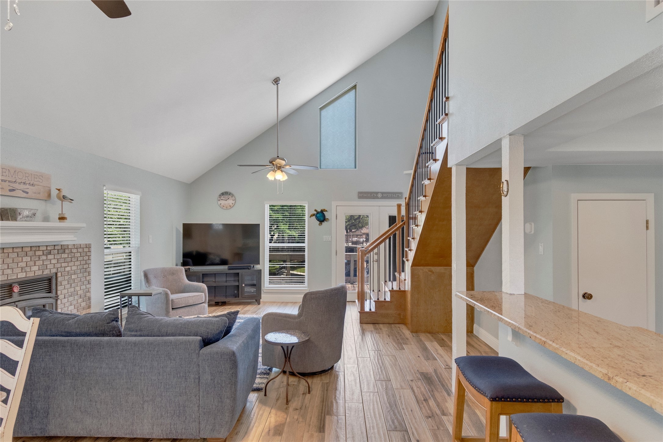 You won’t want to miss this gem! Charming waterfront lake house with multi-use ground level suite for a quiet hideaway for parents or income producing apartment. Two levels above with open concept area to enjoy many memories with family and friends. Comfortably sleeps a total of 14 with use of 2 super cute loft areas that kids will love and call dibs on. Enjoy 2 large decks with views of open water or kayak this peaceful cove that is situated approximately 200 yards to open water. Sand beach area for an additional playing with huge palm trees and kayak/canoe ramp in addition to the boat lift (for ski boat or pontoon boats) and jet ski lift. Most furnishings convey to include 2 refrigerators and 2 sets of washer and dryers, and furnishings. Freshly painted on inside and new windows. This super clean, cute lake house has it all! Additional lot to convey just down the street for additional overflow parking.