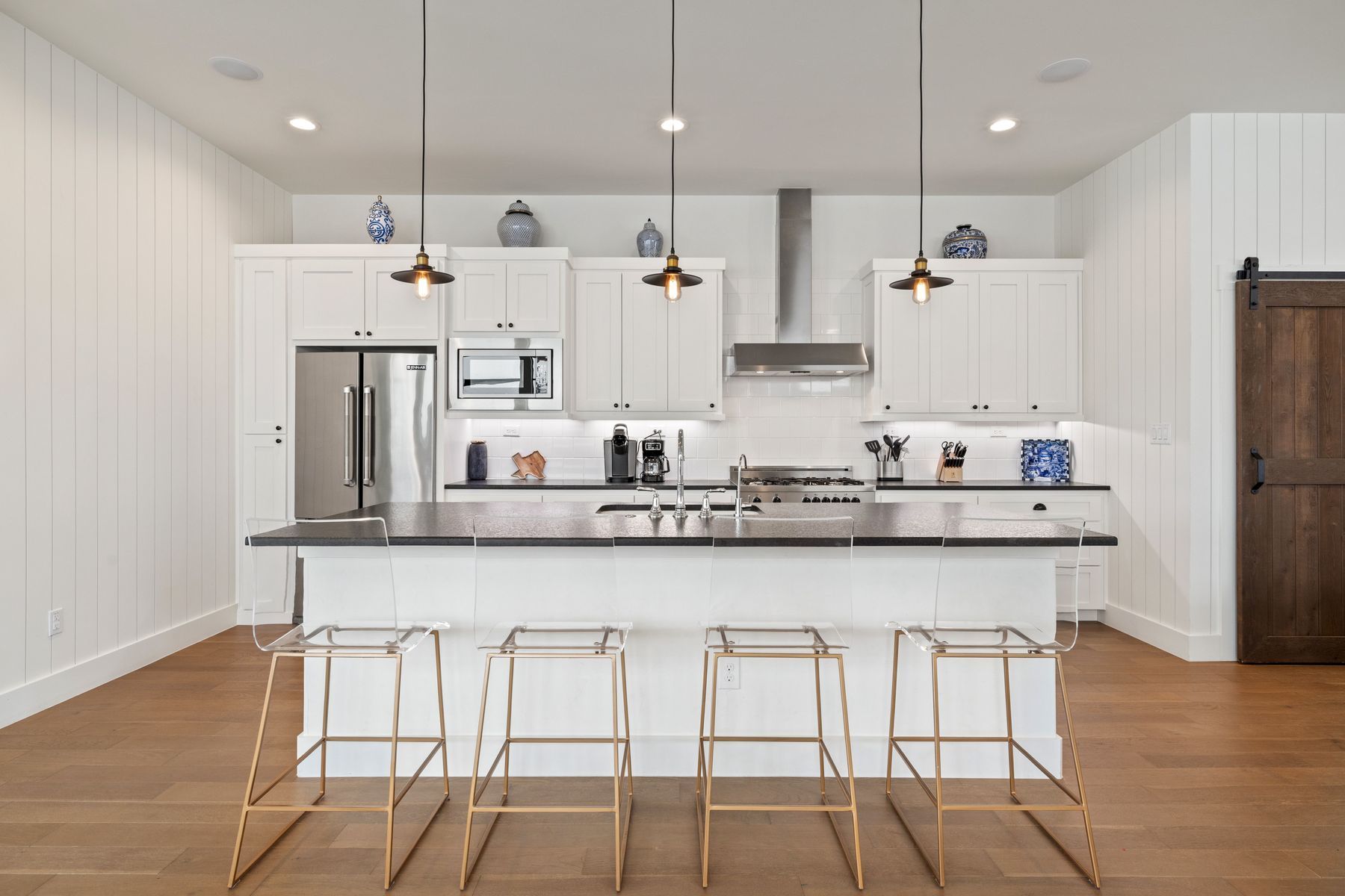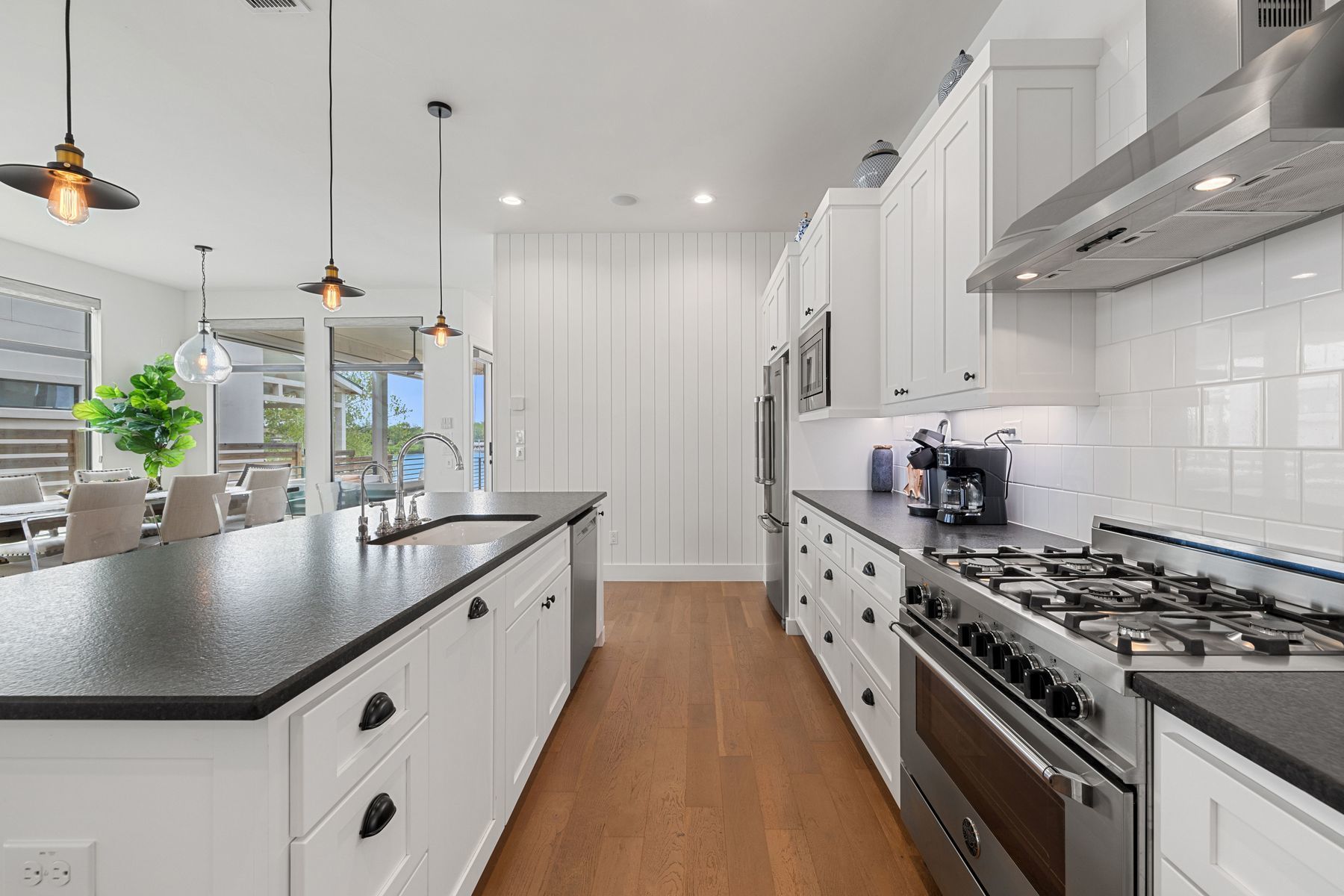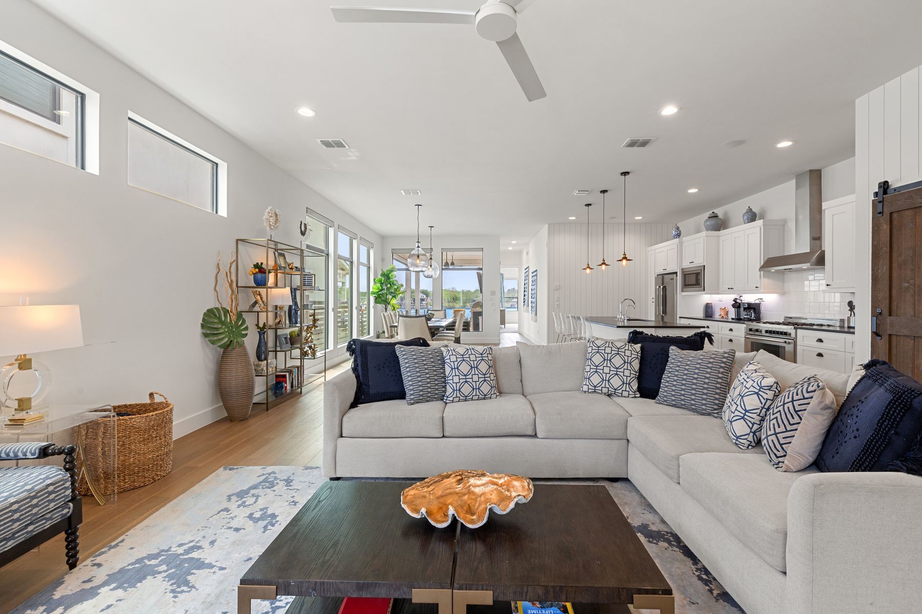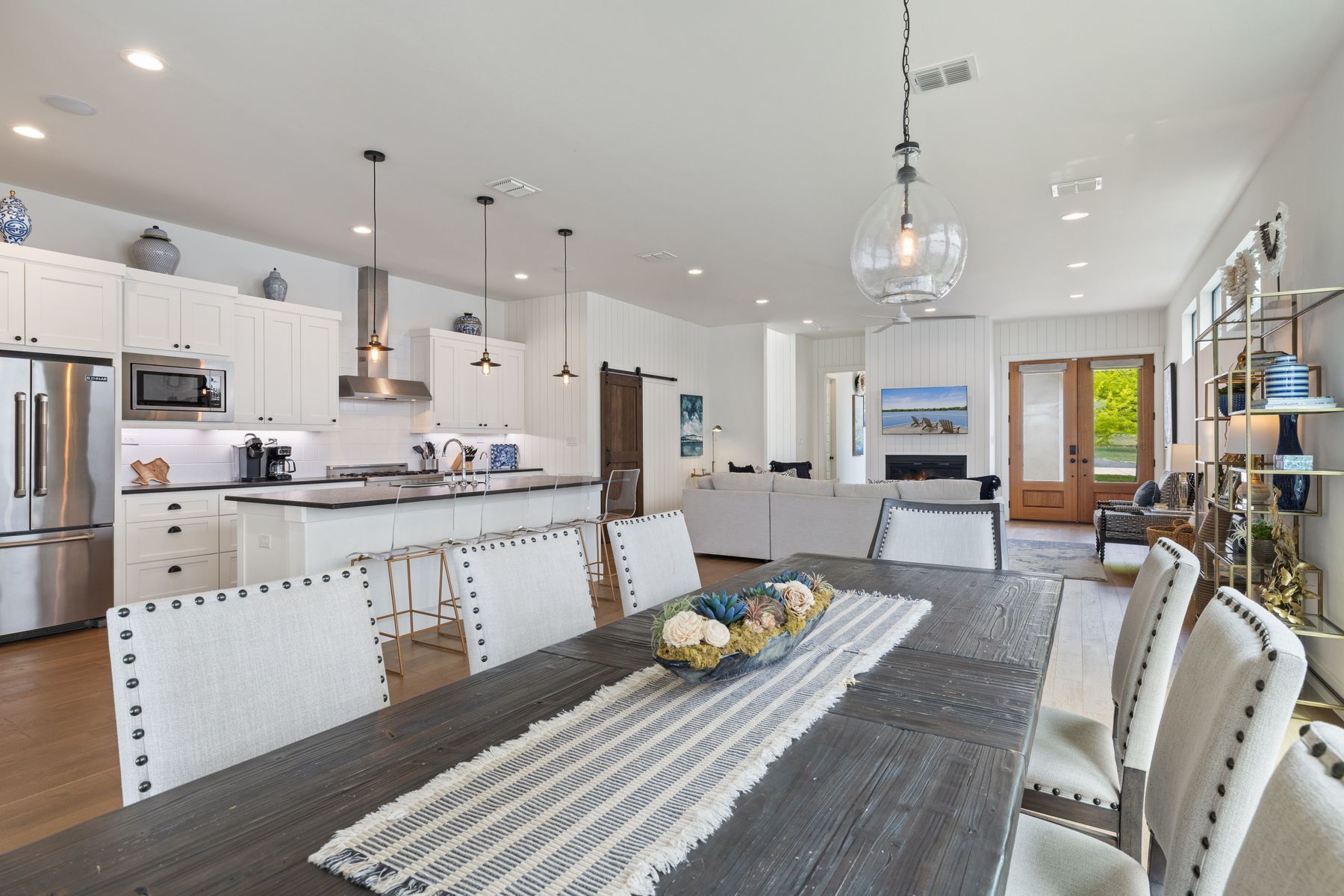Premier Lakefront Modern Farmhouse at 1324 Euel Moore Dr, Kingsland, TX This beautiful lake house was built in 2018 by premier builder Keith Wing Custom Builders, this fantastic 3,453 sq ft modern farmhouse is a stunning masterpiece on the 53' open waterfront ofLake LBJ in Kingsland, TX. Everything about this 4-bedroom, 4.5-bath property is outstanding, offering the perfect blend of luxury,location. Step inside to discover a bright, open-concept design with stylish high-end details, from sleek accents to beautiful hard woodflooring. The gourmet kitchen, an entertainer’s dream, boasts premium appliances, quartz countertops, and a large island, flowing seamlessly into the living area with panoramic lake views. The primary suite is a serene retreat with a spa-like en-suite, while three additional bedrooms, each with private baths, provide ample space for family or guests. A vibrant game room with built in bunks adds fun for all ages. Outside, the Lake LBJ lifestyle shines with a custom pool, outdoor kitchen, and expansive living space perfect for weekend retreats or short-term vacation rentals, offering a proven income model. The close proximity to Boat Town with their restaurant and fun activities adds to the vacation experience and ease of enjoyment. The boathouse, complete with an upper deck entertaining area, invites boating, fishing, or jet skiing on the lake’s open waters. Stunning east-facing views capture vibrant sunrises.