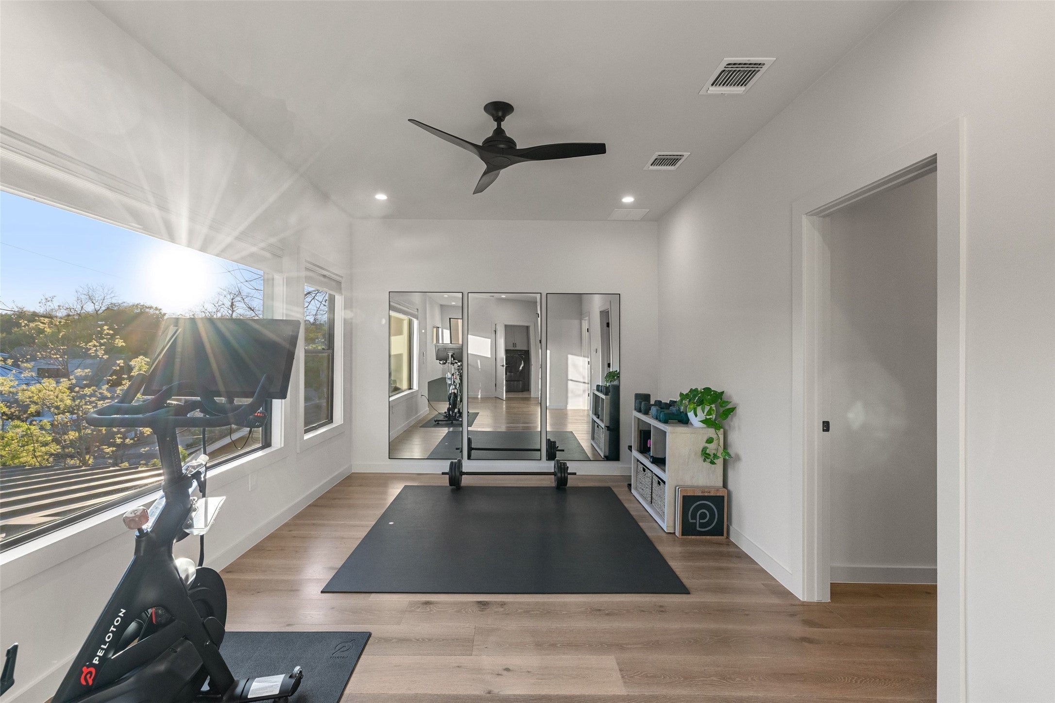 Rarely does an address in 78704 do this much work on its own. This custom-built home in Zilker sits within walking distance of Butler Pitch & Putt, Auditorium Shores, the Lady Bird Lake trail system, Uchi, Terry Black's, and the full South Lamar corridor — Alamo Drafthouse, coffee shops, restaurants, all of it. Downtown is minutes out. For those new to Austin, this is the kind of home base that lets you understand the city on foot — and when guests come to town, they get the real Austin experience without spending half their visit in a car. Inside, the home has a quality you feel immediately. Wide-plank hardwood floors, curated lighting, and a floating staircase give the main level a quiet confidence — nothing overstated, everything considered. The kitchen, dining, and living areas open into one another naturally, as comfortable for a quiet evening as they are for a full house. Viking appliances, custom cabinetry. The floor plan reflects the same intention. Four bedrooms, three and a half baths, primary suite on the main level. The primary bath is built around the details that matter — dual vanity, a walk-in shower, and a standalone deep soaking tub that earns its square footage. The top-floor retreat — full bath, generous living, downtown views — adapts to whatever you need it to be. Out back, a pool and artificial turf create a private outdoor environment that runs as quietly as the rest of the home. A motorized steel gate at the front secures the driveway entry, giving the property a level of privacy and security that's rare this close to the South Lamar corridor. Lutron lighting, automated shades, Ring security, Rain Bird irrigation, and Pentair pool controls are already in place. The house takes care of itself. Some homes in this zip code have the location. Some have the build. This one doesn't ask you to choose.