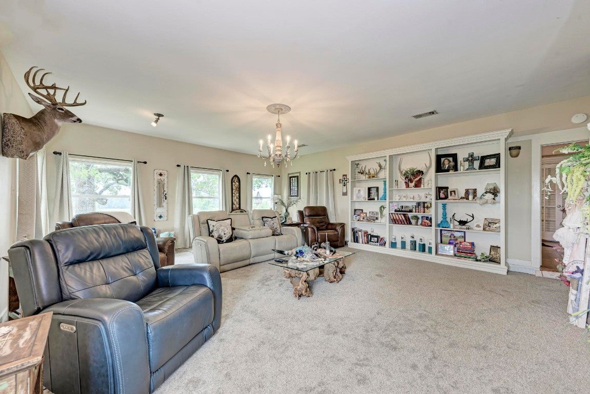 This 24-acre ranchette, located in Bertram, Texas offers an exciting one-of-a-kind opportunity to own a portion of an exotic game ranch with access to a 8.5-acre community lake stocked with bass, catfish, and perch. There will be a common area with a pavilion for fishing and recreation. Part of a larger 400-acre ranch stocked with Axis, Fallow deer, Aoudad, Pere David Deer, and Whitetail. It's conveniently situated, 8 miles from Bertram, 8 miles from Briggs, 14 miles from Burnet, 16 miles from Liberty Hill, 23 miles from Lampasas, 27 miles from Leander, 31 miles from Georgetown, and 53 miles from Austin. The spacious house covers 3711 sq ft, boasting an oversized garage, 4 rooms, and 4 baths. Ideal for relaxed living, it offers comfort and functionality. The fenced-in yard, 2 barns, and small workshop complement the property, catering to various needs and hobbies. With its practical features and ample space, this house provides a cozy and versatile living environment.