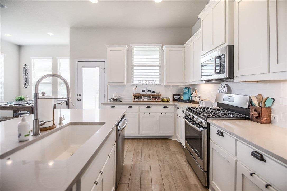 You’ll note the modern finishes as you step through the front door, including shaker style cabinets with soft-close drawers, subway tile backsplash, Quartzite countertops, and LED under cabinet lighting. Upgraded wood-like tile flows throughout the entry, family, kitchen & breakfast areas. An abundance of windows for natural light. Primary bath has shower tile to the ceiling & plenty of extra storage. Water Softener Loop and dual stage water drinking system. Landlord will provide refrigerator, washer & dryer. Highly acclaimed Pflugerville ISD Schools. Easy access to SH130/ SH45 and numerous shopping, dining and entertainment options! Applications online at Go4Rent.com.