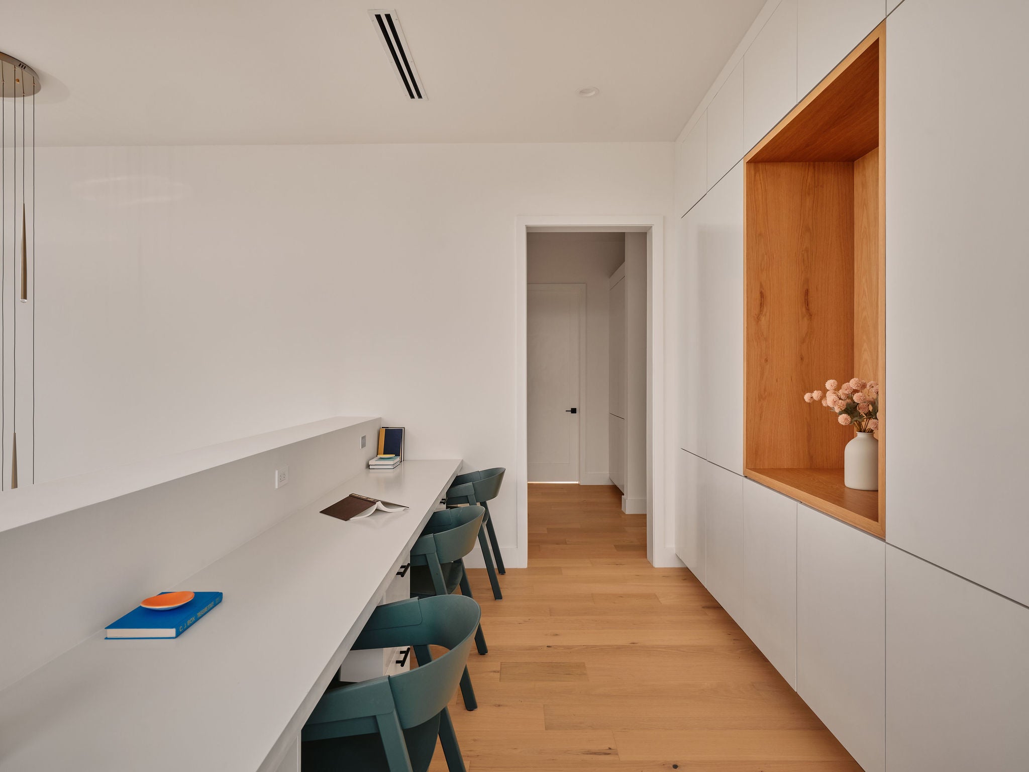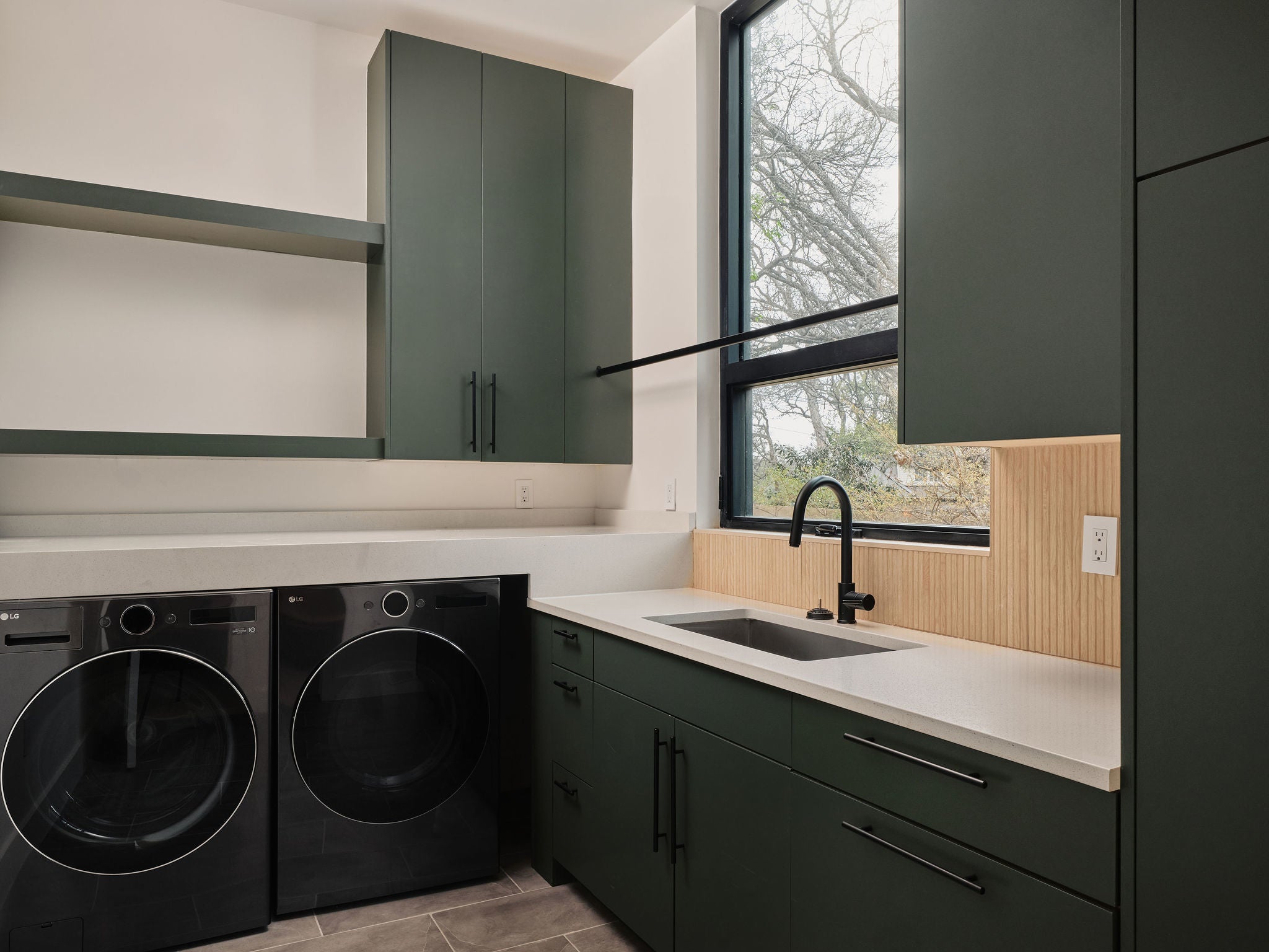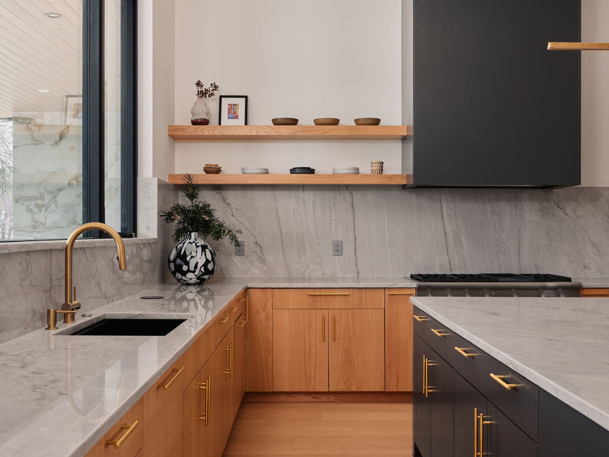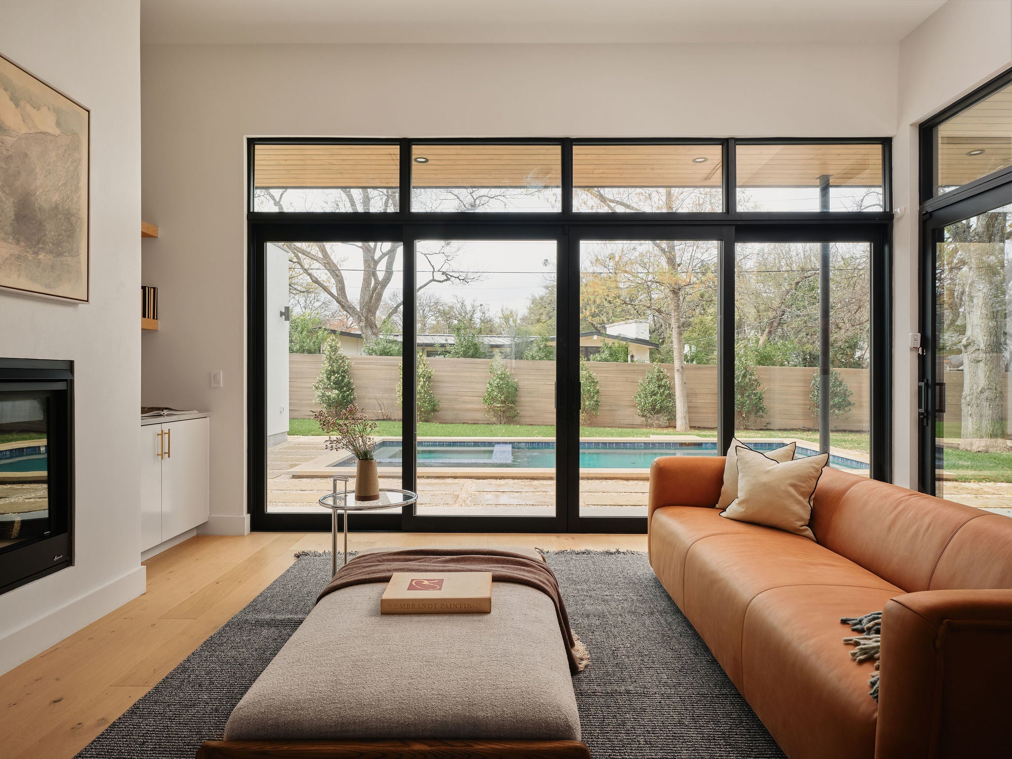 Completed in 2024, this residence offers a rare blend of modern transitional design and walkability within Westwood—one of Westlake’s most coveted enclaves. Spanning 4,662 square feet on 0.36 acres, the home balances sophisticated entertaining with thoughtfully designed private retreats. Clean lines, warm white oak, and curated materiality define the interiors. The main level unfolds with high ceilings and natural light, anchored by a chef’s kitchen featuring Thermador Professional appliances, bespoke cabinetry, an oversized island, and a butler’s pantry designed to maximize storage for every lifestyle. A custom wine cellar, formal dining, and statement fireplace add rhythm and warmth to this open floorplan. Floor-to-ceiling sliders open to an inviting covered terrace overlooking the pool and spa, where an outdoor kitchen allows for effortless gatherings. Privately positioned on the main level, the primary suite offers pool views and a spa-caliber bath with soaking tub and wet room design—a serene retreat layered in timeless finishes. A secondary bedroom suite and a soaring-ceiling study with custom built-ins complete the main level. Upstairs, three bedrooms with ensuite baths, a secondary living room with terrace access, and a built-in workspace provide flexibility with custom trim work. As you ascend to the top level deck, you're greeted by a sweeping view of the Downtown skyline, punctuated by the Capitol—a rare vantage point that captures the pulse of the city. The grounds feature a pool, spa, a versatile detached casita with a full bathroom, and a two-car garage. The recently installed security system is state of the art and conveys with the home—all within lauded Eanes ISD, walkable to Swedish Hill and the Bee Caves Road corridor, minutes from Downtown Austin.