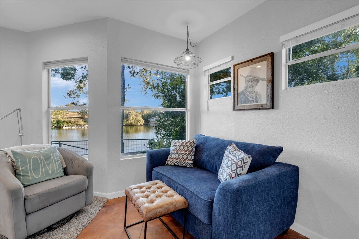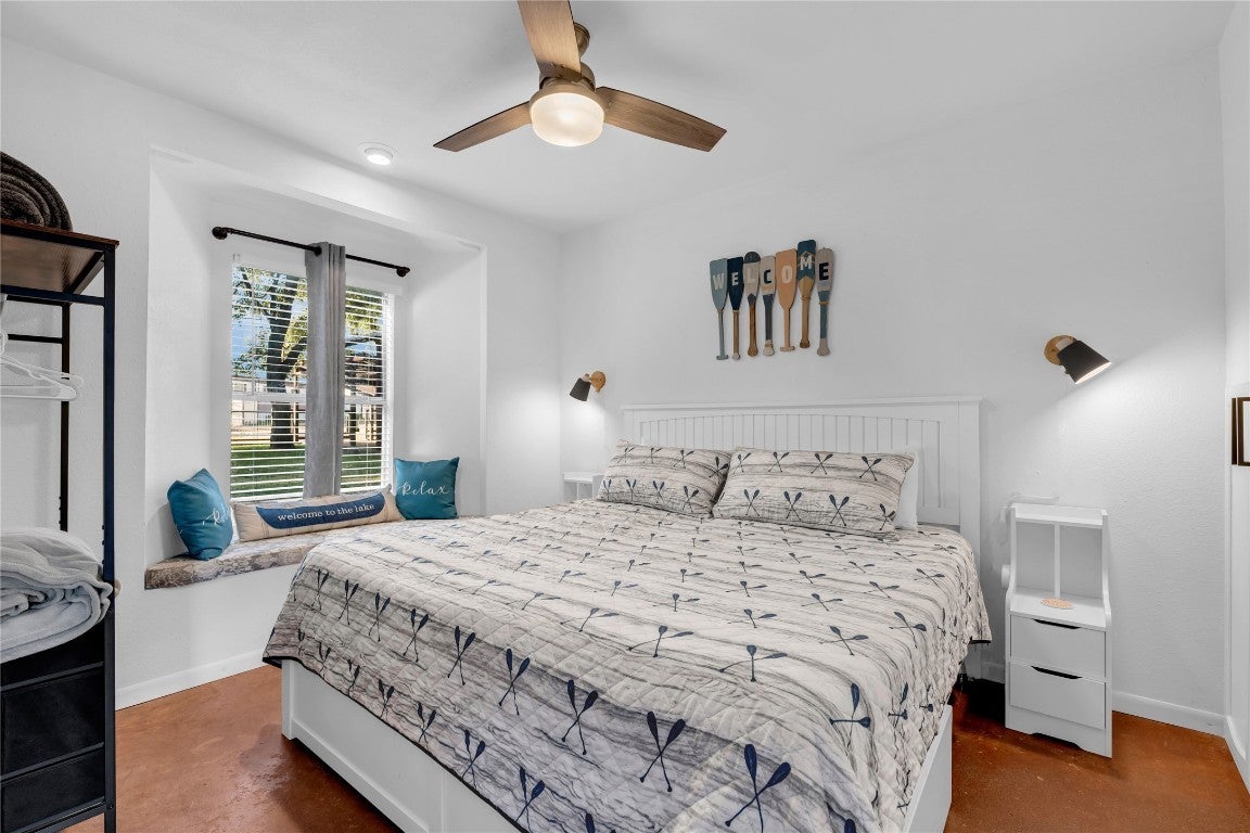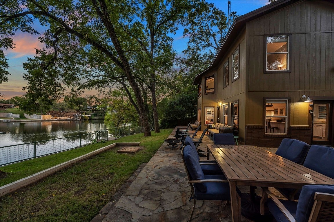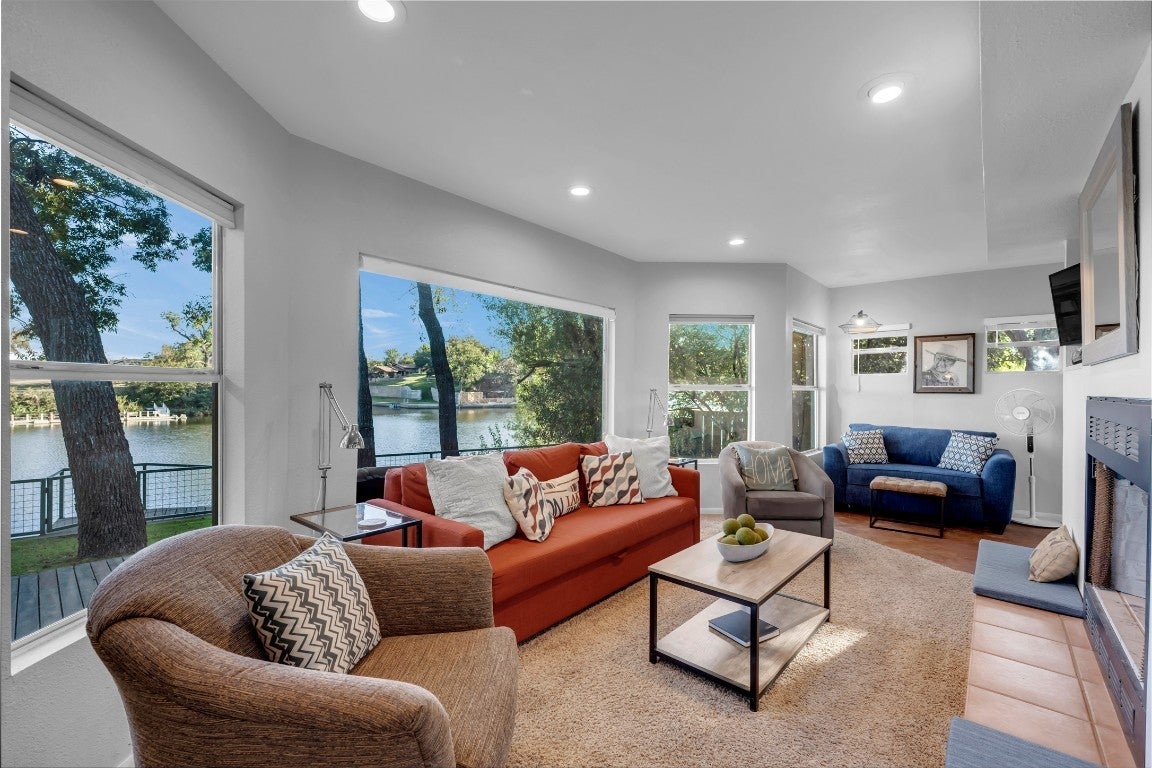*SHORT TERM RENTAL FRIENDLY* Enjoy summer days on 85 ft of Lake LBJ waterfront, swim in the deep cool water, play washers in the washer pit, or lounge around under the trees on the patio!! The natural fish reserve is located across the lake so never worry about future development deterring the peaceful views of nature.. What a bonus to this incredible property!! Located close to many water activities - Perissos Vineyard and Winery, and lots of local Hill country attractions. The home comes fully furnished and can be used as a short-term rental for extra income.. Yes, you read that right! Bring your fishing pole and lake toys, and get ready to enjoy summer on the lake! The fully gated home includes a detached covered carport that provides plenty of space for your vehicles. Sprawling Pecan trees throughout the oversized front yard give you a warm welcome as you make your way to the home. The living room is cozy and features a serene wood-burning fireplace and picture windows overlooking the lake. The kitchen has a long bar and a vast amount of cabinet/countertop space, perfect for entertaining. The first floor features a bedroom and a full bathroom. Head up the Helical staircase where you will find another great sized bedroom and direct access to an open-aired balcony with panoramic views of the graceful lake. The upstairs bathroom features a free-standing deep soaking tub and an immense amount of natural light. Furthermore, the 2nd floor includes a flex space that can be converted into whatever your heart desires. This is the ULTIMATE home to experience the lake life!