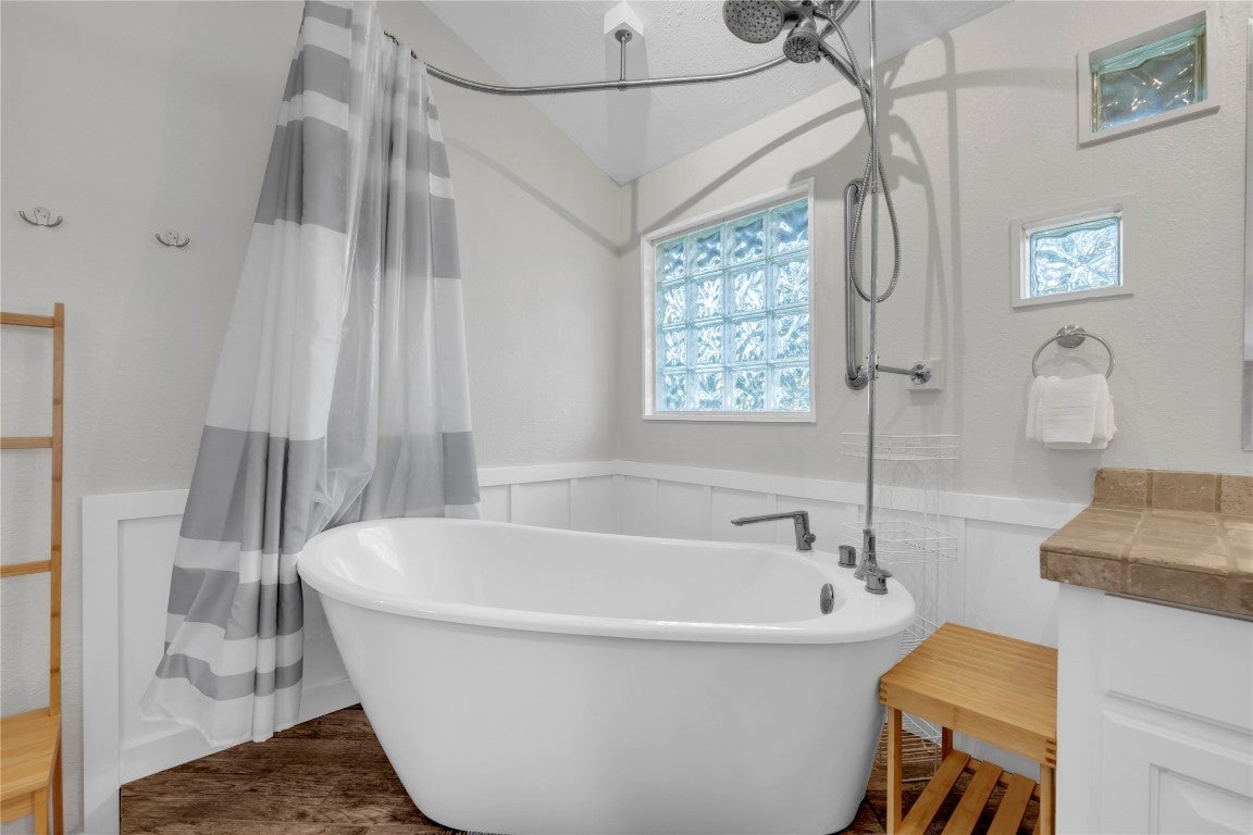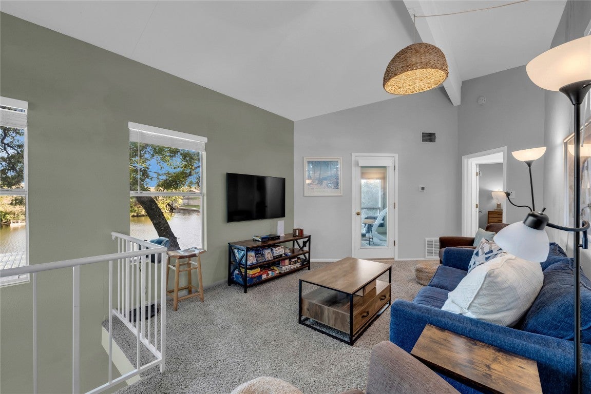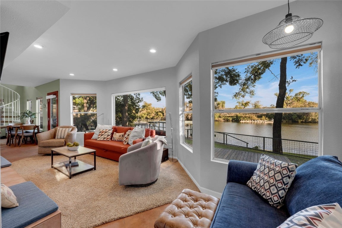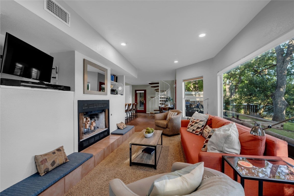 *SHORT TERM RENTAL FRIENDLY* Enjoy summer days on 85 ft of Lake LBJ waterfront, swim in the deep cool water, play washers in the washer pit, or lounge around under the trees on the patio!! The natural fish reserve is located across the lake so never worry about future development deterring the peaceful views of nature.. What a bonus to this incredible property!! Located close to many water activities - Perissos Vineyard and Winery, and lots of local Hill country attractions. The home comes fully furnished and can be used as a short-term rental for extra income.. Yes, you read that right! Bring your fishing pole and lake toys, and get ready to enjoy summer on the lake! The fully gated home includes a detached covered carport that provides plenty of space for your vehicles. Sprawling Pecan trees throughout the oversized front yard give you a warm welcome as you make your way to the home. The living room is cozy and features a serene wood-burning fireplace and picture windows overlooking the lake. The kitchen has a long bar and a vast amount of cabinet/countertop space, perfect for entertaining. The first floor features a bedroom and a full bathroom. Head up the Helical staircase where you will find another great sized bedroom and direct access to an open-aired balcony with panoramic views of the graceful lake. The upstairs bathroom features a free-standing deep soaking tub and an immense amount of natural light. Furthermore, the 2nd floor includes a flex space that can be converted into whatever your heart desires. This is the ULTIMATE home to experience the lake life!