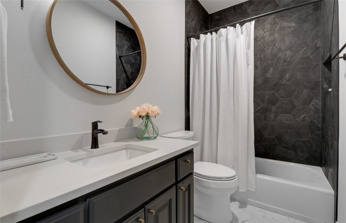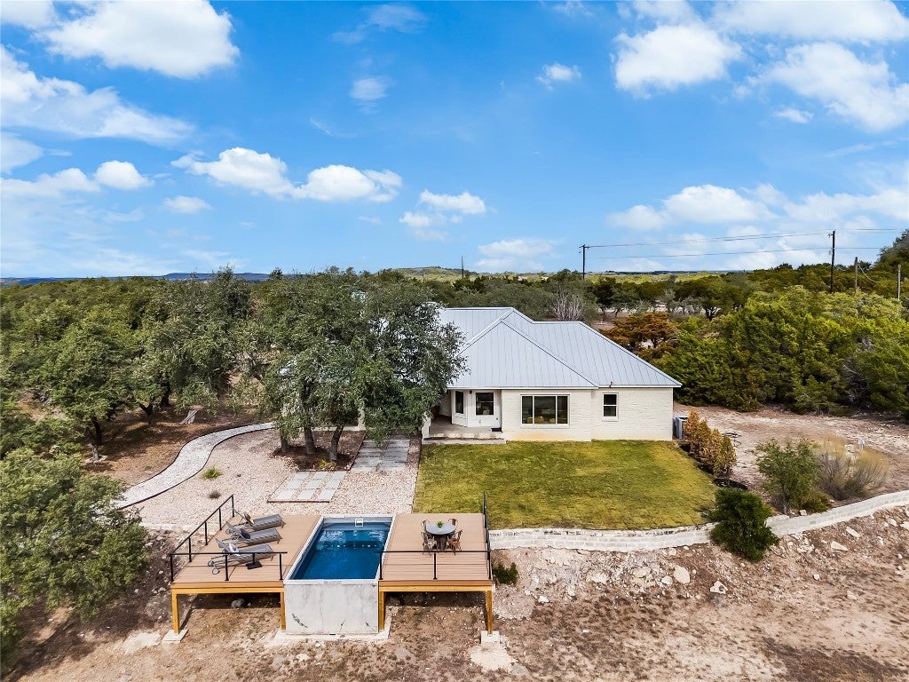 Welcome to your private Hill Country retreat. Thoughtfully updated and truly move-in ready, this beautifully refreshed single-level home features brand-new oak hardwood floors, a newly updated kitchen, fresh interior paint, and renovated bathrooms throughout. Situated at 1100 Norwood Road in Dripping Springs, the main residence offers 2,734 square feet of thoughtfully designed living space with four bedrooms plus a dedicated office, all set on an expansive 6.61-acre lot in the heart of the Texas Hill Country—where privacy and open space take center stage. The open floor plan effortlessly connects the family and living rooms and is anchored by a renovated, spacious eat-in kitchen showcasing stylish new countertops, trendy backsplash, updated hardware, and generous pantry storage—ideal for both everyday living and entertaining. A cozy fireplace adds warmth and character to the main living area, while iron entry doors create a striking architectural statement. The primary suite is a true retreat, featuring two walk-in closets and a newly renovated spa-like bath with a pedestal soaking tub and walk-in shower—designed for relaxation and comfort. Outdoor living is where this property truly shines. Enjoy a private pool with newly built decking, perfect for entertaining, unwinding, or taking in the serene Hill Country surroundings. The expansive acreage offers endless possibilities for recreation, gardening, animals, or simply enjoying wide-open Texas views. A barn/workshop adds valuable flexibility for hobbies, storage, or creative pursuits, enhancing both lifestyle and investment potential. An adjacent 3.57-acre parcel is also available for purchase, featuring three modern one-bedroom, one-bath container homes, with a separate septic system, offering exceptional flexibility for guest accommodations, rental income, or multi-generational living.