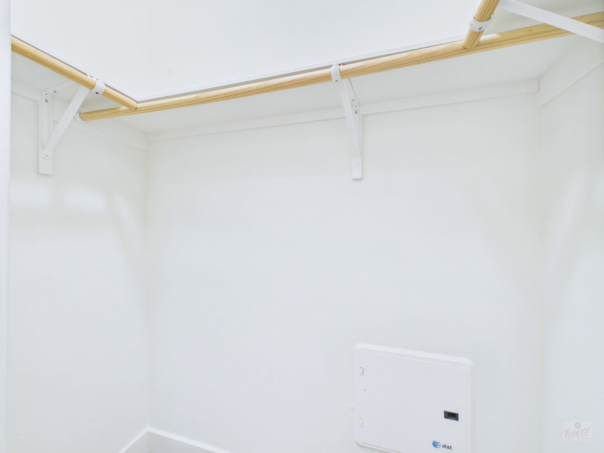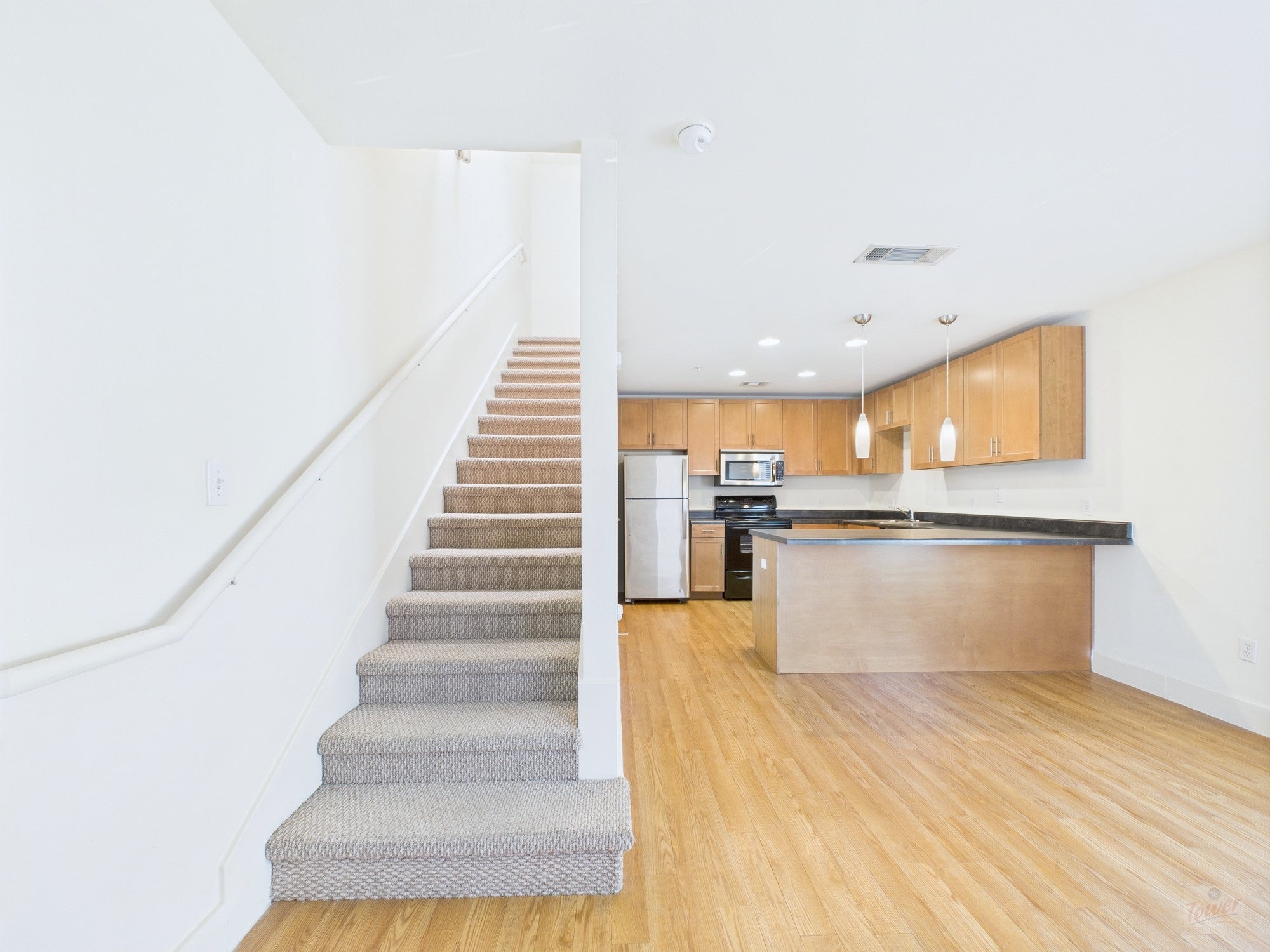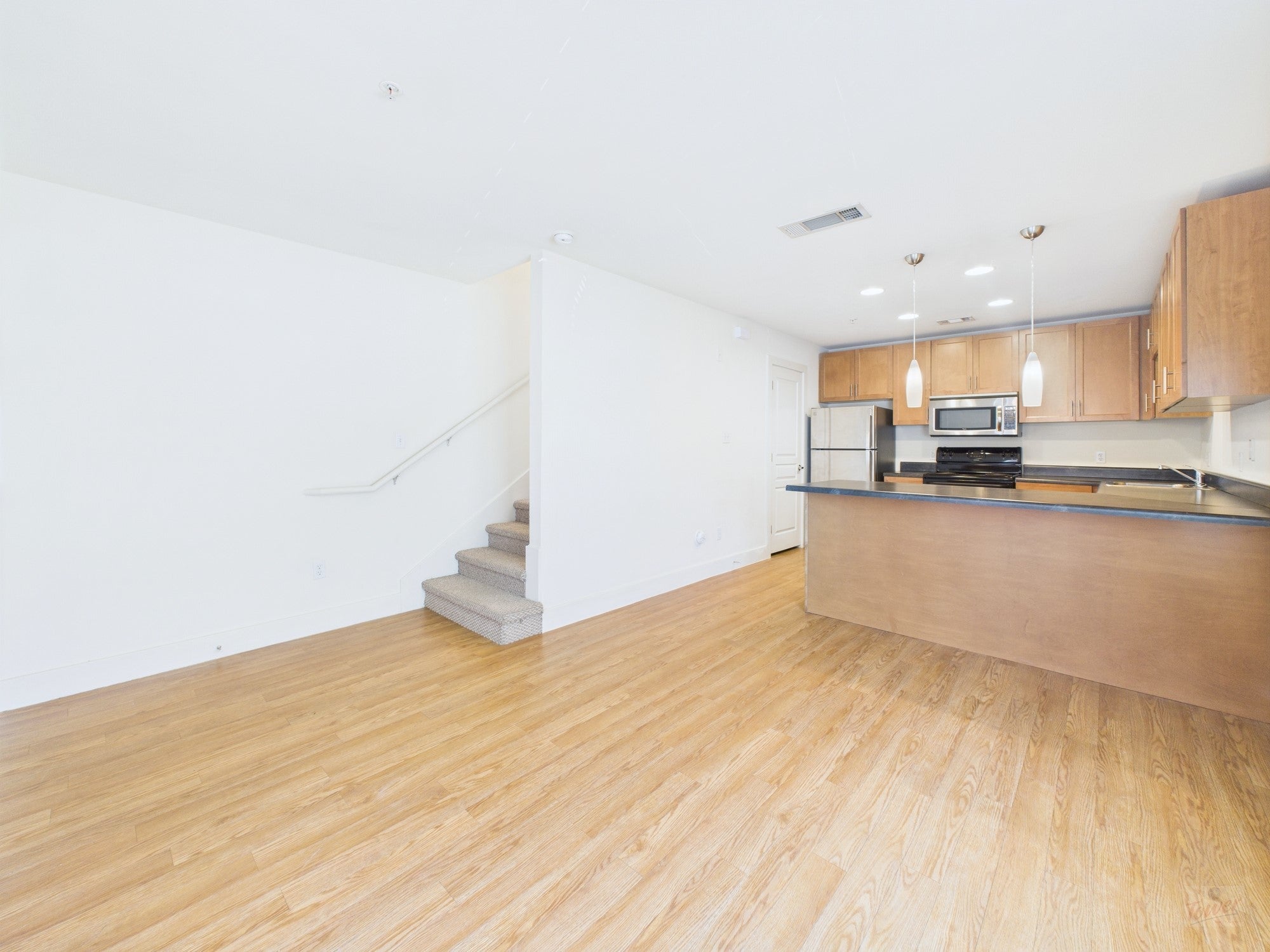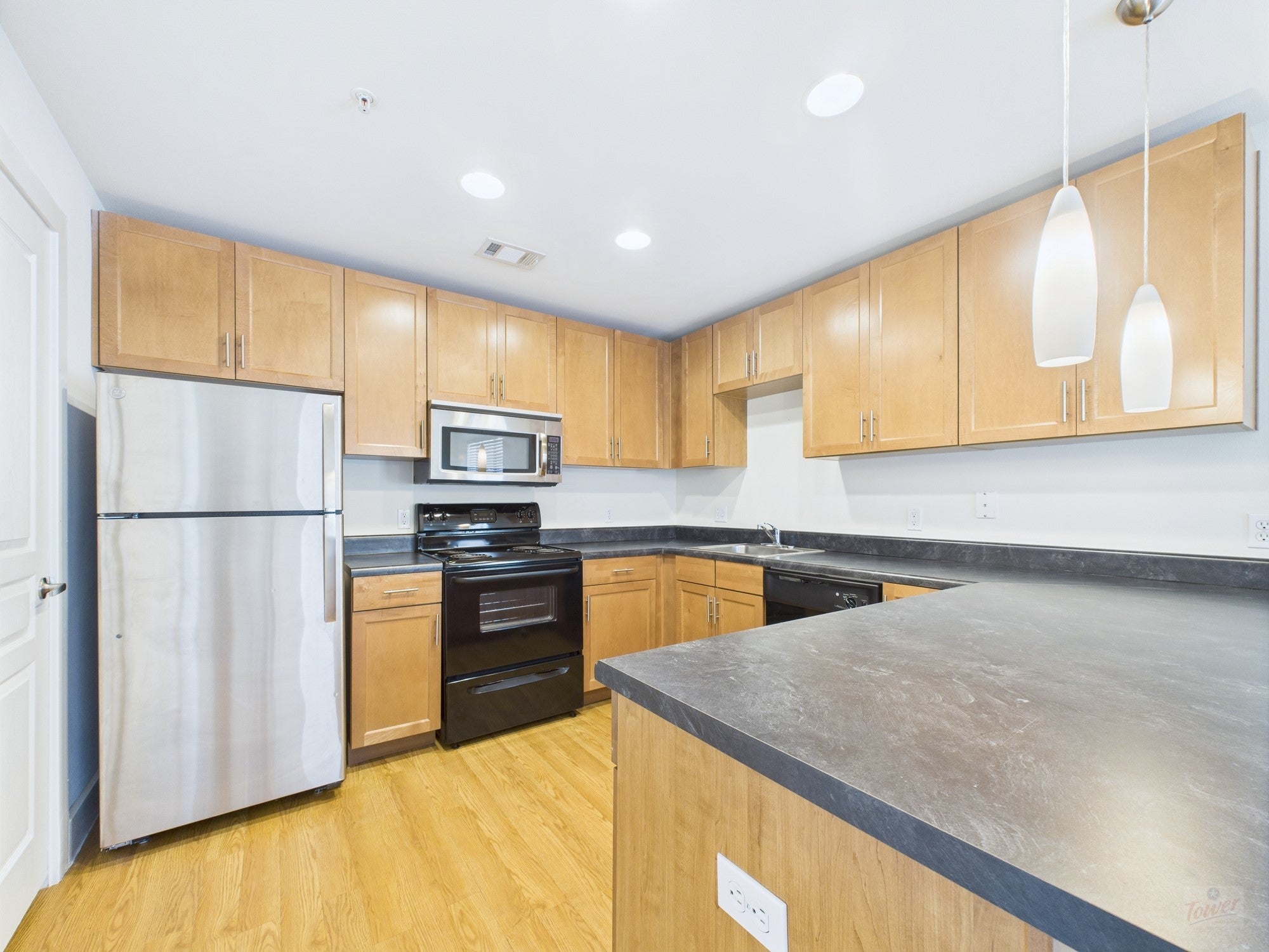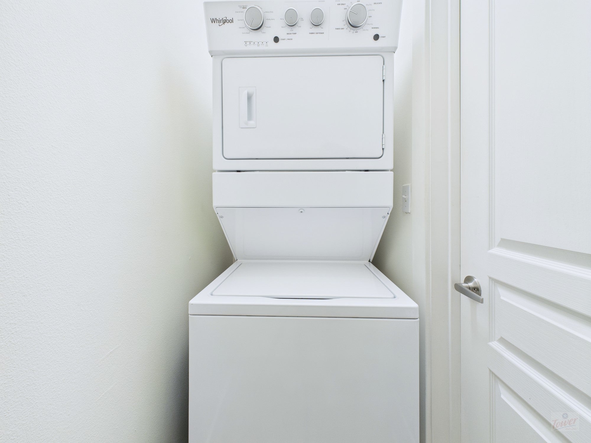 - Washer/Dryer Stacked, Dishwasher, Electric Range, Free-Standing Range, Disposal, Microwave, Refrigerator, Stainless Steel Appliance(s)