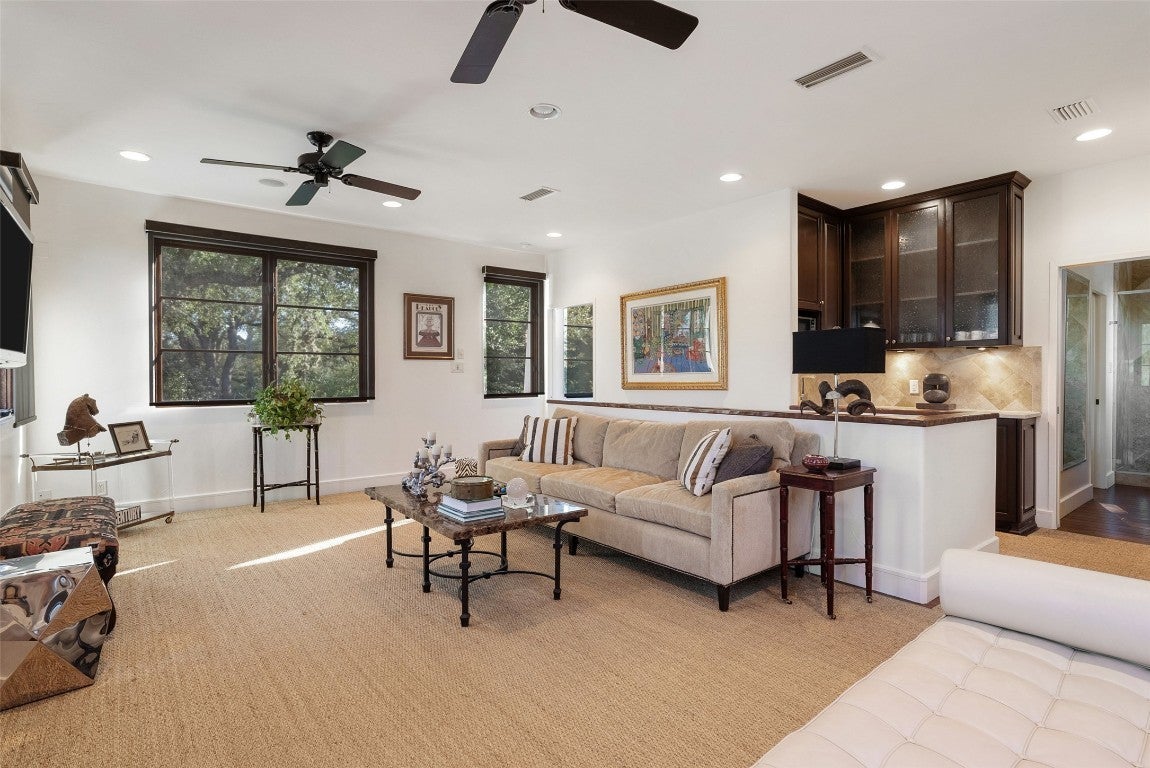 If Ralph Lauren designed a home for the Mexican Cartel in Bel Air, picked it up and set it down in Lakeway.....this is what you'd have. Spectacular, rare estate-type property in Lakeway. Set behind a gated entrance and set on the acclaimed "Jaws" hole on Lakeway's Live Oak golf course. Timeless sautillo tile floors, grand hallway/gallery entry, chef's kitchen, seculded pool and hot tub. 2 car over-sized garage. Primary suite and 2 additional bedrooms are on the main level with 2 additional bedrooms and baths upstairs. This is a very special opportunity to own something that's truly one-of-a-kind in Lakeway. Enoy living in of the highest ranked public school disctricts in the State of Texas. Enjoy quick access to golf and Lake Travis with grocery stores and shopping just minutes away. Call today to schedule an easy showing appointment.
