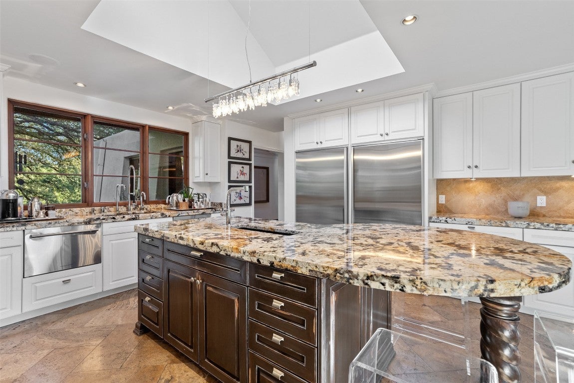 - Built-In Refrigerator, Dishwasher, Exhaust Fan, Disposal, Microwave, Stainless Steel Appliance(s), Built-In Freezer, Built-In Oven, Gas Range, Ice Maker, Wine Refrigerator