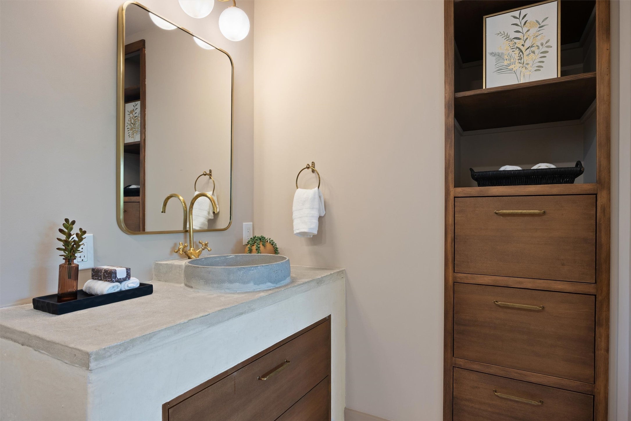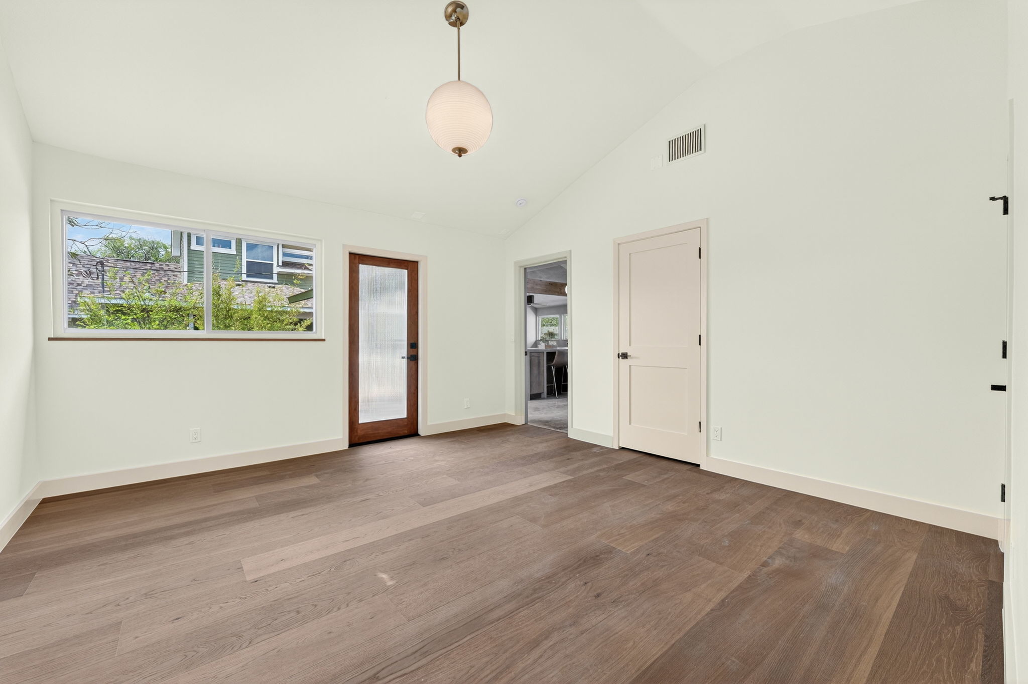 Some houses get updated. This one was transformed with obsessive craftsmanship and a quiet reverence for materials you simply don't find at this price point. Every decision was made with intention. This is what happens when a renovation is treated as an art form. Micro-cement walls with a warm, natural texture that shifts beautifully with the light. Polished concrete floors that gleam. Vaulted Douglas fir ceilings and exposed beams matched by every cabinet face—fine-grain, warm, and alive. A custom concrete island anchors a kitchen dressed in Zellige tile climbing to the ceiling. Bronze dimmable pendants casting a golden glow. Clerestory windows pulling in light without sacrificing privacy. Every wood detail—window sills, door frames, trim around the fridge—reclaimed from the house itself. Custom sycamore entry doors, an antique Art Deco vanity in a terrazzo-tiled bath that feels collected, not designed. Custom built-ins throughout. Wired for sound inside and out with vintage speakers that convey. The floor plan flows effortlessly—kitchen into dining into living—with a loft perched above it all, the perfect reading nook or meditation zone. New plumbing, electrical, and tankless water heater. Outside, a quiet inverted corner lot—practically a cul-de-sac, with only one side neighbor and a stillness that feels rare this close to everything. Next door, the storied lot where Threadgill's once stood and a young Janis Joplin first found her voice. A piece of rock and roll history, at your doorstep. The ADU has its own private entrance, full kitchen, updated bath, and an outdoor shower made for warm Texas evenings. Years of Airbnb income behind it, endless flexibility ahead—office, guest house, STR, or gym. You decide. Walkable to Brentwood Elementary, the park, and the restaurants and coffee shops along Lamar. Lamar Middle and McCallum High round out one of Austin's most beloved school trios. This is central Austin living—layered, soulful, and utterly one of a kind.