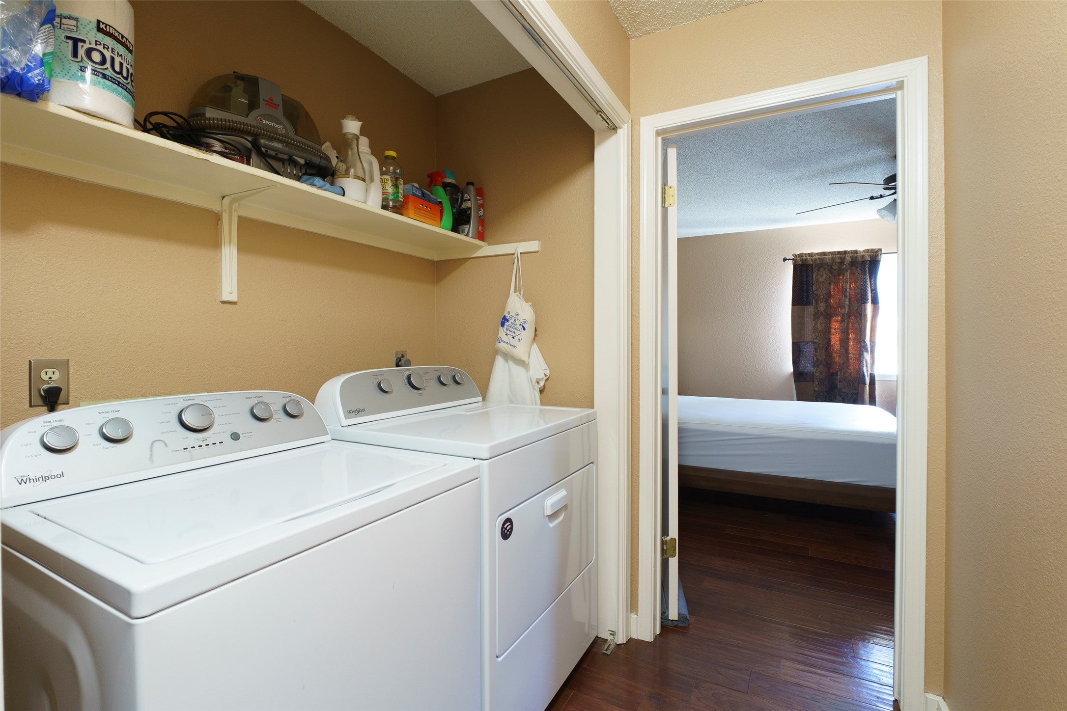 Beautifully updated home with floorplan. Big updated island kitchen, granite counters and tile backsplash. Hardwood floors throughout living spaces. Master Bath updated with granite counters, vessel sinks, tile and shower. Spacious master bedroom has 2 walk-in closets. 2nd bedroom is oversized with 2 closets. Great location in the center of Austin, close to major roads and employers.