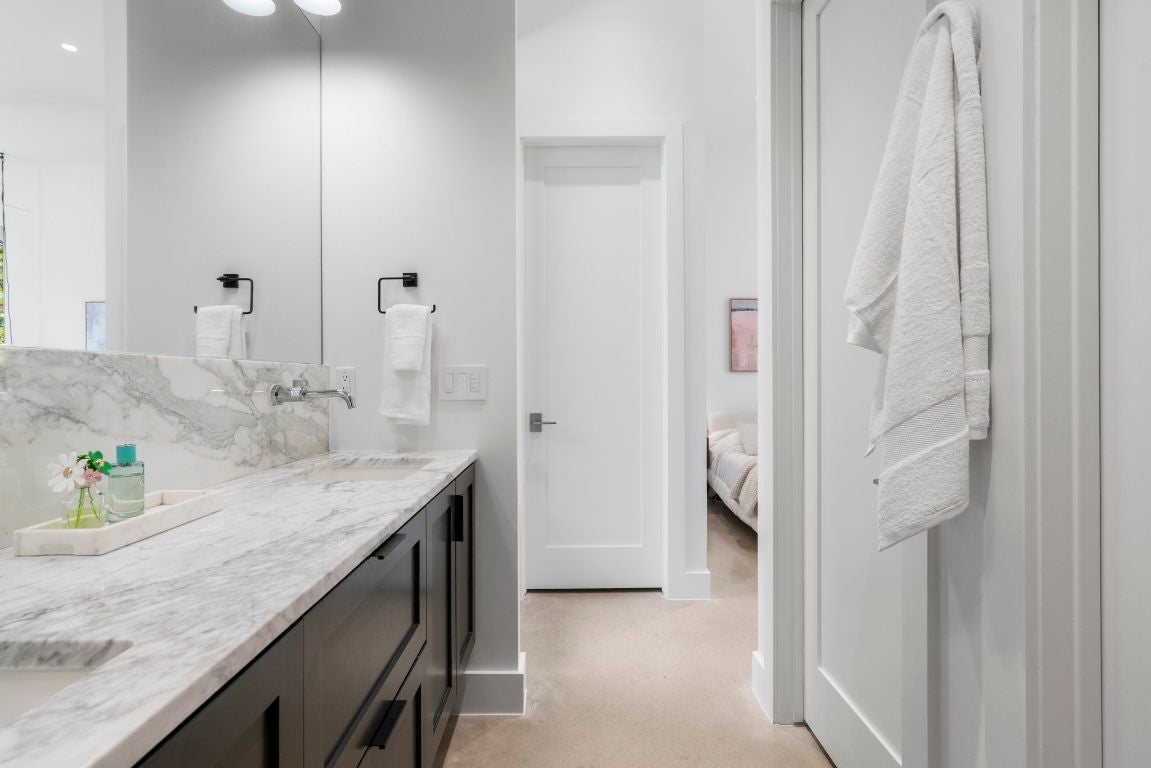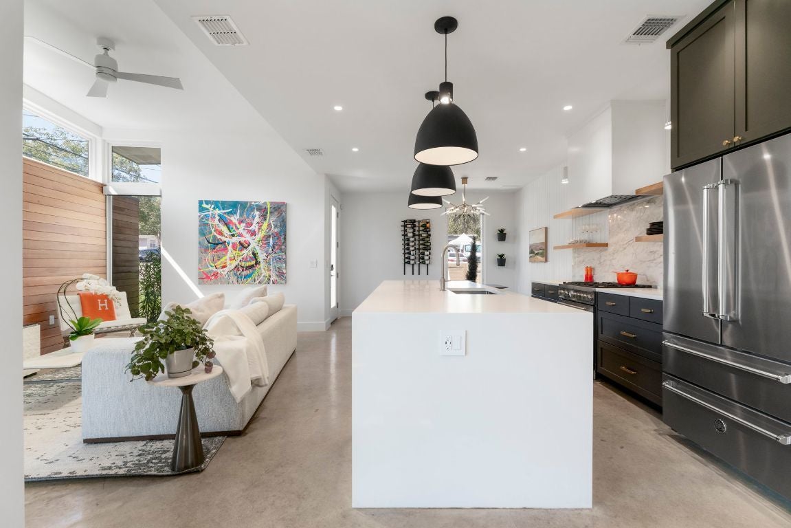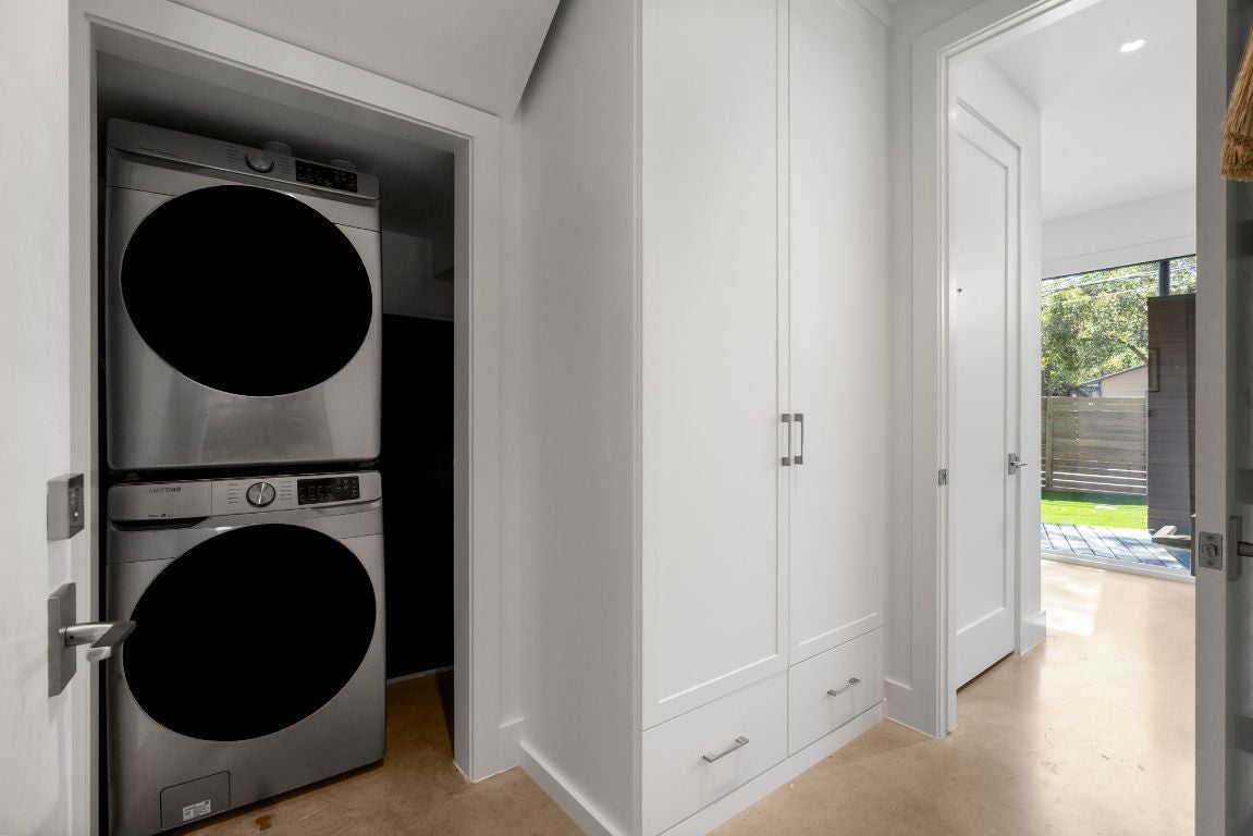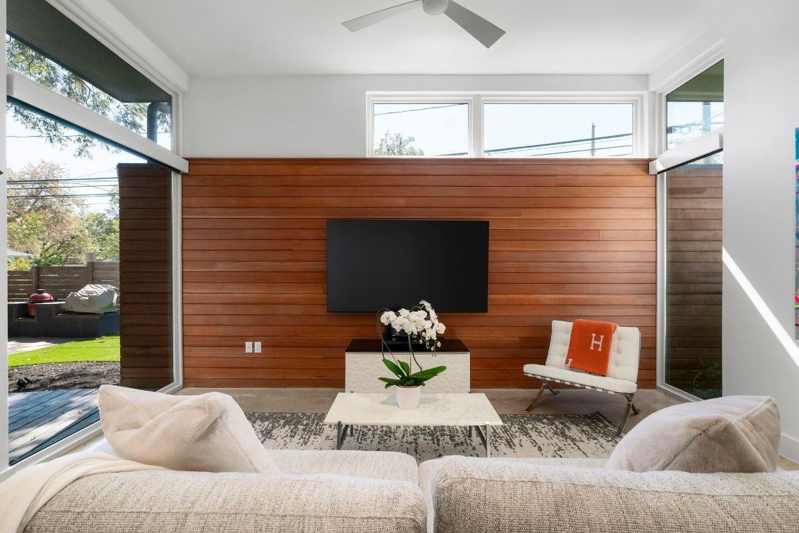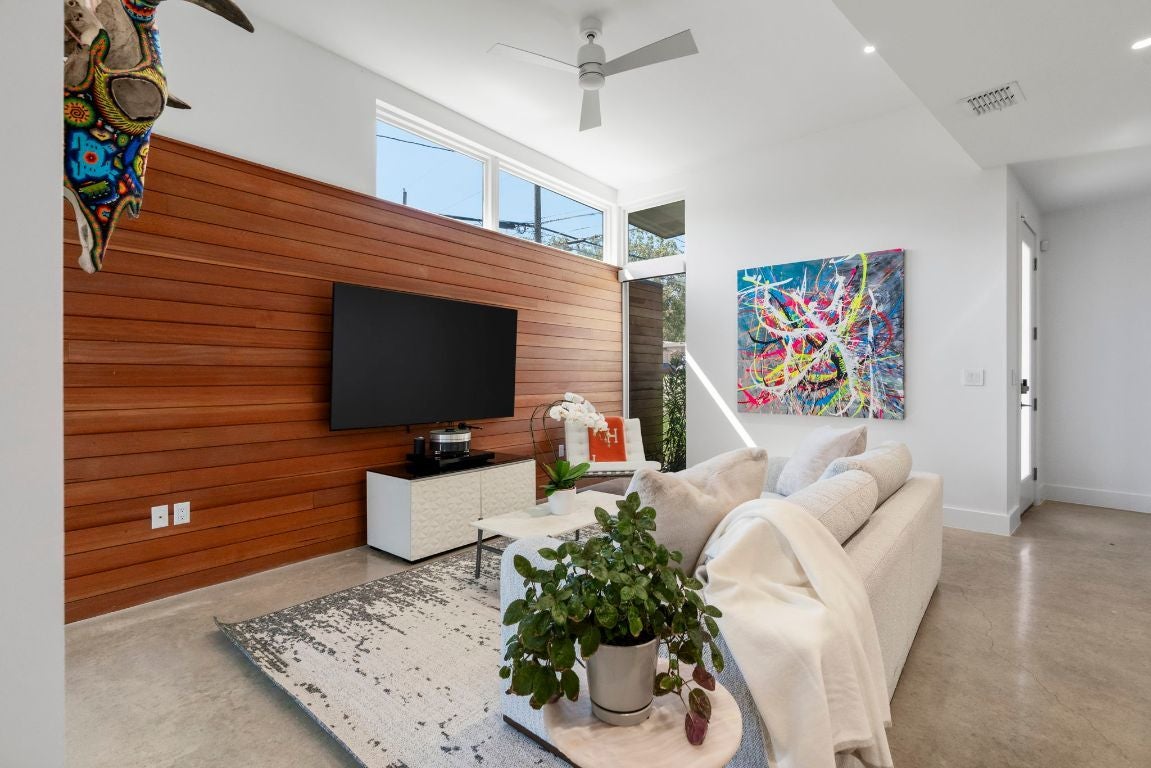 Live the 78704 lifestyle in comfort and style. Situated on a corner lot near South First Street, this modern residence blends convenient, lock-and-leave ease with thoughtful, design-forward upgrades. Tall ceilings and concrete floors ground the main level, while white oak flooring continues upstairs for a warm, cohesive look. The kitchen shines with stainless Bertazzoni appliances, a gorgeous tile backsplash, and an over-sized breakfast island. A $70K Lutron HomeWorks system with Ketra lighting and automated shades elevates every room with tailored light and effortless control. The main-level primary suite features two walk-in closets and a serene, spa-style walk-in shower, and dual raised vanities. Upstairs, a flexible second living room/den/office accompanies two additional bedrooms and a full bath, creating the ideal separation of spaces. Custom cabinetry in the mudroom and hallway keeps daily life streamlined, and the garage was enclosed to create additional protected parking with an EV charging port. Outdoors, the fenced yard is fully turfed, fully irrigated, and designed for gatherings with an extended 475 SF patio and deck beneath a leafy canopy, plus room for a pool, if desired. Recent exterior washing, retaped roof, and refreshed soffits reflect conscientious care. A side wood shed organizes garden and lawn tools. This is comfortable, convenient luxury in the heart of 78704, minutes to coffee, dining, and South Austin’s best parks and boutiques.