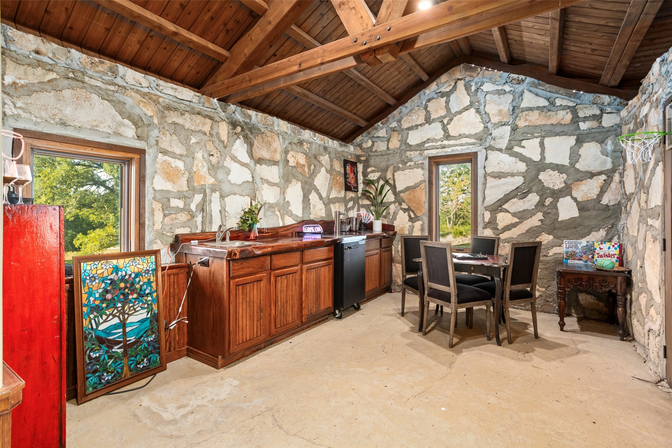KILLER Turnkey & Waterfront OPPORTUNITY PRICED TO SELLLLL!! In the Heart of Hill Country, just ~12miles to Kerrville & ~25miles Frederickburg, this beautiful Live water ranch offers the best of both worlds by providing a serene country lifestyle without sacrificing modern amenities & conveniences, where you can enjoy water activities such as swimming & kayaking, or simply unwind by the private water's edge, all while having access to high-speed internet, comfortable accommodations, and nearby shopping & dining options. This exquisite 2013 White Rock House is nestled on ~16.2 acres of lush grass, surrounded by tall oak canopies, exotic wildlife, & beautiful creek bluffs, with the added charm of being situated in a tranquil creek bend & enveloped by spring-fed Stevens Creek, supported by a concrete dam that ensures a year-round live creek & abundant wildlife. Unique feature of this home is it's indoor-outdoor firepit living-entertainment room, designed with every season in mind and set to impress. Game House: Half Bath, a living area, and an area for entertaining with a built-in kegerator, cedar bar top, and plenty of space for games no matter the age. The Game House can be used as a 2nd living quarters, a Mancave-SheShed, teens hangout, & or late-night games away from the main house. Maverick: Clubhouse, Resort Pool, Fire Pits, Green Space, Blue Hole, Sports Courts, Hiking Trails, Overlook, Ranging Exotics, On-Site Groundskeeper, High-Fenced & Gated. Participates in Dark Skies Program for the ultimate stargazing experience. 95%Furnished=Convey. Offered in other acreage options. See Agent. SEE HIGHLIGHT VIDEO: Youtube channel @NYCHOLEFUNG-IconicTexasLands
