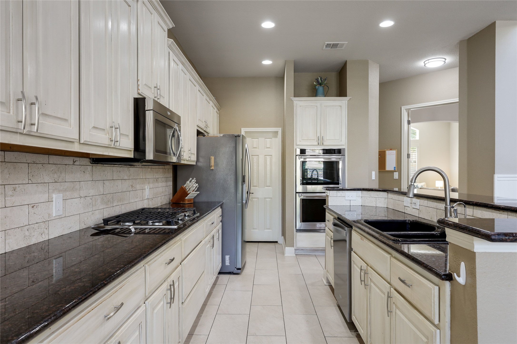 - Built-In Oven, Double Oven, Dishwasher, Exhaust Fan, Gas Cooktop, Disposal, Gas Water Heater, Microwave, Stainless Steel Appliance(s)