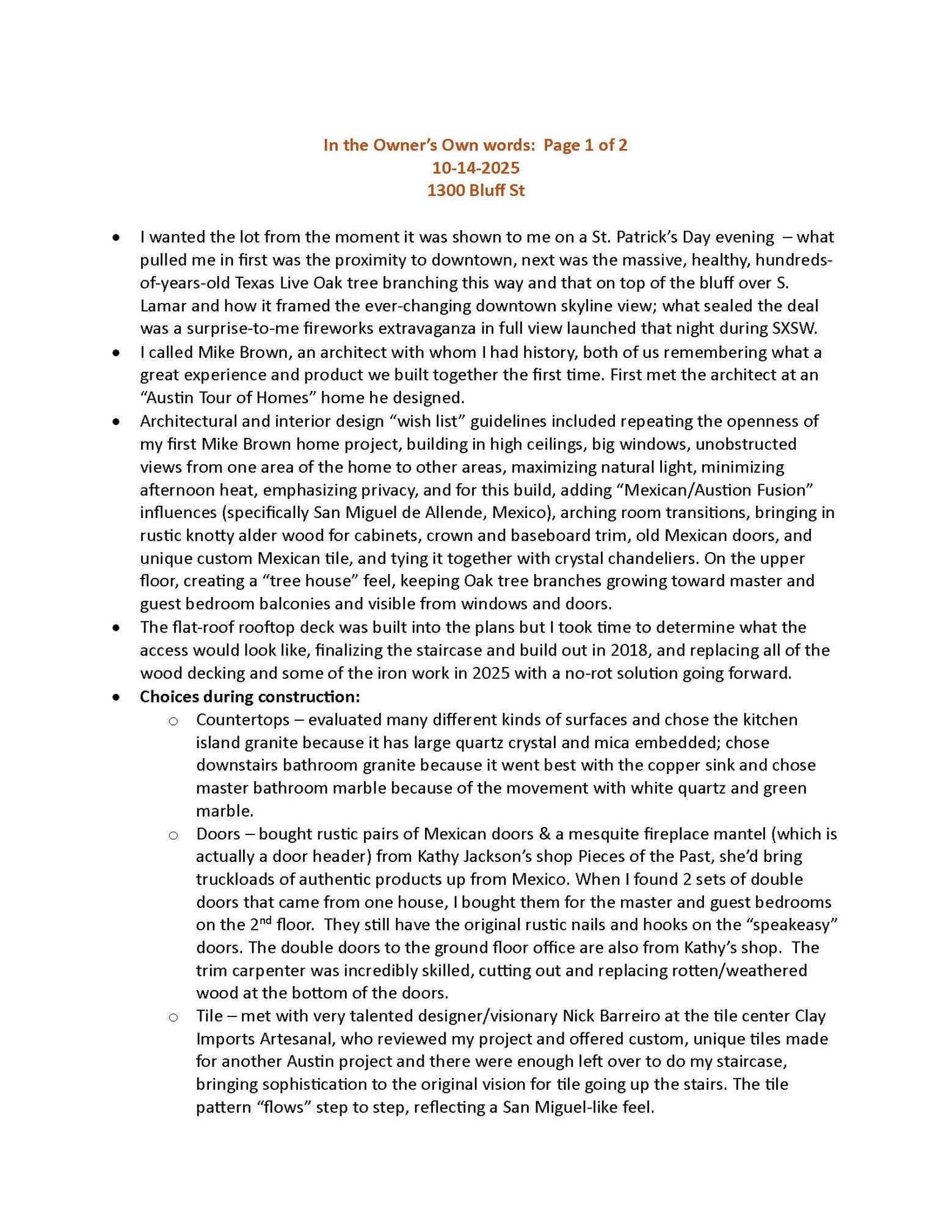 Experience the pinnacle of Downtown Austin living at a newly optimized price point. Perched above the intersection of Lamar Blvd @ Barton Springs Rd, 1300 Bluff Street sits on one of the most valuable and highly coveted residential lots in Austin. This custom-designed home blends modern luxury, Austin charm, and artistic detail to create a one-of-a-kind living experience in the heart of the city. ASK YOUR REALTOR FOR ALL THE ATTACHMENTS PROVIDING HOME DETAILS AND FLOOR PLANS. Step through the grand double entry doors and be greeted with breathtaking skyline views of downtown Austin. Designed by architect Michael Brown, the residence has been thoughtfully curated with Austin and Mexican-inspired artwork, warm finishes, and unique designer lighting that infuse the home with personality, style, and comfort. The main-level expansive deck, shaded by a majestic heritage oak, offers the perfect setting for entertaining guests, enjoying evening sunsets, or downtown fireworks. For quiet mornings, the rooftop deck provides views, cool breezes, and the ideal spot for coffee or reading. Austin Lifestyle: From 1300 Bluff St, you can walk to Zach Theatre, Long Center, Auditorium Shores, Zilker Park, Barton Springs, and dozens of top-rated restaurants, coffee shops, and entertainment venues. Enjoy the vibrant downtown Austin lifestyle without the high HOA fees of condominium living. Property Highlights: Low-maintenance xeriscape landscaping and 100% masonry exterior Spacious shaded outdoor living areas Rooftop deck with stunning views, ideal for relaxing or hosting guests Perfect vantage point for watching Austin’s fireworks and city skyline Recently updated with a new roof (2024) and fresh paint throughout Architectural plans, survey, and professional photography (with aerials) available. This residence is a rare opportunity to own a private, luxury home in the heart of central Austin. Contact our team or your REALTOR today to schedule a private tour.